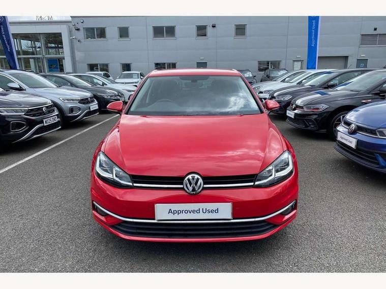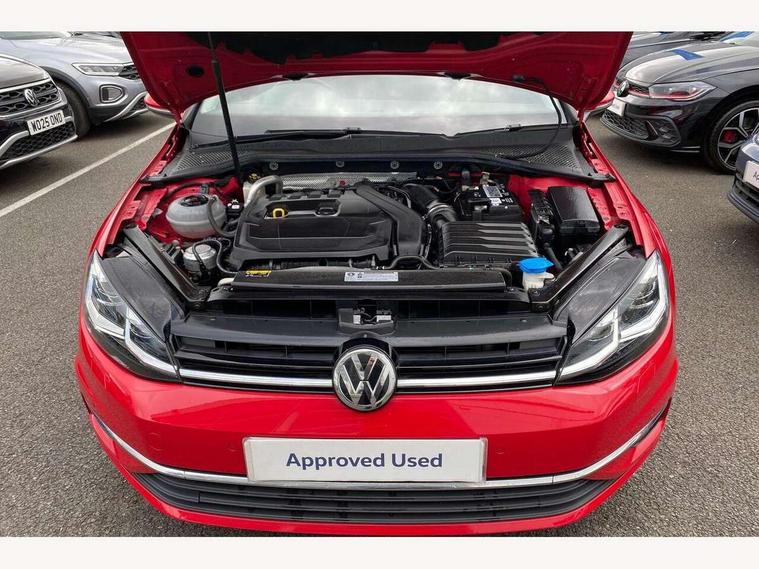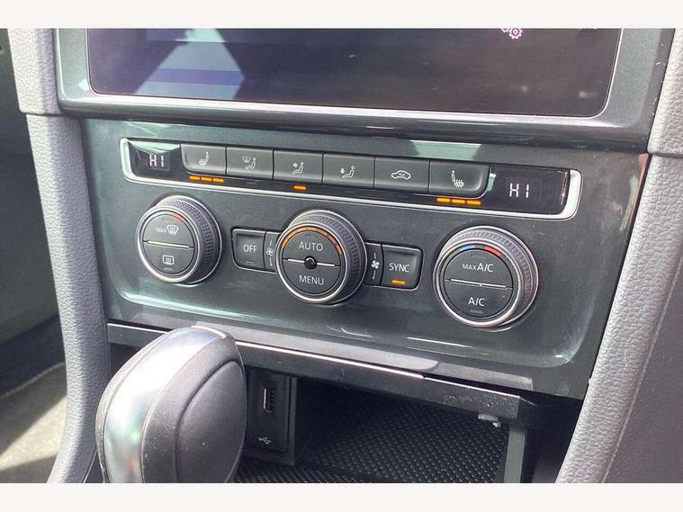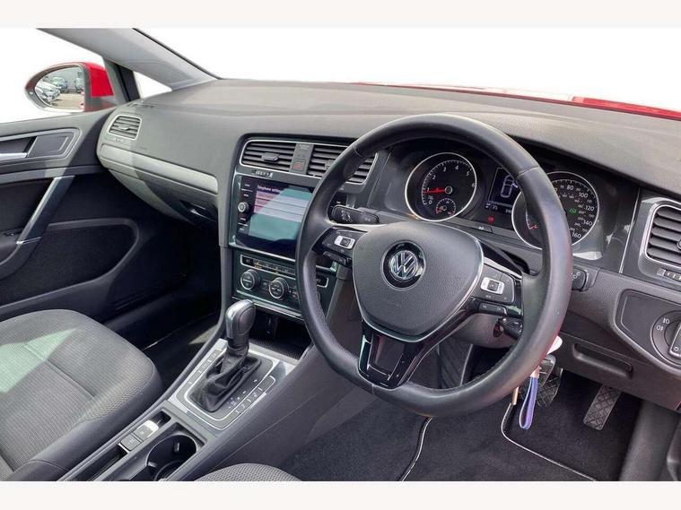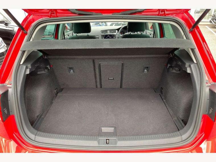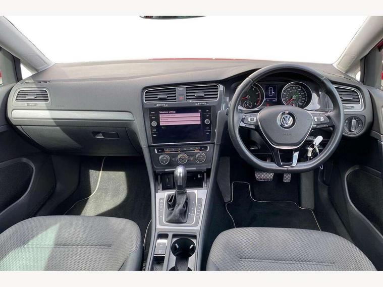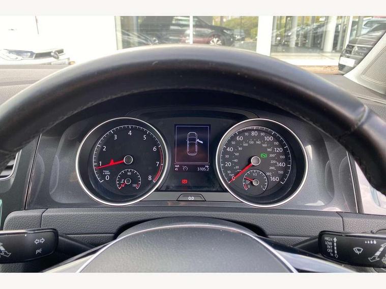 'Lights On' Reminder warning buzzer, ACC - Adaptive cruise control with front assist, forward collision warning, distance monitoring, city emergency brake and speed limiter, Bluetooth telephone and audio connection for compatible devices, Brake pad wear indicator warning light, Driver alert system, Driving Mode Selection with four preset modes - Eco, normal, sport or individual modes, Multifunction computer with visual gear change recommendation for fuel consumption, Power assisted speed sensitive electro-mechanical steering, Push tank flap, Speed limit display, Speedo, rev counter, electronic odometer, trip, service interval display, exterior temperature and fuel gauge, Stop/start system, Think blue trainer driver tips and journey analysis, Warning buzzer and light for front seatbelts unfastened, Battery regeneration during braking, XDS electronic differential lock, Composition media system, DAB Digital radio receiver, Driver Personalisation profile selection, MP3/WMA compatability, Multi device interface (MDI) via USB connection, Premium USB cable in choice of either Apple or Android smartphone compatibility, SMS Functionality, Title and cover art display, USB and SD card connectivity, Volkswagen media control, Black front air intake and radiator grille with chrome insert, Black rear diffuser, Body colour bumpers, Body colour door handles, Body colour door mirrors with integrated indicators, Dusk sensor + automatic driving lights, Electric front windows, Electric rear windows, Electrically adjustable and heated door mirrors, Fully galvanised body, Heated rear windscreen, High level 3rd brake light incorporating LED Technology, LED front fog lights with static cornering light function, Range adjustable headlights via infotainment system with LED daytime running lights, Rear fog lamp, Rear number plate lights incorporating LED technology, Rear tinted glass 65% light absorbing from B pillar backwards, Rear window aerial, Rear window wash/wipe with intermittent wipe, Reflectors in all doors, Tailgate with integrated rear roof spoiler, Windscreen wipers/ intermittent wipe + 4 position delay, 12V socket in luggage compartment, 3 rear headrests, 4 load lashing points in luggage compartment, 60/40 split folding rear seat backrest, Bag hook in luggage compartment x 2, Climate control - 2 zone electronic air conditioning with automatic air recirculation and allergy filter, Cooled glovebox, Cover for storage compartment in centre, Dust/pollen filter, Front and rear reading lights X 2, Front centre armrest with storage compartment and two rear air vents, Front seat back storage pockets, Grab handles front x 2, rear x 2 with integrated coat hooks, Height and reach adjustable steering wheel, Illuminated vanity mirrors, Instrument lighting white adjustable panel illumination, Interior light delay, Isofix preparation for 2 rear child seats, Load through provision with rear centre armrest and cupholders x2, Luggage compartment lighting, Overhead storage box, Pearl grey headlining, Storage box in luggage compartment, Storage compartment in roof console with cover, Storage compartments in centre console, Storage compartments in front doors, Storage compartments in rear doors, Stowable luggage compartment cover, Sun visors, Variable boot floor, height adjustable and removable, Convenience Pack - Golf, Mirror pack - Golf, Winter pack - Golf, 3 rear three point seatbelts, Airbags - Driver's and front passenger's, curtain airbag, Driver's knee, front side impact and passenger's airbag deactivation switch, Anti-lock Braking System (ABS) with Hydraulic Brake Assist (HBA), Automatic post collision braking system, Child locks on rear doors, Driver/Passenger optimised head restraints, Electronic parking brake with auto hold, Electronic stability control (ESC) including Electronic differential lock (EDL) and ASR (Traction control) with deactivation via infotainment system, Front ventilated disc brakes and rear disc brakes, Pre crash preventive occupant protection, Three point height adjustable front seatbelts with tensioners, Tyre pressure loss indicator, Alarm with interior protection and deactivation via infotainment system, Electronic engine immobiliser, Brushed dark silver decorative inserts in dash and door panels, Chrome plated air vent surround, Chrome-plated light switch surround, Polar night black decorative inserts in centre console, Steel space saver spare wheel,