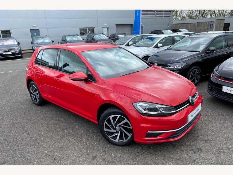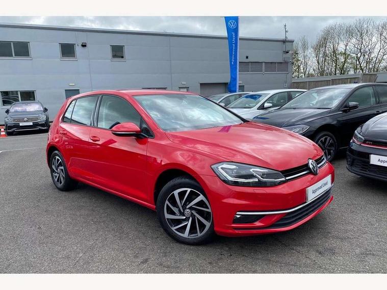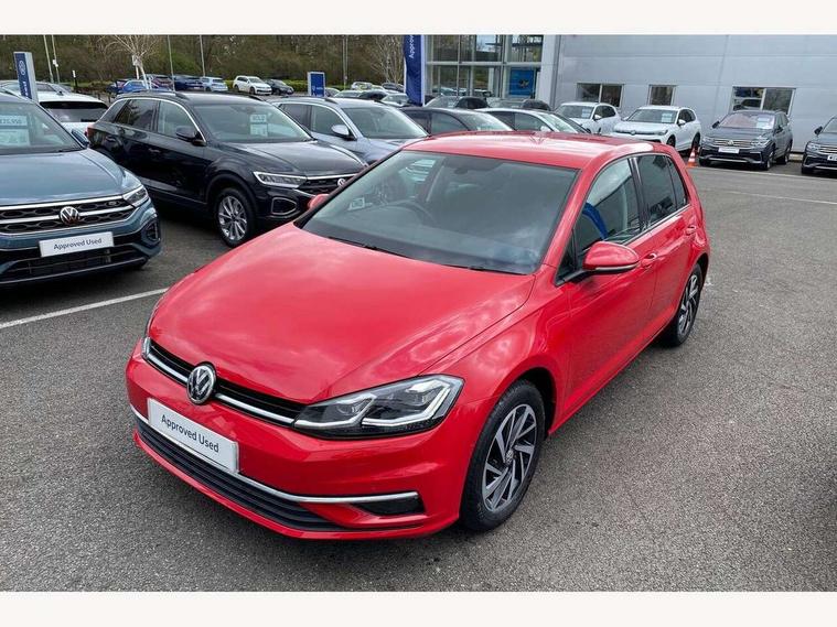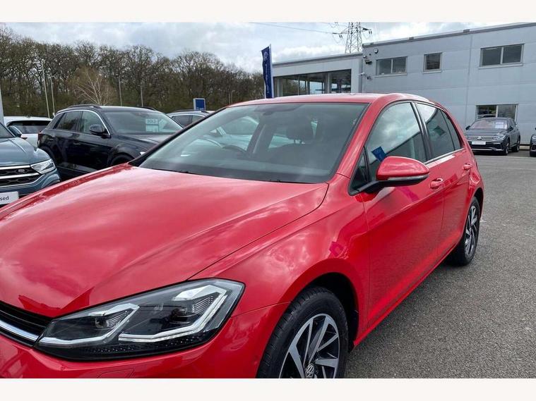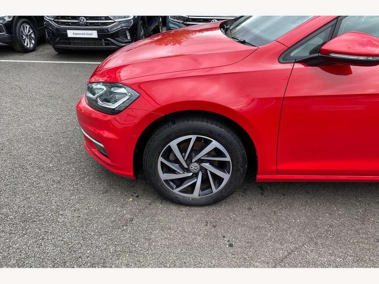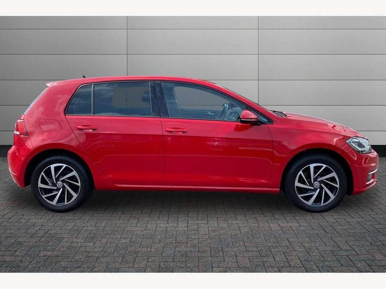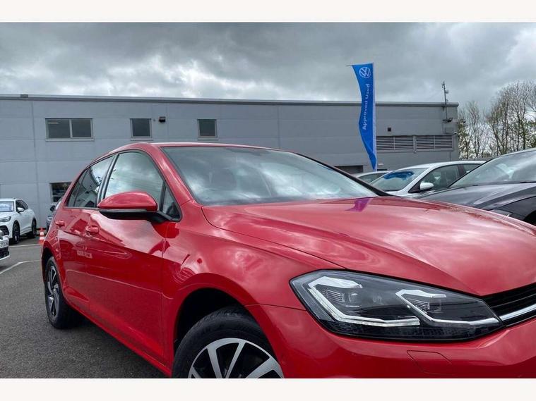 'Lights On' Reminder warning buzzer, ACC - Adaptive cruise control with front assist, forward collision warning, distance monitoring, city emergency brake and speed limiter, Bluetooth telephone and audio connection for compatible devices, Brake pad wear indicator warning light, Driver alert system, Driving Mode Selection with four preset modes - Eco, normal, sport or individual modes, Multifunction computer with visual gear change recommendation for fuel consumption, Power assisted speed sensitive electro-mechanical steering, Push tank flap, Speed limit display, Speedo, rev counter, electronic odometer, trip, service interval display, exterior temperature and fuel gauge, Stop/start system, Think blue trainer driver tips and journey analysis, Warning buzzer and light for front seatbelts unfastened, Battery regeneration during braking, XDS electronic differential lock, Composition media system, DAB Digital radio receiver, Driver Personalisation profile selection, MP3/WMA compatability, Multi device interface (MDI) via USB connection, Premium USB cable in choice of either Apple or Android smartphone compatibility, SMS Functionality, Title and cover art display, USB and SD card connectivity, Volkswagen media control, Black front air intake and radiator grille with chrome insert, Black rear diffuser, Body colour bumpers, Body colour door handles, Body colour door mirrors with integrated indicators, Dusk sensor + automatic driving lights, Electric front windows, Electric rear windows, Electrically adjustable and heated door mirrors, Fully galvanised body, Heated rear windscreen, High level 3rd brake light incorporating LED Technology, LED front fog lights with static cornering light function, Range adjustable headlights via infotainment system with LED daytime running lights, Rear fog lamp, Rear number plate lights incorporating LED technology, Rear tinted glass 65% light absorbing from B pillar backwards, Rear window aerial, Rear window wash/wipe with intermittent wipe, Reflectors in all doors, Tailgate with integrated rear roof spoiler, Windscreen wipers/ intermittent wipe + 4 position delay, 12V socket in luggage compartment, 3 rear headrests, 4 load lashing points in luggage compartment, 60/40 split folding rear seat backrest, Bag hook in luggage compartment x 2, Climate control - 2 zone electronic air conditioning with automatic air recirculation and allergy filter, Cooled glovebox, Cover for storage compartment in centre, Dust/pollen filter, Front and rear reading lights X 2, Front centre armrest with storage compartment and two rear air vents, Front seat back storage pockets, Grab handles front x 2, rear x 2 with integrated coat hooks, Height and reach adjustable steering wheel, Illuminated vanity mirrors, Instrument lighting white adjustable panel illumination, Interior light delay, Isofix preparation for 2 rear child seats, Load through provision with rear centre armrest and cupholders x2, Luggage compartment lighting, Overhead storage box, Pearl grey headlining, Storage box in luggage compartment, Storage compartment in roof console with cover, Storage compartments in centre console, Storage compartments in front doors, Storage compartments in rear doors, Stowable luggage compartment cover, Sun visors, Variable boot floor, height adjustable and removable, Convenience Pack - Golf, Mirror pack - Golf, Winter pack - Golf, 3 rear three point seatbelts, Airbags - Driver's and front passenger's, curtain airbag, Driver's knee, front side impact and passenger's airbag deactivation switch, Anti-lock Braking System (ABS) with Hydraulic Brake Assist (HBA), Automatic post collision braking system, Child locks on rear doors, Driver/Passenger optimised head restraints, Electronic parking brake with auto hold, Electronic stability control (ESC) including Electronic differential lock (EDL) and ASR (Traction control) with deactivation via infotainment system, Front ventilated disc brakes and rear disc brakes, Pre crash preventive occupant protection, Three point height adjustable front seatbelts with tensioners, Tyre pressure loss indicator, Alarm with interior protection and deactivation via infotainment system, Electronic engine immobiliser, Brushed dark silver decorative inserts in dash and door panels, Chrome plated air vent surround, Chrome-plated light switch surround, Polar night black decorative inserts in centre console, Steel space saver spare wheel,
