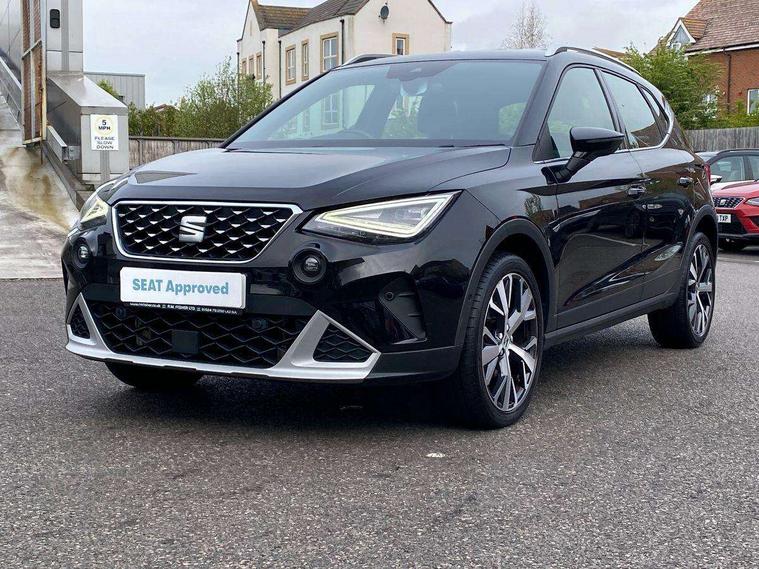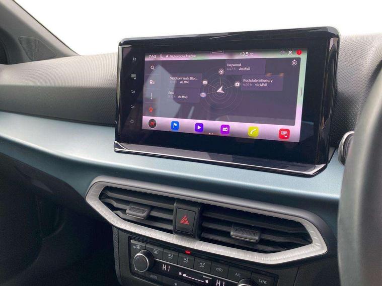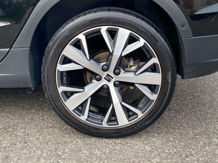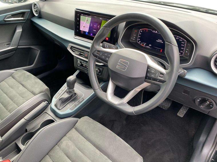 'Lights On' Reminder warning buzzer, 10" Digital cockpit, Digital clock, E-call, Electric speed sensitive power steering, Front parking sensor, Full Link Smartphone Integration with Mirror Link, Apple Car Play, Google Android Auto with USB Type C cable for Apple and Android compatibility, Low fuel warning light, Outside temperature display, Park assist system, Rear parking sensor, Rear view camera, RPM counter, Seat connect with safety, service, remote and online, Trip computer, Wireless phone charger, 9.2" colour touchscreen with navigation system, voice control and USB port (type c), Bluetooth interface for hands free and audio streaming, DAB digital radio and AM/FM radio, Steering wheel mounted audio controls, Anti theft roof antenna, Auto dimming interior rear view mirror, Automatic activation of hazard warning lights, Body coloured bumpers, Body coloured door handle inserts, Chrome roof rails and window surrounds, Electric front/rear windows, Electrically adjustable, heated and folding door mirrors, Front fog lights with cornering function and rear fog light, FULL LED automatic headlights with dynamic headlight range control, coming and leaving home, LED daytime running lights, Hidden exhaust pipe, LED rear tail lights and licence plate lights, Protective side mouldings, Rain sensing wipers, Rear side wing doors, Rear spoiler, Rear window wash/wipe, Roof colour door mirrors, Third brake light, Visible VIN plate, Windshield wiper with intermittent control and potentiometer, 2 cupholders, 3 seat bench in 2nd row, 60/40 split folding rear seat, Aircare filter, Black interior roof, Double boot floor, Driver sunvisor with covered mirror + card holder, Dual zone climate control, Flat bottomed leather steering wheel/gear knob/handbrake, Front comfort seats, Front courtesy light with front reading lights, Front seat back storage pockets, Gear shift indicator, Heated front seats, Height adjustable front seats, Height/reach adjustable steering column, Illuminated boot, Instrument lighting with brightness control, Interior ambient lighting, Interior light in footwell, central console and door panel, ISOFIX points in outer rear seats with top tether anchorage points, Leather steering wheel/gear knob/handbrake, Microsuede cloth upholstery, Passenger sunvisor with vanity mirror, Single front passenger seat, Storage net on centre console, Two front and three rear height adjustable headrests, Interior chrome pack - Arona, Storage pack - Arona, 3 point seatbelts on all rear seats, ABS, Active front headrests, Child locks on rear doors, Driver and front passenger airbags with front passenger airbag de activation, front side and curtain airbags, Electronic stability control, Emergency Brake Assist (EBA) and front assist, Front and rear seatbelt reminder, Hill hold control, Multi-Collision braking, Tiredness recognition system, Traction control, Tyre pressure monitoring system, Alarm with back-up horn, Electronic engine immobiliser, KESSY Keyless entry and go, Locking wheel bolts, Remote central locking + deadlocks, Tow away protection, Titan black dashboard, 18" Performance Nuclear grey alloy wheels,
