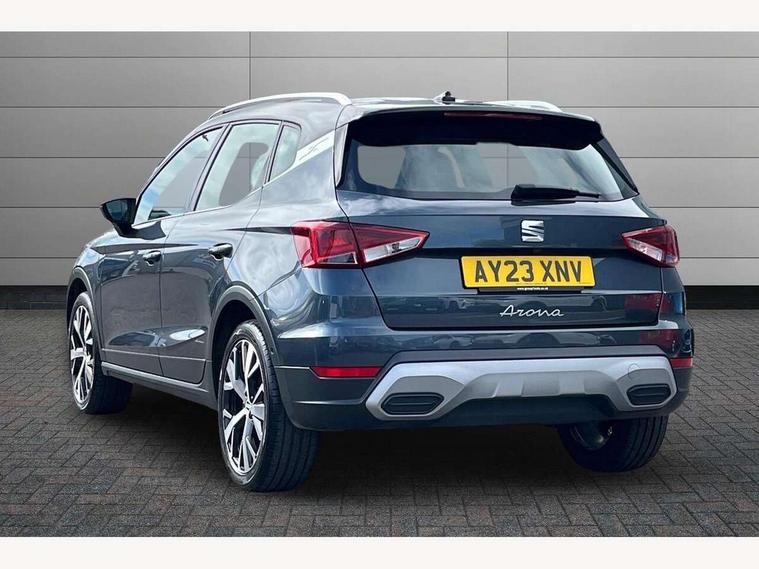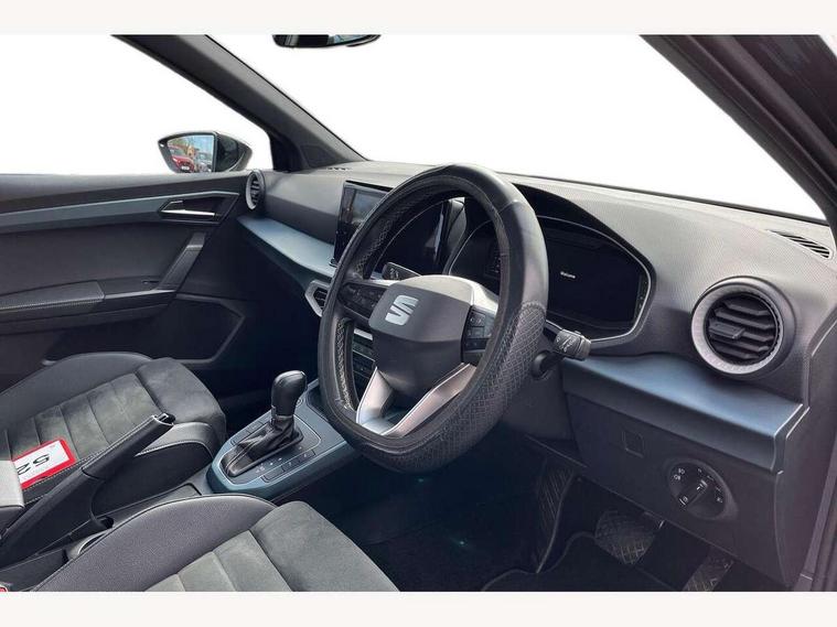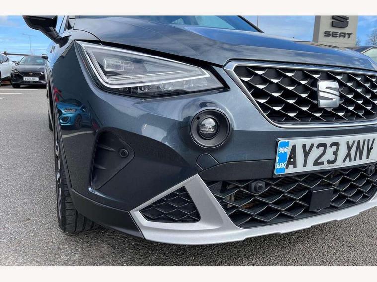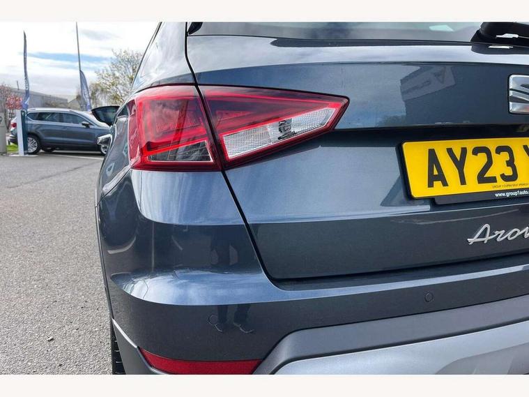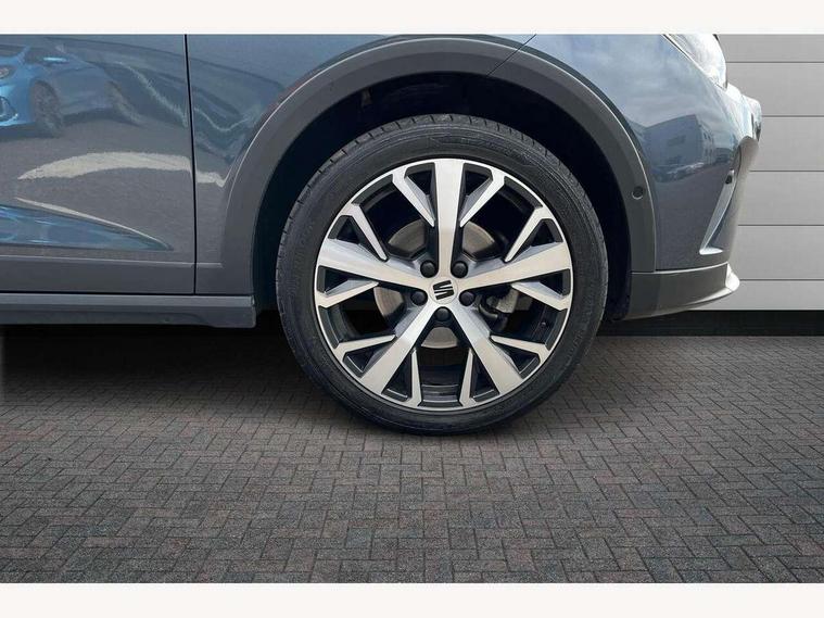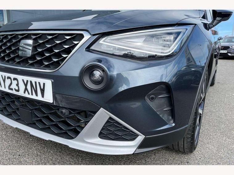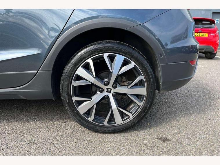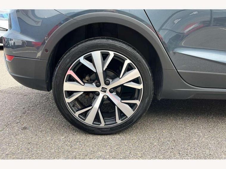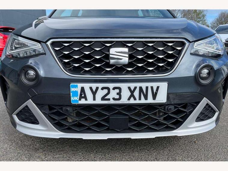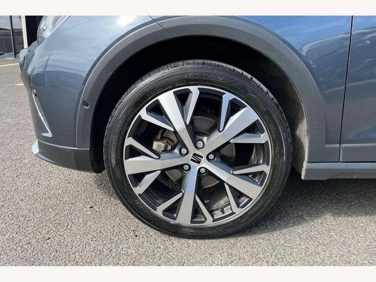 'Lights On' Reminder warning buzzer, 10" Digital cockpit, Digital clock, E-call, Electric speed sensitive power steering, Front parking sensor, Full Link Smartphone Integration with Mirror Link, Apple Car Play, Google Android Auto with USB Type C cable for Apple and Android compatibility, Low fuel warning light, Outside temperature display, Park assist system, Rear parking sensor, Rear view camera, RPM counter, Seat connect with safety, service, remote and online, Trip computer, Wireless phone charger, 9.2" colour touchscreen with navigation system, voice control and USB port (type c), Bluetooth interface for hands free and audio streaming, DAB digital radio and AM/FM radio, Steering wheel mounted audio controls, Anti theft roof antenna, Auto dimming interior rear view mirror, Automatic activation of hazard warning lights, Body coloured bumpers, Body coloured door handle inserts, Chrome roof rails and window surrounds, Electric front/rear windows, Electrically adjustable, heated and folding door mirrors, Front fog lights with cornering function and rear fog light, FULL LED automatic headlights with dynamic headlight range control, coming and leaving home, LED daytime running lights, Hidden exhaust pipe, LED rear tail lights and licence plate lights, Protective side mouldings, Rain sensing wipers, Rear side wing doors, Rear spoiler, Rear window wash/wipe, Roof colour door mirrors, Third brake light, Visible VIN plate, Windshield wiper with intermittent control and potentiometer, 2 cupholders, 3 seat bench in 2nd row, 60/40 split folding rear seat, Aircare filter, Black interior roof, Double boot floor, Driver sunvisor with covered mirror + card holder, Dual zone climate control, Flat bottomed leather steering wheel/gear knob/handbrake, Front comfort seats, Front courtesy light with front reading lights, Front seat back storage pockets, Gear shift indicator, Heated front seats, Height adjustable front seats, Height/reach adjustable steering column, Illuminated boot, Instrument lighting with brightness control, Interior ambient lighting, Interior light in footwell, central console and door panel, ISOFIX points in outer rear seats with top tether anchorage points, Leather steering wheel/gear knob/handbrake, Microsuede cloth upholstery, Passenger sunvisor with vanity mirror, Single front passenger seat, Storage net on centre console, Two front and three rear height adjustable headrests, Interior chrome pack - Arona, Storage pack - Arona, 3 point seatbelts on all rear seats, ABS, Active front headrests, Child locks on rear doors, Driver and front passenger airbags with front passenger airbag de activation, front side and curtain airbags, Electronic stability control, Emergency Brake Assist (EBA) and front assist, Front and rear seatbelt reminder, Hill hold control, Multi-Collision braking, Tiredness recognition system, Traction control, Tyre pressure monitoring system, Alarm with back-up horn, Electronic engine immobiliser, KESSY Keyless entry and go, Locking wheel bolts, Remote central locking + deadlocks, Tow away protection, Titan black dashboard, 18" Performance Nuclear grey alloy wheels,