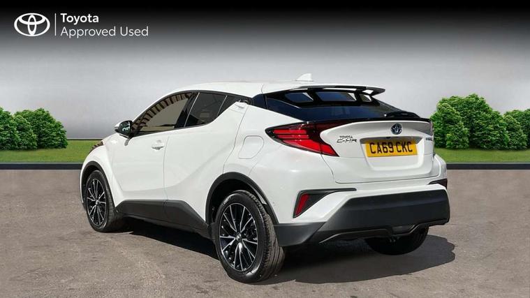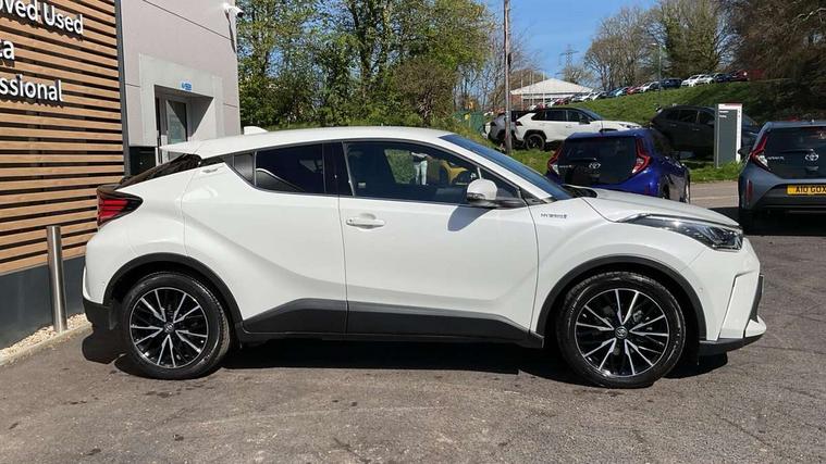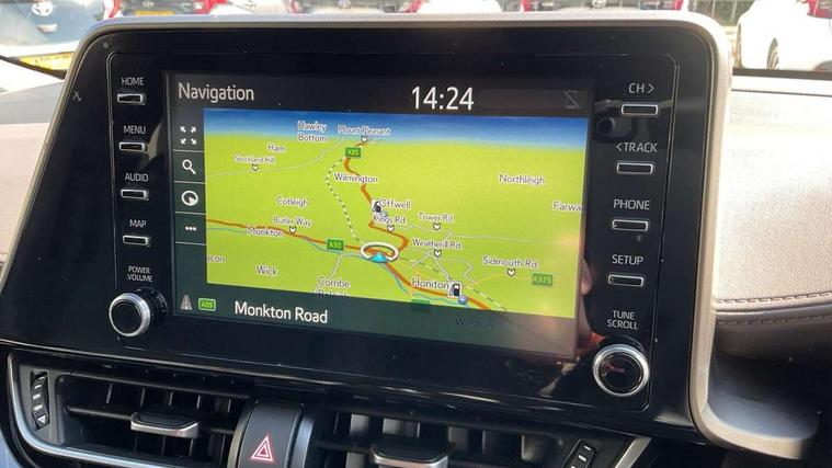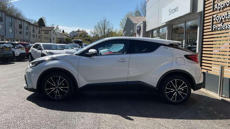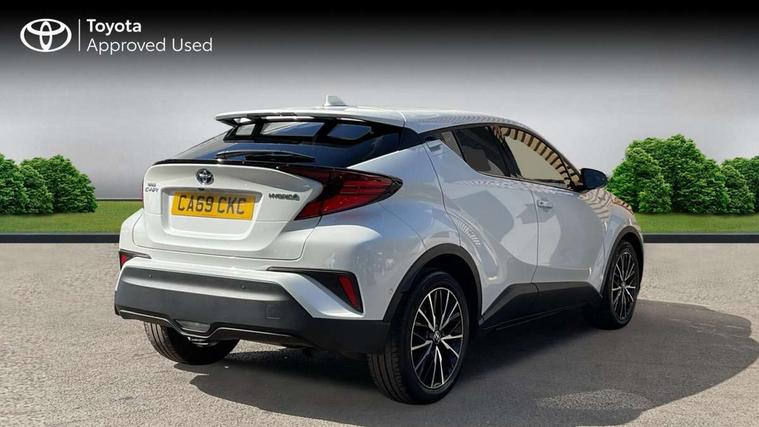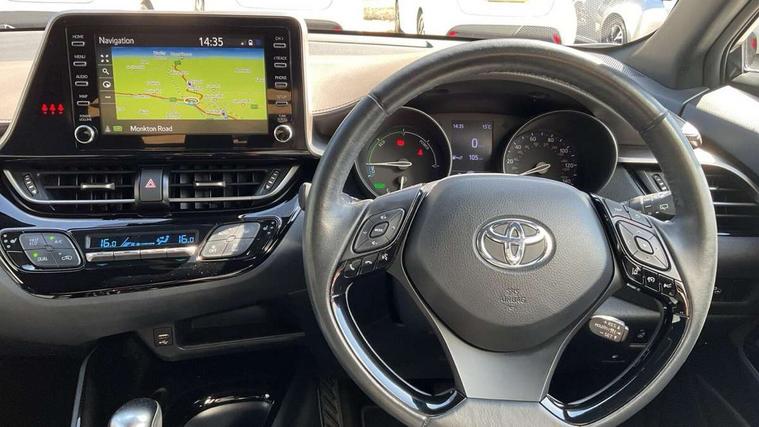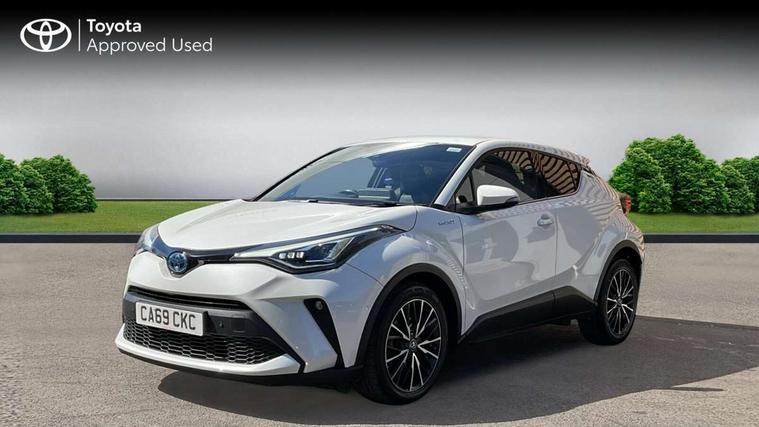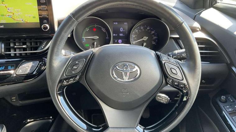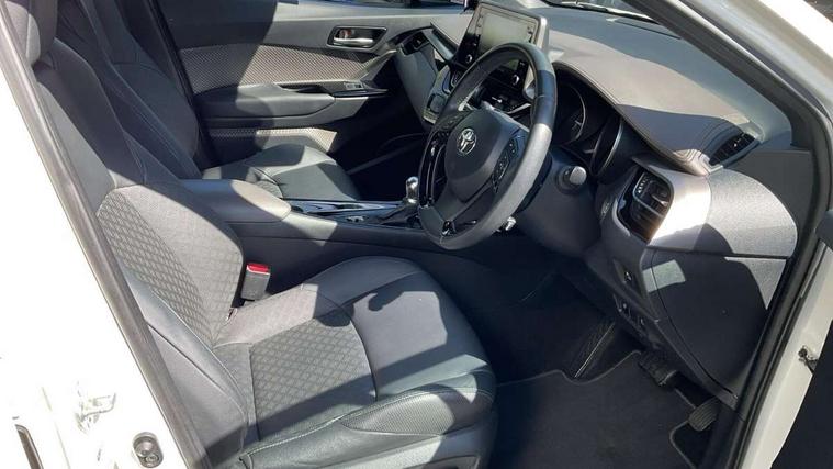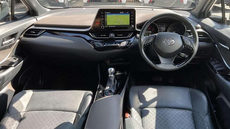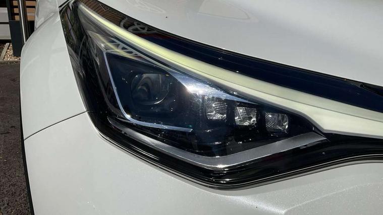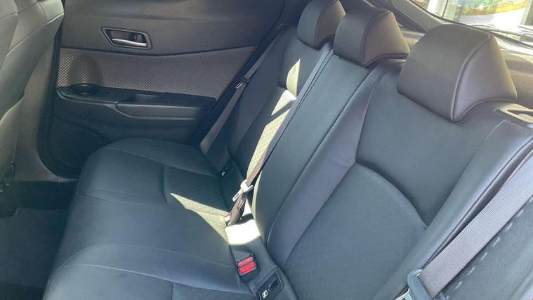 4.2" coloured TFT screen for multi-information display, Adaptive cruise control, Bluetooth connectivity, Electric power steering, Hybrid system indicator, Lane departure alert with steering control, Remote boot door release in cabin, Remote boot door release in key, Reversing camera, Road sign assist - RSA, Simple Intelligent parking assist, Touch 2 Go navigation system, Trip computer, Voice recognition, Vehicle Stability Control (VSC), 6 speakers, Aux connectors + 12V front outlet, DAB Radio (Digital Audio Broadcasting), Toyota touch 2 multimedia system with 8" display, USB connector integrated with radio and CD player, Wi-fi connectivity, Adaptive front light system, Adaptive LED Headlights, Anti-jam protection on power windows, Auto high beam, Auto up and down function on all power windows, Automatic headlight levelling, Automatic headlights, Automatic headlights cut-off, Automatic wipers with heated folding mirrors, Black and body coloured rear bumper, Black front bumper, Black upper front grille, Body colour door handles, Body colour door mirrors, Boot door release with push button, Electric heated door mirrors, Follow me home headlights, Front and rear power windows, Front spoiler, Honeycomb lower front grille, LED daytime running lights, LED fog lights, LED front light guide, LED High mounted stop light, LED rear brake lights, LED rear combination lights, Noise reduction layer on front windows and windscreen, Power adjustable door mirrors, Privacy glass, Rear spoiler, Rear tailgate, Rear window defogger, Rear window wiper, Shark fin antenna, UV-filter on driver and passenger windows, UV-filter on rear windows, 12v power outlet - front, 3 rear headrests, 3 spoke leather steering wheel, 60/40 split folding rear seat, Adjustable rear headrests, Adjustable speed limiter switch on steering wheel, Assist grips front and centre pillar, Audio and telephone switches on steering wheel, Black front door assist grips, Blue ambient lighting on front cup holders, Blue ambient lighting on front doors, Boot light, Chrome interior door handles, Driver and front passenger personal light, Driver and front passenger Whiplash Injury Lessening seats, Driver and passenger seatback pockets, Dual zone automatic air conditioning, Floor mats, Front cupholders, Front head restraints, Front sports seats, Glovebox with internal light, Hard tonneau cover, Heated driver and front passenger seats, Heated steering wheel, Hooks for luggage holding net, Humidifying Nanoe air purifier, Illuminated entry system, Isofix attachments on outer rear seats, Leather gearshift, Light on driver sun visor, Light on passenger sun visor, Manual telescopic steering wheel, Manual tilt steering wheel, Manually height adjustable front passenger seat, Manually reclining front passenger seat, Manually sliding front passenger seat, Microphone on front personal light, Mirror on driver sun visor, Mirror on passenger sun visor, Multimedia switches on steering wheel, Pollen filter, Power adjustable lumbar support on driver seat, Power height adjustable driver seat, Power reclining driver seat, Power sliding driver seat, Power tilting cushion on driver seat, Shopping bag hooks, Slow opening on lower glovebox, Voice recognition switch on steering wheel, Leather pack - C-HR, Parking sensor pack - C-HR, Tech pack - C-HR, 16 Disk front wheel brake, 3x3 point rear seatbelts, ABS+EBD+Brake assist, Electronic parking brake, ESP + traction control, Front and rear seatbelt reminder, Front passenger airbag on/off switch, Hill start assist control (HAC), Pre collision system with pedestrian detection, Pre-tensioners and force limiters, Rear door child safety locks, SRS Airbags - Driver + Front passenger, front side, front and rear curtain and driver's knee airbags, Toyota safety sense, Tyre pressure monitoring system, Glass-breaking alarm sensors, Immobiliser, Intrusion alarm, Intrusion sensor, Motion sensor alarm, Power door locks, Power passenger window lock, Remote central locking, Remote door lock, Black lower dashboard, Black lower driver dashboard, Dark brown upper dashboard, Piano black console, Silver deco line on upper dashboard, Tyre repair kit,