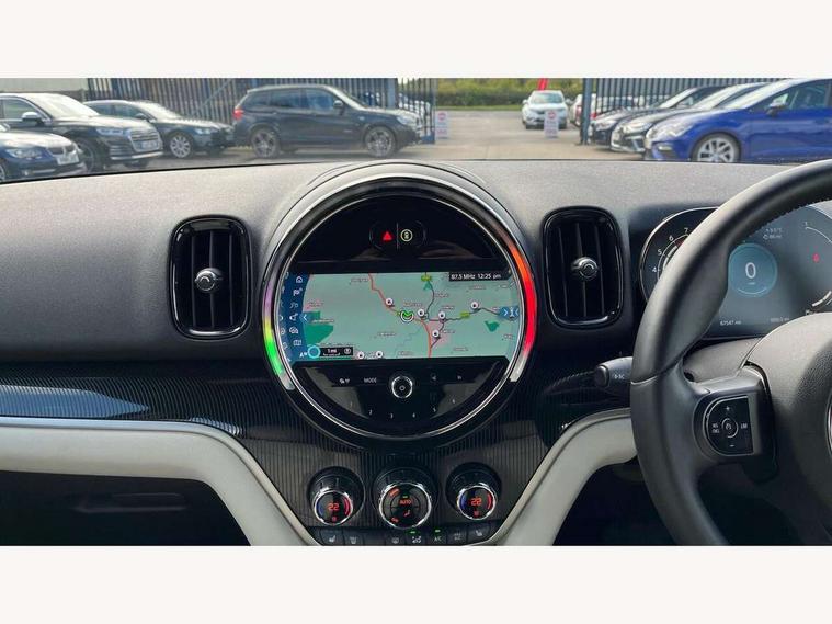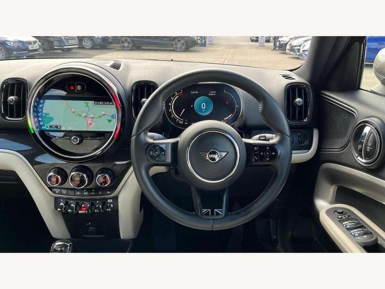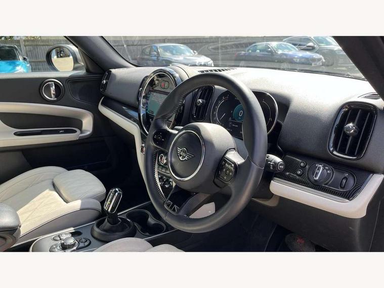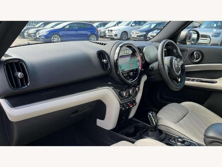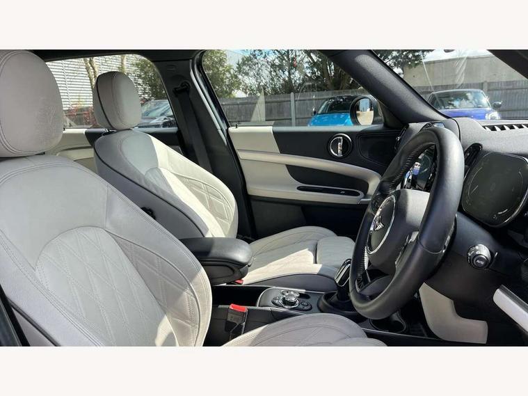 Active Guard incl speed limiting and lane departure functions with auto steering, and front collision warning with brake intervention, Automatic start/stop function with brake energy recuperation, Compatible mobile phone bluetooth with audio streaming, Cruise control with brake assist, Electro-mechanical speed dependant steering assistance, Instrument cluster, MINI Driving Modes - centre toggle switch to control driving setting (sport, mid and green), Mini E-call, On board computer, Rear parking distance control, 51 Litre fuel tank, Automatic transmission, Double Vanos system, Fully variable valve control, High precision injection, Performance Control, FM tuner and DAB digital radio, 3rd brake light, Body colour fuel filler cap, Day time driving lights, Door sill strips, Dynamic brake lights, Electric windows, Heated rear window, Heated windscreen washer jets, LED fog lights, LED Headlights, MINI yours exterior badge in C-Pillar, driver and passenger side, Model logo, Model logo on Tailgate, Rain sensor with auto headlights, Rear fog lights, Rear side wing doors, Rear window wiper, Side scuttle panel with integrated indicator, Split rear doors, Sun/heat protection glass, White indicator lenses, 12V socket in centre console, 3 seat bench in 2nd row, 360L luggage compartment capacity, 4 lashing eyes in luggage compartment, 40:20:40 split folding rear seats, Anthracite headlining with grab handles and clothes hooks, Chrome interior highlights, Colour line - Carbon black, Cupholders, English handbook, Front headrests, Glove compartment, Height and length steering column adjustment, Interior lighting with 12 basic colours selectable via toggle switch in roof, Isofix rear child seat preparation, Leather gearshift lever and handbrake gaiters, LED reading lights, vanity mirror lights, front foot well light and spotlight on front seats, Manual air conditioning, MINI Yours fine walk nappa leather steering wheel with contrast stitching in silver and MINI Yours badge, MINI Yours floor mats, Multifunction steering wheel, Rear headrests, Single front passenger seat, Storage compartments in doors, Sunvisors with vanity mirrors, Excitement pack - Countryman, Navigation pack - Countryman, 2 tone horn, 3 point seatbelts on all seats, 6 Airbags - front, side, head and seat belt tensioners, Anti-lock braking system (ABS), DSC - Dynamic Stability Control, Electronic handbrake, Front and rear disc brakes, Hill start assist, Manual rear child locks, Tyre pressure monitoring system, Alarm system with tilt sensor, monitoring doors, bonnet interior and tailgate, Auto drive away locking, Deadlocking function, Electronic vehicle immobiliser, Locking wheel bolts, Start/stop toggle with keyless go, Tool kit,