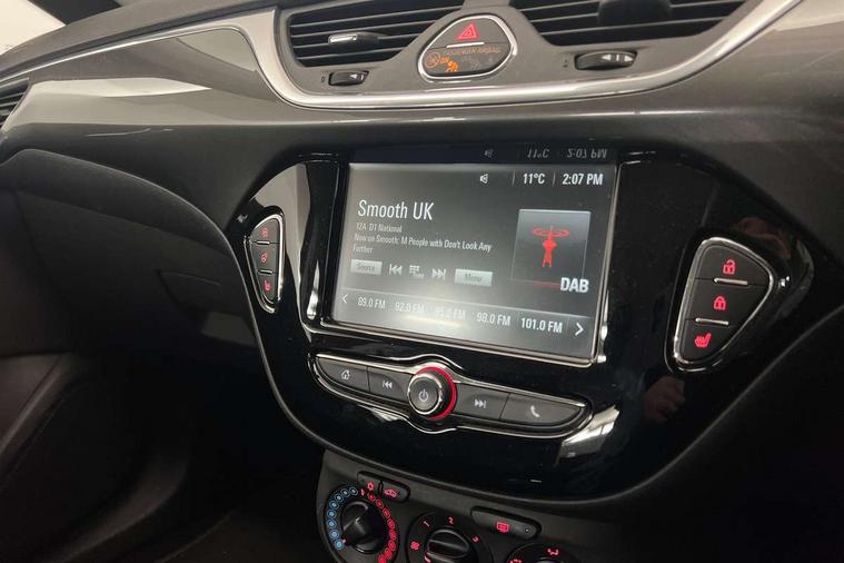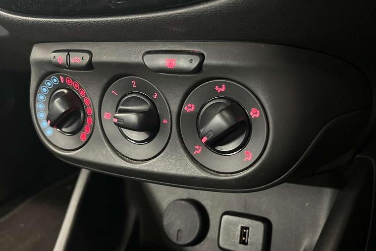 Bluetooth system, Cruise control + speed limiter, Door/boot open warning light, Exterior temperature gauge, Lights on warning, Low fuel level warning light, Multi function display, Rev counter, Service indicator, Speed sensitive power steering, Speed warning indicator, Trip computer, 6 speakers, DAB digital radio module, Fingertip controls for audio system, USB connection, Body colour bumpers, Chrome door handles, Coming home function, Cornering front fog lights with black surround, Electric adjustable door mirrors, Electric front windows/one touch facility, Front fog lights, Headlamp levelling, Heated door mirrors, Heated rear window, Heated windscreen, Laminated windscreen, LED daytime running lights, Manual folding door mirrors, Privacy glass, Rear wiper, Tinted glass including windscreen, Two speed windscreen wipers, 12V power outlet, 2 height adjustable rear headrests, Adjustable dashboard illumination, Air recirculation system, Centre console with cupholders, Chrome gear knob, Delay courtesy light function, Driver/passenger reading lights, Driver/passenger sunvisors and vanity mirrors, Electric reach + rake adjustable steering column, Front door pockets, Front map reading lights, Front seat belt pre-tensioners with load limiters, Glovebox, Grab handles, Height adjustable driver's seat, Height adjustable front headrests, Height/reach adjust steering wheel, Illuminated glovebox, Illuminated luggage compartment, Interior courtesy light operated by all doors, ISOFIX on outer rear seats, Lidded front door storage with drinks holder + armrest, Load restraining lashing points, Luggage compartment cover, Mora seat cloth upholstery, Pollen filter, Rear parcel shelf, Rear reading lights, Reclining front seats, Winter pack - Corsa, ABS + EBD + EBA, Brake assist function, Child proof door locks, Driver/passenger 2 stage auto adaptive airbags, ESP + traction control, Front and rear curtain airbags, Front and rear seatbelt reminder, Front seat side impact airbags, Height adjustable front seatbelts, Hill start assist, Manual passenger airbag deactivation function, Side impact protection beams, Three 3 point rear seatbelts, Tyre pressure monitoring system, Anti-drill door locks, Deadlocks, Immobiliser, Key left in ignition audible warning, Locking wheel bolts, Radio frequency remote central locking, Chrome effect speaker surrounds, Rhutenium facia with chrome effect inserts, 16" Silver alloy wheels - Style 1,