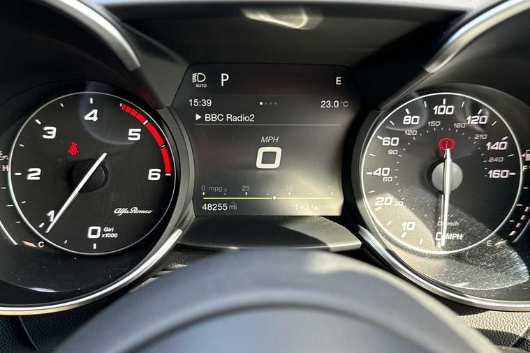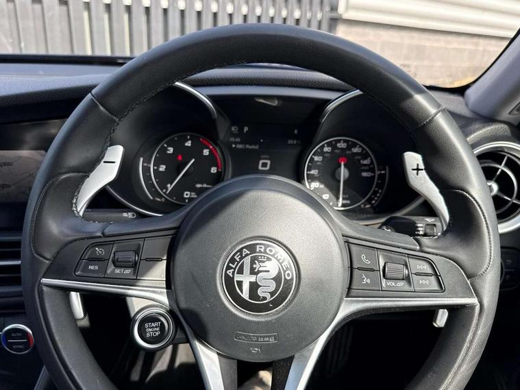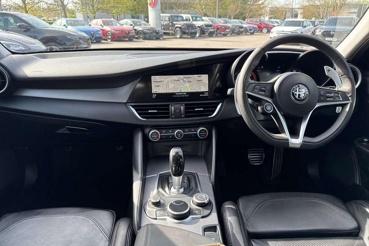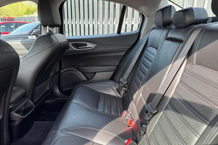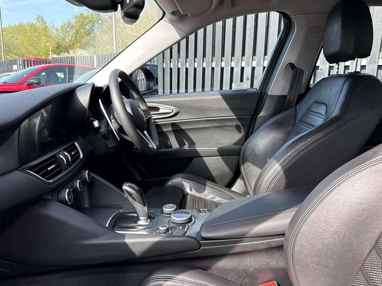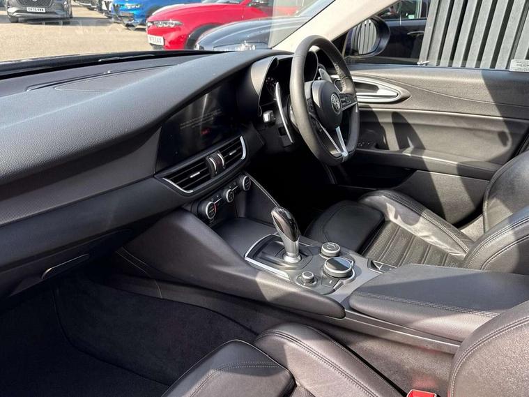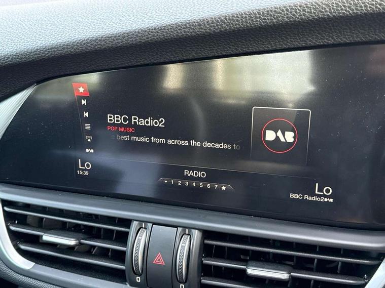 7.0" TFT Display premium cluster, Connect 8.8" colour display infotainment system, radio/nav, 3D maps with TMC, MP3, aux-in and bluetooth connection, Drive mode selector, Forward collision warning, Lane departure warning system, PAS, Trip computer, Diesel particulate filter, DAB Digital radio, Aluminium tunnel cover and front door moulding, Automatic front windscreen wipers, Automatic headlights, Bi-Xenon headlights, Daytime running lights, Dual chrome tipped exhausts, Electric folding auto dimming rear view mirrors, Fog lights, Gloss black side window surrounds, Heated washer jets, LED tail lights, Rear diffuser, Sports bumpers, 3 rear headrests, 40:20:40 split folding rear bench seat, 6 way electrically adjustable front seats, Aluminium door sill trims, Dual zone climate control, Front headrests, Heated front seats, Heated steering wheel, Leather multi function steering wheel, Leather sports steering wheel, Sports leather upholstery, Start button on steering wheel, Sport pack - Giulia, 3x3 point rear seatbelts, Autonomous emergency braking, Electronic parking brake, ESP, Passenger airbag deactivate switch, Traction control, Tyre pressure monitoring system, Immobiliser, Perimeter alarm, Remote central locking, Run flat tyres,
