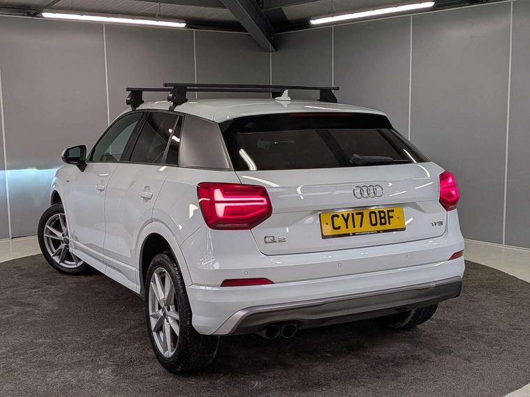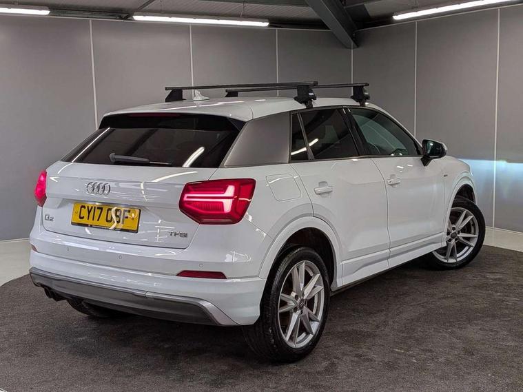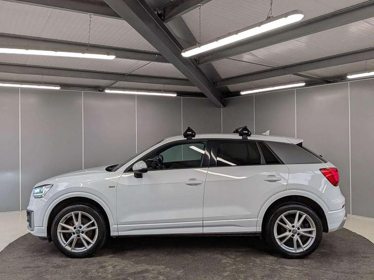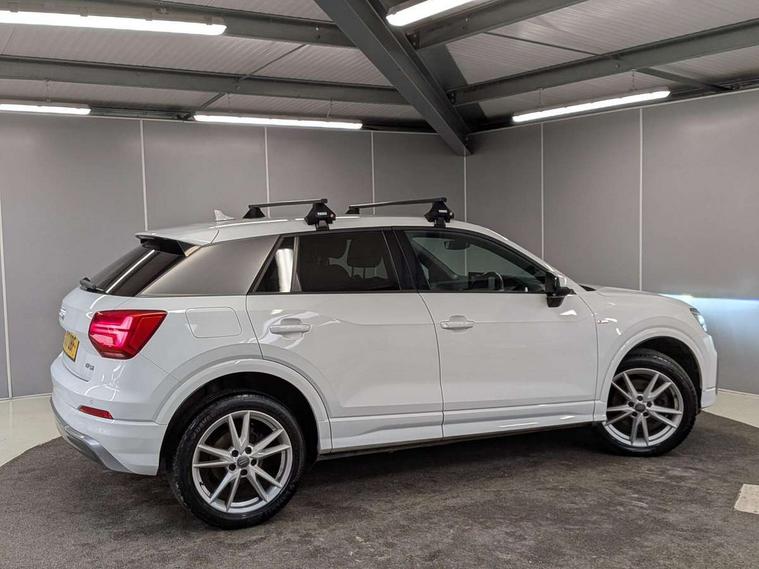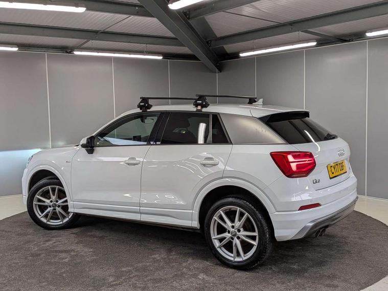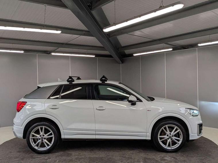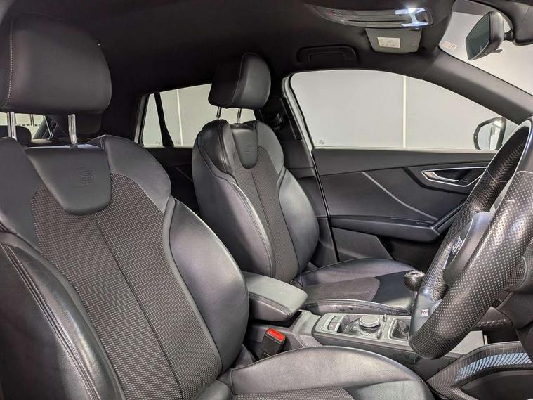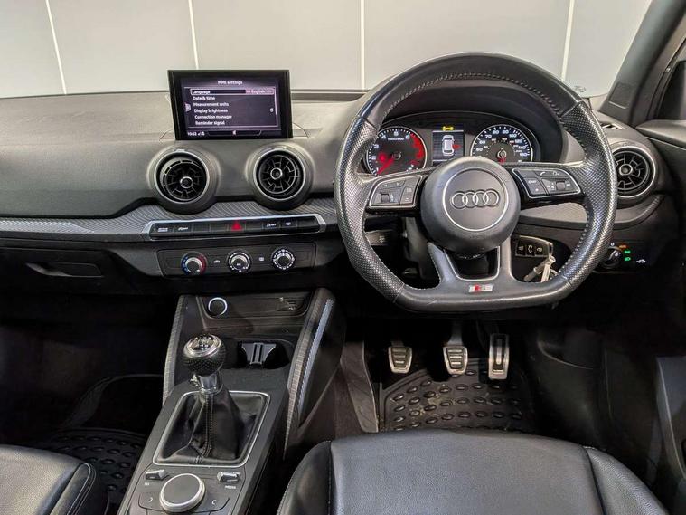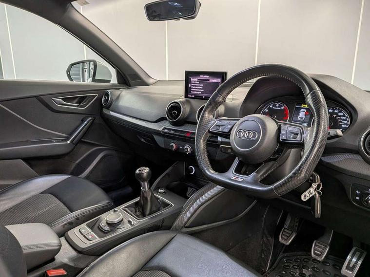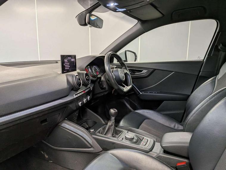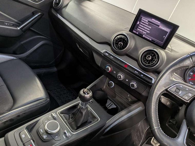 Audi drive select, Audi smartphone interface, Bluetooth hands free telephone connection, MMI - Multi Media Interface control system, MMI SD card Navigation, PAS, Service interval indicator, Voice control system, Audi music interface, Aux input, CD player, DAB digital radio module, MMI radio plus with 7" colour MMI screen and MMI controller, USB port, Body colour door mirrors, Chrome exhaust tailpipe, Door mirror integrated indicators, Electrically adjustable and heated door mirrors, Front and rear electric windows, Headlight washers, LED headlights with LED rear lights + dynamic rear indicators, Rear wiper, S Line body styling, Sunband for windscreen, Black cloth headlining, Centre console with storage/cupholders, Floor mats with contrast stitching, Front and rear door pockets, Front and rear headrests, Front centre armrest, Front sports seats, Glovebox, Height adjustable front seats, Height/reach adjust steering wheel, Illuminated door sills, ISOFIX on front passenger and rear outer seats, Stainless steel pedals, Storage compartment in rear centre console, Full body colour bumper pack - Q2, 3x3 point rear seatbelts, ABS+Electronic Brake force Distribution, Curtain airbags, Driver and passenger airbags, Driver and passenger side airbags, EDL + ASR, Electrically operated child locks on rear doors, Electromechanical parking brake, ESP, Multi-Collision braking, Pre-sense front with pedestrian recognition, Seatbelt warning light, Tyre pressure monitoring system, Warning triangle and first aid kit, Locking wheel bolts, Remote central locking, Thatcham category 1 alarm + immobiliser, Aluminium interior trim, Matt brushed aluminium fascia and door trim inlays,