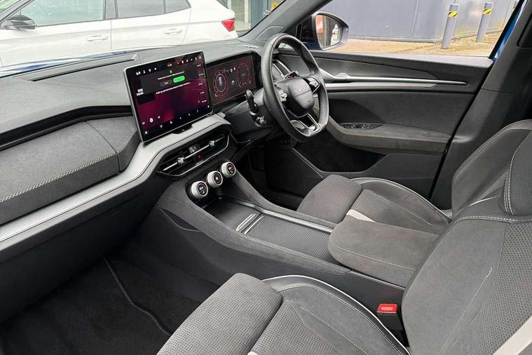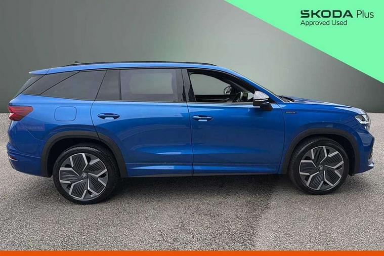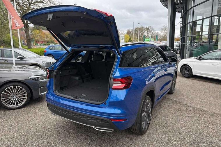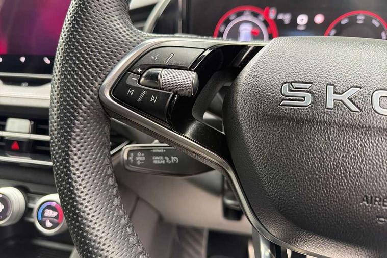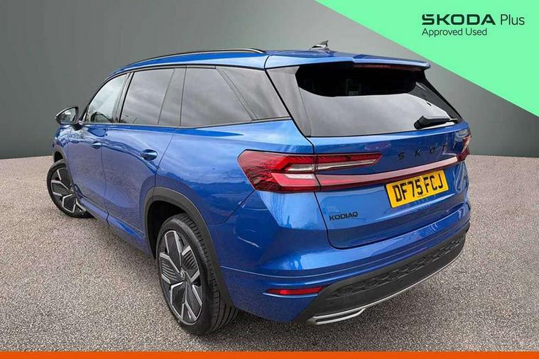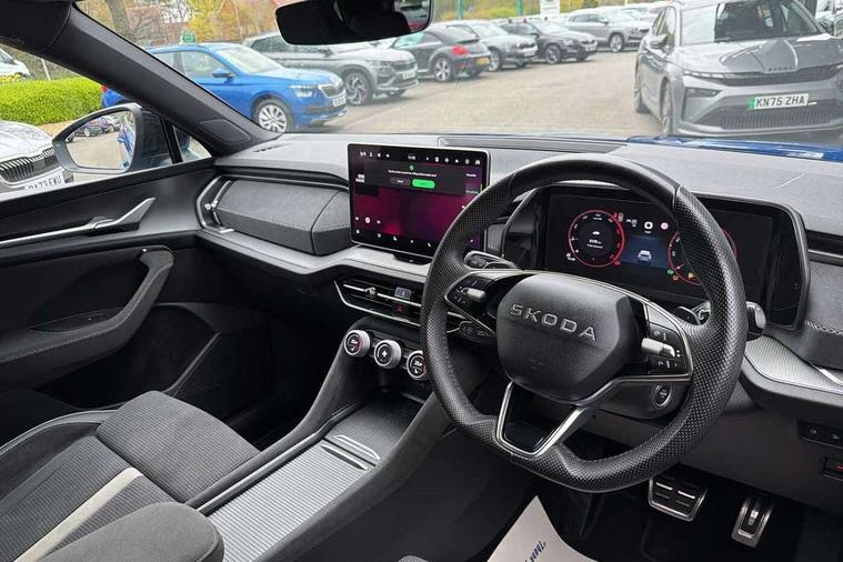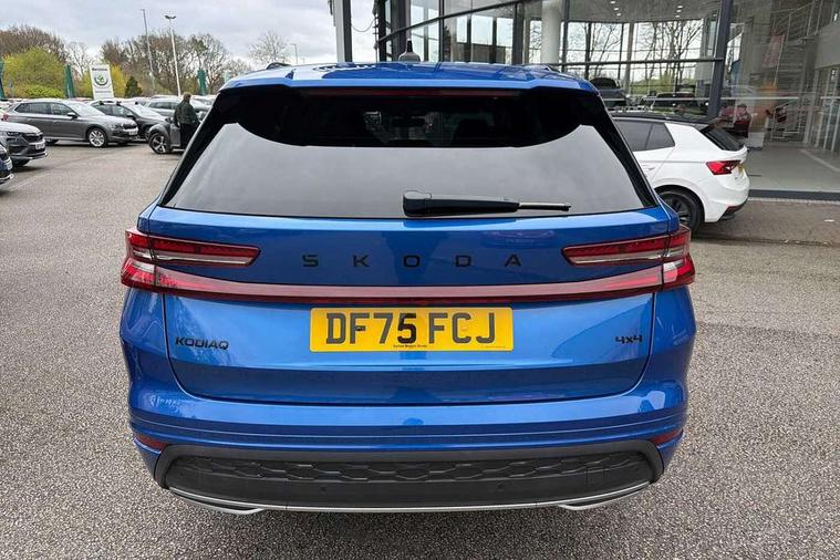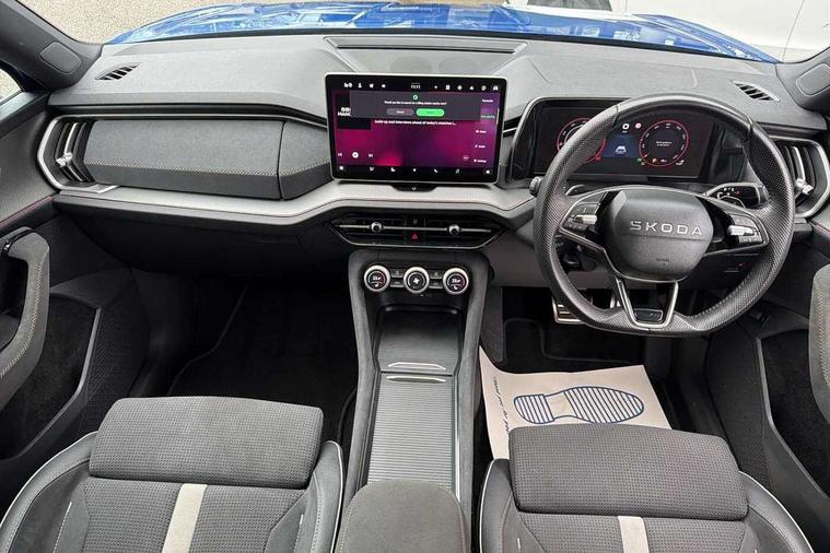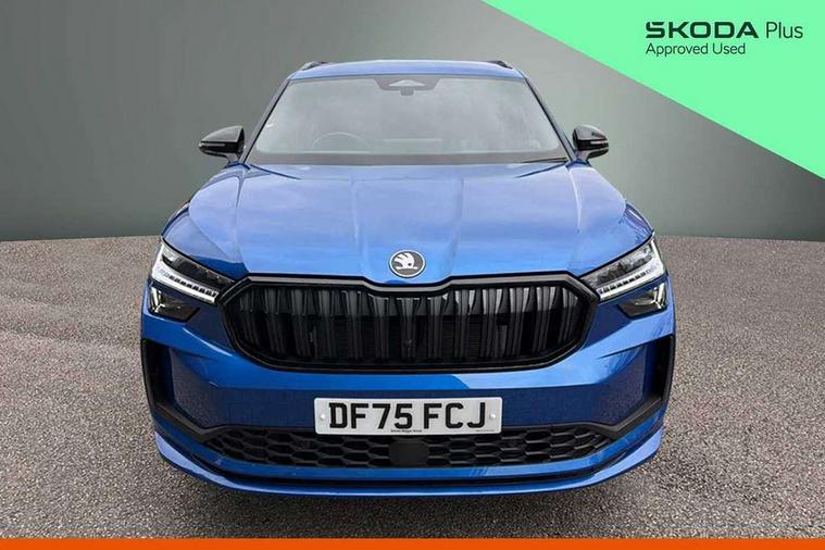13" satellite navigation touchscreen display, Blind spot detection with door exit warning, Bluetooth system, ChatGPT functionality, Driver alert - Fatigue and drowsiness monitor, Dry display cleaner, Emergency call, Front and rear parking sensors, Front cross traffic assist, Lane assist, Off road modes, PAS, Rear traffic assist, Tailgate unlocking from outside, Traffic sign recognition, USB C Port x 2 in front centre console, Virtual Cockpit - 10.25" digital display, Voice control system, Wireless charging for two smartphones (15W) with cooling function, Wireless SmartLink for Apple CarPlay and Android Auto, Stop/start function, 2x USB-C in the rear, DAB Digital radio, Aero front windscreen wipers with intermittent function, Auto dimming rear view mirror, AWL (all weather lighting) and all weather light with cornering function, Black diffuser and decorative tailpipe with a unique dark chrome finish, Black roof rails, Black sports styling including front grille and window surrounds, Black wheel arch surrounds, Body colour door handles, Cornering light and poor weather light, Electric folding /adjustable/separted heated/folding door mirrors, auto dimming with boarding sports and memory function, Electric front and rear windows, Exterior black decorative trims, Front and rear sports bumpers including lower rear chrome strip, Front grille with horizontal light strip, Gloss black door mirrors, Gloss black window frame and D pillar, Heat insulating glass in windshield, Heated rear window, Ice scraper in fuel tank cap, LED daytime running lights, LED matrix headlights with AFS and LED fog lights, LED rear light with welcome effect and dynamic turn signals, LED third brake light in rear spoiler, Light assistant with automatic headlight control and coming home feature, Logo projection in door mirrors, Multiple matrix beam, Privacy glass, Rear roof spoiler, Rear side wing doors, Rear window wiper, Red decorative strip between rear LED lights, Safety reflectors on front and rear doors, Sportline badge on front fenders, Tailgate lettering in Black, Unique dark chrome design logo on alloy wheels, Window control switches with black trim, Windscreen wipers with rain sensor, Without engine designation, 1.5l bottle holder points in all door, 1x centre rear reading light, 2 seat bench in 3rd row, 3 configurable smart dials with 32mm coloured display, 3 seat bench in 2nd row, 3 spoke multi-function heated leather sports steering wheel with paddle shift, 4 foldable roof handles with rear coat hooks, Aluminium pedals, Ambient interior lighting - Dashboard, front-door stowage compartments, front and rear door panels and footwell lighting, Automatic gear selector on steering column, Chrome interior door handles, Driver/front passenger reading lights, Fabric headlining, Fixed bench 40:60:40 split folding backrests, Front and rear floor mats, Front centre armrest with jumbo box storage compartment, cup holder and 12V socket, Front sport seats, Height adjustable front headrests, Interior black decorative trims, Isofix child seat fittings in outer middle row rear seats and front passenger with top tether, Manually adjustable steering column, Pollen filter, Rear centre armrest with cupholders, Rear seat boot backrest release, Single front passenger seat, Skoda lettering on steering wheel, Storage pocket including mobile phone pockets on the backs of the front seats, Sunvisors with illuminated vanity mirrors, Three rear height adjustable headrests, Ticket holder on A Pillar, Tri zone climate control, Umbrella in door panel x1 made from sustainable materials, Upper and lower glovebox with card holder and coin compartment, USB C port by rear view mirror for charging only (15W), Acoustic package - Kodiaq, Performance package - Kodiaq, Sportline design selection pack - Kodiaq, Auto door release and activation of warning lights in the event of an accident, Driver and front passenger airbag with knee airbag and front passenger airbag deactivation, Electric child locks, Electronic parking brake, ESC (incl. ABS+EMD+MSR+ASR+EDL+HBA+DSR+RBS+ESBS+MCB+TSA+XDS), Front assist with braking reaction to vehicles, pedestrians and cyclists, Front disc brakes, Fuel cut off safety device, Height adjustable front 3 point seatbelts + pretensioners, Hill hold assist, Junction assist with automatic emergency braking, Rear disc brakes, Safety vest holder in door, Seat belt reminder for all seats, Three point rear seat belts, Two tone horn, Tyre pressure monitor, Alarm with interior monitoring and tilt sensor with safe function, Anti-theft wheel bolts, Immobiliser, Remote central locking with 2 keys, 20" Rila anthacite polished alloy wheel with black matte aero covers,