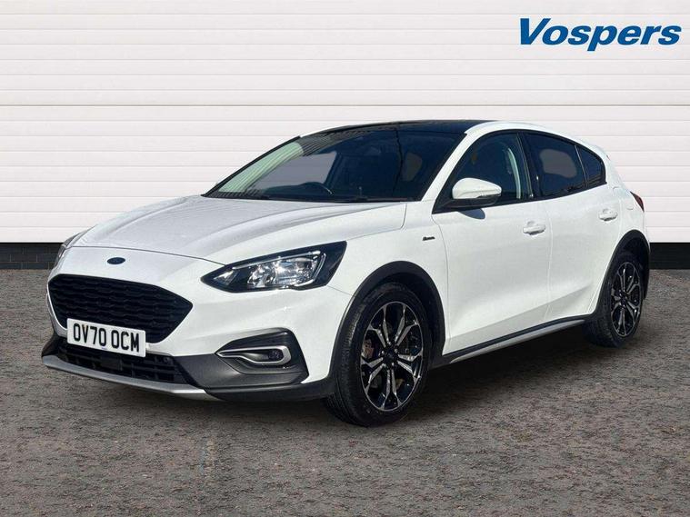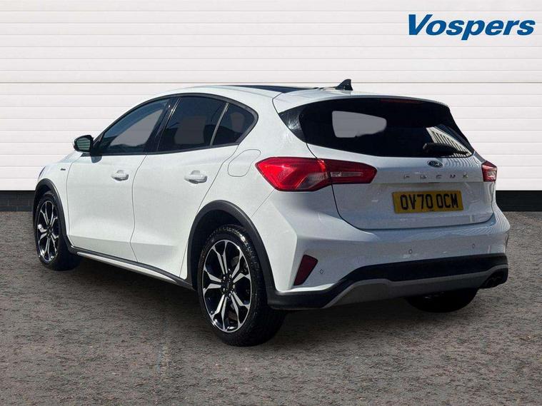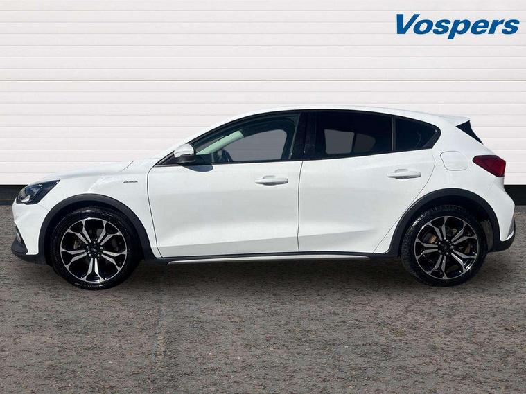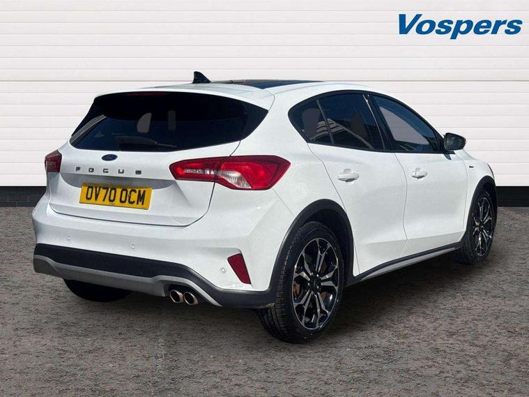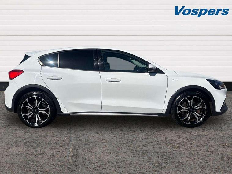 18" 5x2 spoke absolute black machined painted alloy wheels, Mini steel spare wheel, Keyless entry, MyKey system, Remote central locking & engine immobiliser, Thatcham category 1 alarm, Aux input, ABS+Electronic Brake force Distribution, Auto hold function, Driver airbag, Electronic parking brake, Electronic stability control, Front and rear seatbelt reminder, Front inertia reel height adjustable seatbelts with pre-tensioners, Front passenger airbag, Front side airbags, Hill start assist, Passenger airbag deactivate switch, Post collision braking, Pre collision assist with autonomous emergency braking and pedestrian/cyclist detection, Side curtain airbags, Three rear inertia reel lap/diagonal seatbelts, Tyre pressure monitoring system, 'Quickclear' heated windscreen/heated washer jets, Active branded scuff plates, Active front and rear bumper with unique upper and lower grille, Auto dimming rear view mirror, Auto headlamps (on/off), Automatic rain sensing wipers, Black painted roof and mirror caps, Body colour power folding door mirrors with puddle lights, Body coloured bumpers, Body coloured door handles, Electrically operated and heated door mirrors with side indicators, Electrically operated front and rear windows with one touch opening and closing, Front variable intermittent wipers with electric wash, Heated rear window, LED daytime running lamp, LED front fog lamps with cornering function, Openable panorama roof, Rear privacy glass, Tailgate wash/wipe, Twin exhaust tailpipes, Unique door and instrument panel inserts, Unique skid plates and side rocker mouldings, 3 spoke leather trimmed steering wheel with integrated audio controls, 6 way power adjustable driver seat, 60/40 split back and cushion rear seats with 2 height adjustable headrests, Centre console with armrest, Driver's seat manual height adjust, Dual zone electronic air temperature control, Front and rear floor mats with blue stitching, Front passenger seat manual height and lumbar adjust, Gear lever gaiter ring with blue stitching, Heated front seats, Height adjustable front headrests, Isofix child seat preparation, Leather gear knob, Partial leather upholstery with blue stitching, Reach + rake adjustable steering column, Rear centre headrest, Soft console knee pads with blue stitching, Bluetooth system, Digital clock, Easy fuel capless refuelling system, Eco mode, Ford pass connect, Ford SYNC 3 nav system with DAB radio, 8" colour touch screen, voice control, app link, Apple car play/Android auto and 4.2" TFT coloured cluster, Front and rear parking sensors, Intelligent speed assist, Lane keeping aid with lane departure warning, PAS, Selectable drive modes with slippery and trail mode, Trip computer, Raised ride height (30mm higher than standard),
