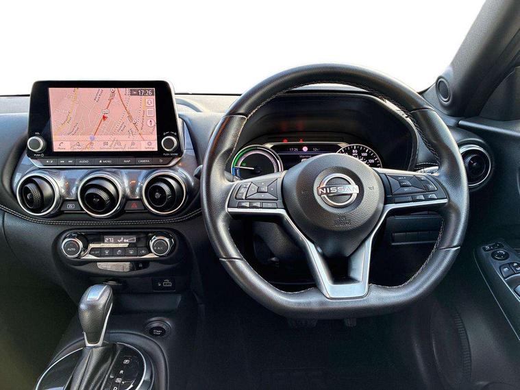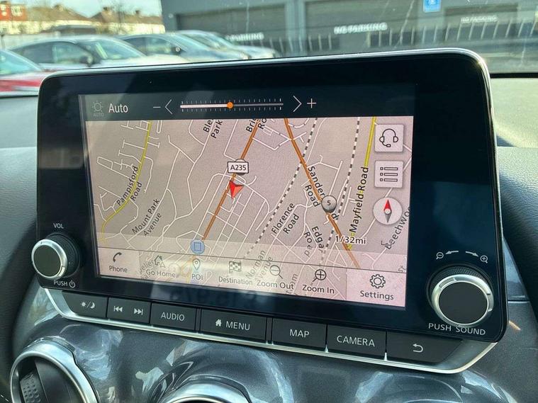 7" full colour TFT screen combimeter, Apple CarPlay and Google Android auto, Drive modes select (Eco, normal and sport), e-Pedal step, Emergency and breakdown call, EV mode selector, Front parking sensor, Intelligent lane intervention, Lane departure warning system, Nissan connect 8" touch screen entertainment system, Nissan connect nav with TomTom traffic, Nissan connect services and Wifi connection, Outside temperature sensor, Power Steering, Rear parking sensor, Traffic sign recognition, Trip computer, Voice recognition, Gasoline particulate filter, 6 speakers, Bluetooth system, USB, Aux-in and 12V socket, DAB Digital radio, Rear console USB port, Auto dimming interior rear view mirror, Auto headlights, Automatic hazard signal with emergency stop signal, Body colour bumpers, Body colour door handles, Electrically adjustable door mirrors with integrated indicators, Follow me home headlights, Front and rear electric window with one touch driver window, Heated and auto folding door mirrors, High beam assist, LED daytime running lights, LED headlamps, LED rear fog lamp, LED rear lamps, Rain sensor windscreen wipers, Rear privacy glass, Rear side wing doors, Rear wiper, Three blink turn signal, 3 height adjustable rear headrests, 3 seat bench in 2nd row, 60/40 split folding rear seat, Automatic climate control, Card holder on driver sunvisor, Cloth upholstery with black and metallic grey syntech leather inserts, Driver and passenger sliding and reclining seats, Driver side rear coat hanger, Driver/passenger sunvisors and vanity mirrors, Front and rear cabin lights, Front armrest, Front door pockets with bottle holders, Front head restraints, Front/rear passenger grab handles, Grey synthetic leather kneepad, Height adjustable driver's seat, Internal chrome door handles, Leather gearshift knob, Leather steering wheel, Luggage board, Luggage space lighting, Monoform sporty seats, Multifunction steering wheel, Rear door bottle holders, Single front passenger seat, Steering wheel mounted gearshift paddles, Telescopic steering wheel adjustment, Two cupholders in front centre console, Two rear isofix child seat anchorage points with top tether, Welcome light and console tray ambient lighting, ABS with EBD and brake assist, Active ride control, Active Trace Control, Driver and passenger airbags, Driver and passenger side airbags, Electric handbrake with auto hold function, Electronic Stability Programme (ESP), Front and rear curtain airbags, Height adjustable seatbelts, Hill start assist, Intelligent emergency braking with pedestrian and cyclist recognition, Rear door child safety locks, Seatbelt reminder for driver/front passenger and rear seats, Single tone horn, Three 3 point rear seatbelts, Traction control, Tyre pressure monitoring system, VDC Dynamic Vehicle Control, Ventilated rear brake discs, Alarm, Immobiliser, Intelligent key and start push button with walk away lock and approach unlock functions, Remote central locking,