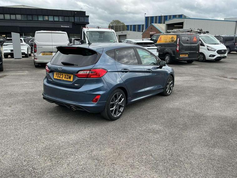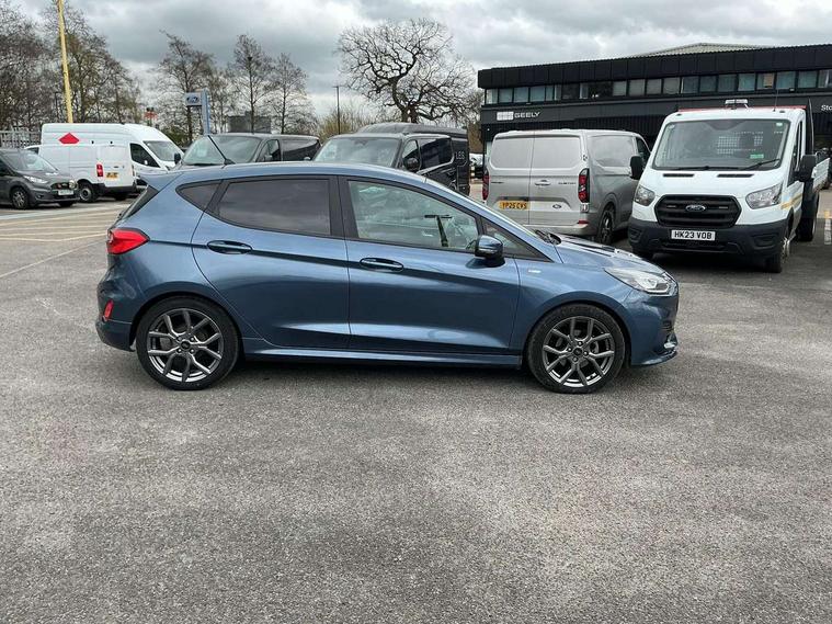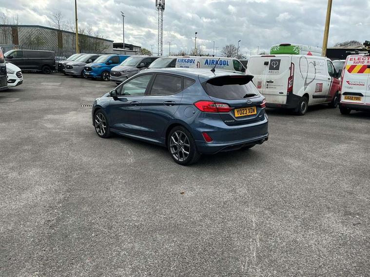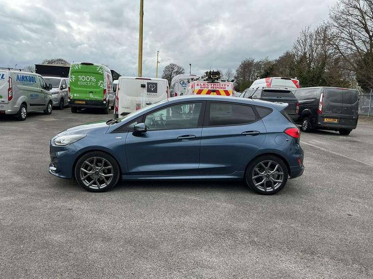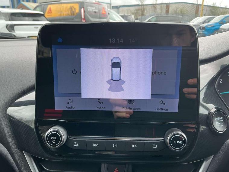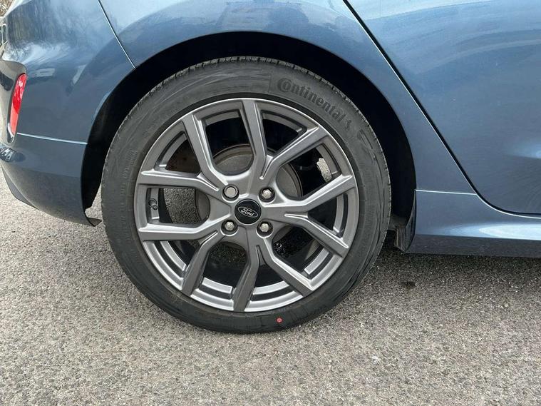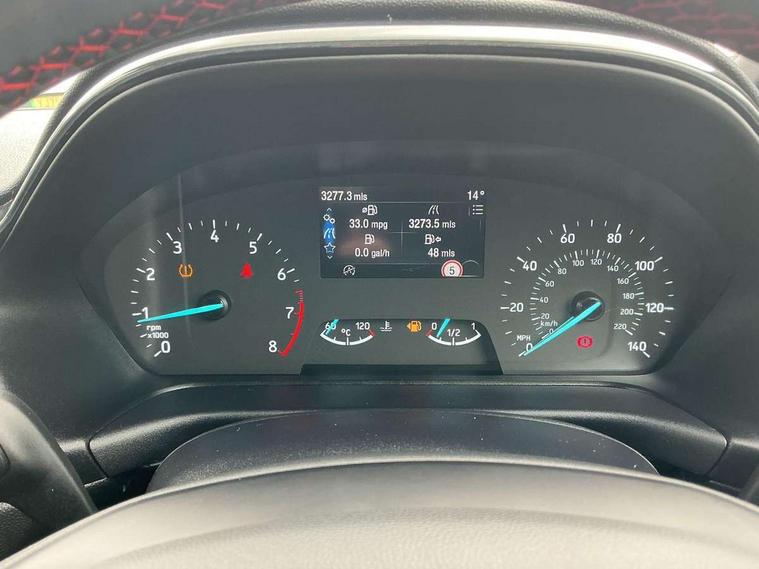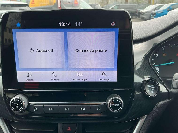 4.2" Colour TFT Ice blue illumination analogue cluster, Driver alert system, Electric power steering, Ford easy fuel, Lane keep assist, Lane keeping aid, Rear parking distance sensors, Selectable drive modes (Normal, Sport, Track), Trip computer, Sports suspension, 3rd brake light, Auto high beam, Automatic headlights, Body colour bumpers, Body colour large rear spoiler, Body coloured electrically operated with side indicators, Electric front windows/one touch facility, Electric rear windows, Quickclear heated windscreen, Rain sensing wipers and auto dimming rear view mirror, Rear privacy glass, Rear side wing doors, Rear wiper, Unique ST-Line grille, full bodystyling kit and large body coloured rear spoiler, 3 rear headrests, 3 seat bench in 2nd row, Adjustable head restraints, Black headlining, Centre console with opening armrest, 2x cupholders, 12v and USB, Cloth upholstery with red stitching, Leather gear knob, Manual 2 way passenger seat adjust, Manual 4-way driver seat adjust, Manual air conditioning, Premium floor mats, Sensico wrapped steering wheel, Single front passenger seat, 3 point seatbelts on all rear seats, Electronic stability control with hill start assist, Front and rear seat belt warning, Manual child lock in rear doors, Tyre pressure monitoring system, Keyless start with 'Ford Power' starter button, MyKey system, Remote central locking, Thatcham alarm with power door dead locks, 17" 5x2 spoke alloy wheels with rock metallic finish,