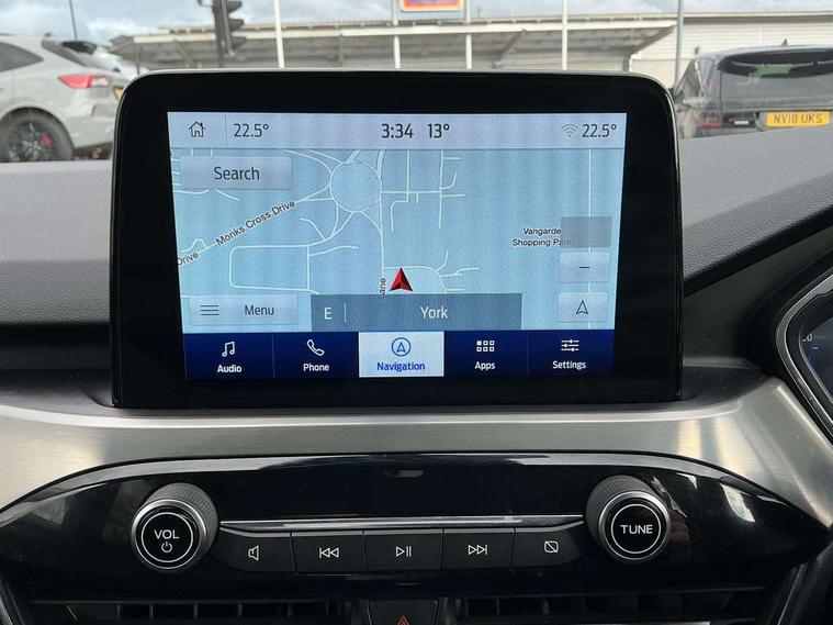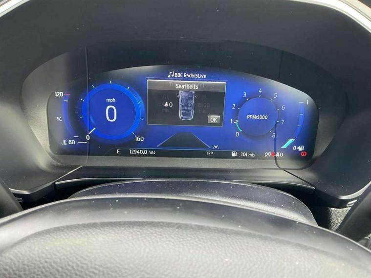 12.3" digital colour instrument cluster, Ford easy fuel, Ford SYNC 3 with 8" TFT LCD touchscreen, App Link, andriod auto/apple carPlay, emergency assistance and navigation with Ford pass connect, Front and rear parking sensors, Hands free power tailgate, Lane keeping aid with lane departure warning, Power assist steering, Rear view camera, Selectable drive modes, Service interval indicator, Standard suspension, Twist beam rear suspension, B&O premium audio system with 10 speakers and subwoofer, 2 USB ports, DAB radio/CD, Auto dimming rear view mirror, Auto headlamps with high and low beam, Auto wipers, Front LED fog lamps, LED daytime running lights, LED rear lights, Power folding heated door mirrors with puddle lights, Power front/rear windows with global close, Privacy glass, Quickclear heated windscreen, Rear side wing doors, Rear spoiler, Rear wiper, Silver roof rails, Third brake light, Twin exhausts, 10 way power adjustable drivers seat, 2nd row sliding seats with 60:40 split, 8 way manual passenger seat including lumbar support and height adjust, Ambient lighting, Centre console with electronic parking brake, Electronic automatic temperature control (EATC), Front and rear floor mats, Front and rear head restraints, Partial premium touch sensico leather upholstery with black cloth inserts, Rear charging point, Single front passenger seat, Sports seats, 3x3 point rear seatbelts, Airbags - front driver/passenger, front and rear curtain, Drivers knee airbag, Electronic stability control (ESC) and ABS, Ford MyKey Gen 2 safety system, Manual child proof rear door locks, Post collision braking, Pre collision assist with autonomous emergency braking, Rear seat Occupancy alert, Tyre pressure monitoring system, Engine immobiliser, Keyless entry and Ford power start button (Keyless start), Locking wheel nuts, Remote powered central double locking doors, Thatcham category 1 alarm, 18" 5x2 spoke magnetic and machined finish alloy wheels,