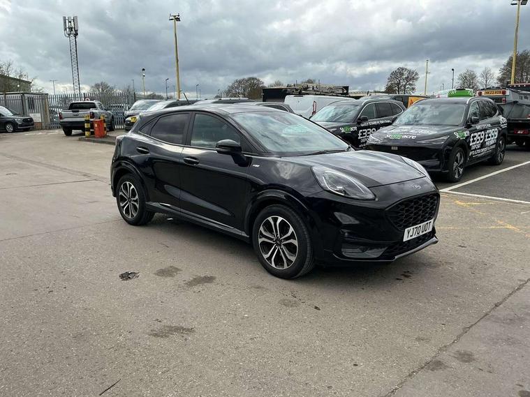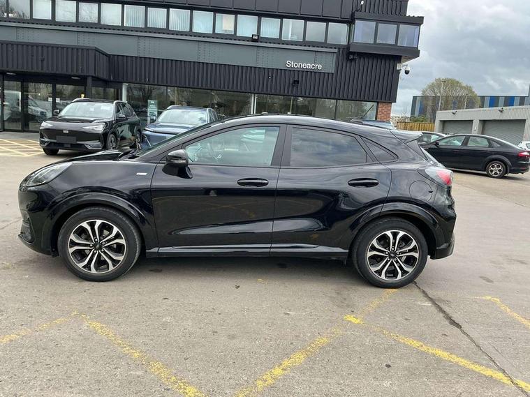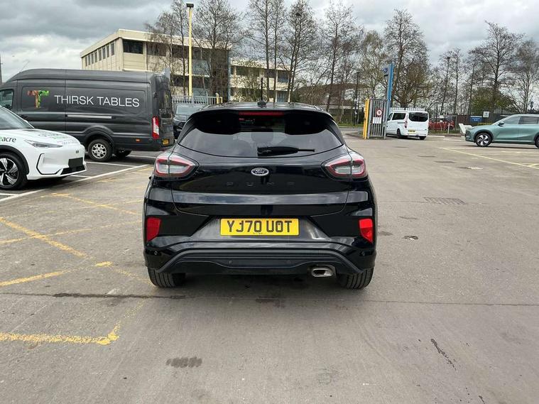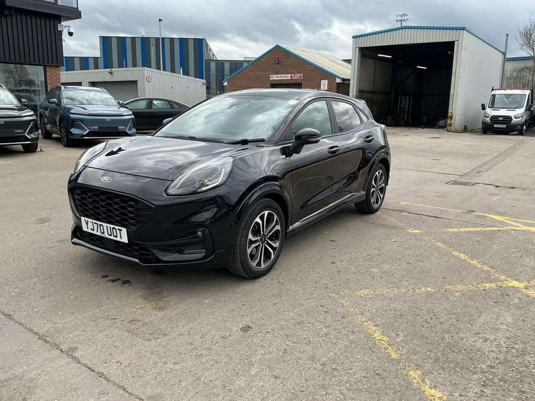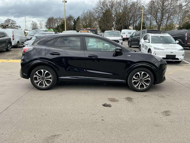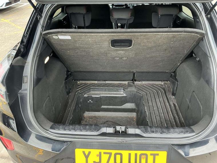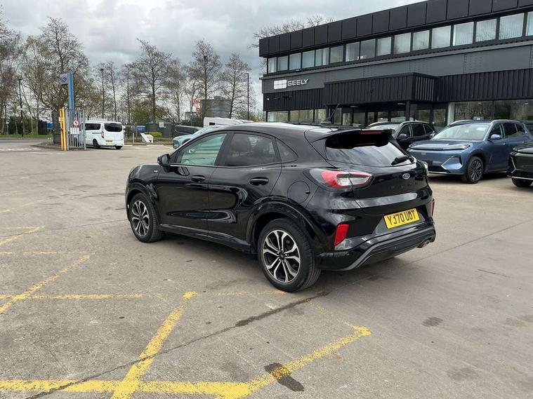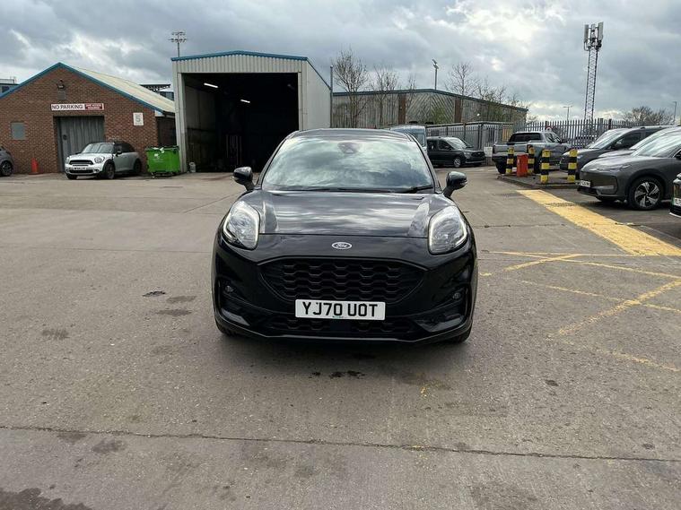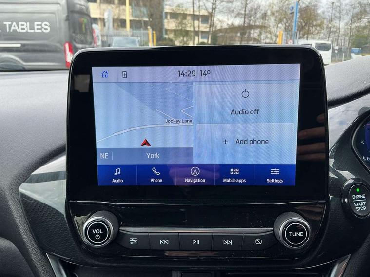 Ford easy fuel, Full digital 12.3" instrument cluster, Lane keeping aid with lane departure warning, Power assist steering, Rear parking sensor, Selectable drive modes(Normal, Eco, Sport, Slippery and Trail), Wireless charging pad, Automatic headlights with rain sensing wipers and auto high beam, Body coloured door mirrors, Front fog lights with cornering lights and LED rear lamps, Power foldable heated door mirrors with puddle lamps, Quickclear heated windscreen, ST-Line body kit with large rear spoiler wth sports suspension, Alloy sports pedals, Centre console with armrest and stowage, Court cloth upholstery with belgrano bolsters, Driver seat height/lumbar adjust, Ford megabox extended bootspace, Front and rear floor mats, Front and rear head restraints, Manual air conditioning, ST-Line flat bottomed sensico leather steering wheel with leather handbrake and aluminium gear knob, 3 rear seatbelts, Electronic stability control (ESC) and hill start assist, Pre-collision assist with autonomous emergency braking, pedestrian/cyclist detection & post-collision braking, Tyre pressure monitoring system (TPMS), Thatcham alarm, Tyre inflation kit,