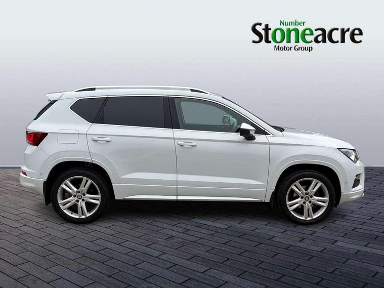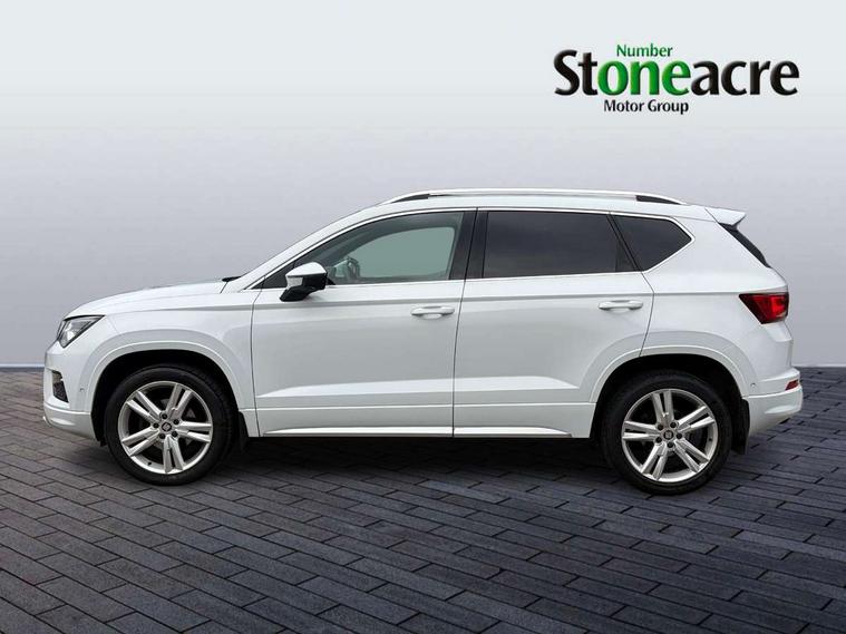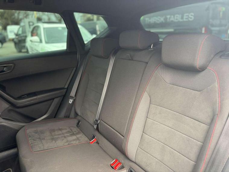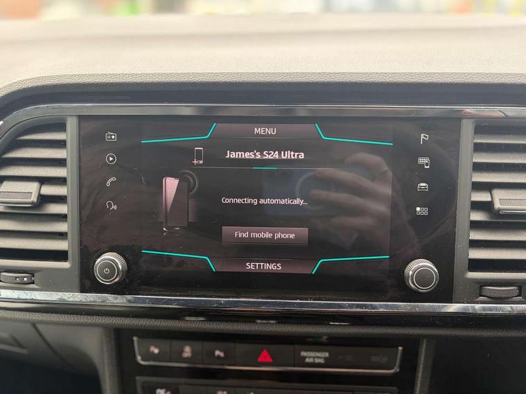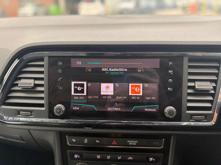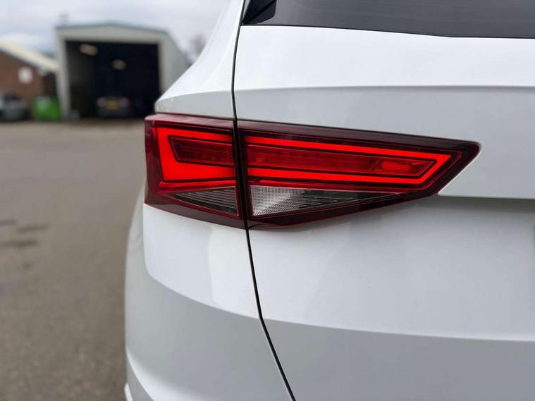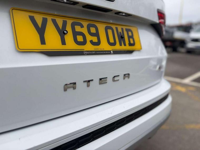 'Lights On' Reminder warning buzzer, 3.5" driver's display, Cruise control, Digital clock, Driver alert system, Front assist city emergency braking and pedestrian protection, Full Link Smartphone Integration with Mirror Link, Apple Car Play, Google Android Auto, Low fuel warning light, Multi function display, Outside temperature gauge, Power assist steering, Remote fuel flap release, RPM counter, Satellite navigation system, SEAT drive profile with driving experience button, SEAT logo boot release, Self parking functionality (includes front and rear parking sensors), Trip computer, Comfort suspension, XDS electronic differential lock, SEAT USB media cable, Steering wheel mounted audio/phone controls, Aluminium front door sills, Armrest with air outlet in rear, Auto dimming rear view mirror, Auto headlights with automatic coming and leaving home function, Body colour bumpers, Body colour door handles, Body colour door mirrors, Body coloured wheel arches, Chrome front grille frame, Chrome roof rails, Chrome side window trim, Dark tinted rear windows, Door mirrors with welcome light silhouette, Electric adjustable/heated/folding door mirrors, Frameless interior mirror, Front and rear electric windows, Front grille in glossy black, Full LED headlights, Illuminated aluminium front door sill with trim logo, LED daytime running lights, LED front fog lights, Rear fog lights, Rear LED tail lights, Rear spoiler, Rear wash/wipe, Twin chromed exhaust pipes, Visible dual exhaust pipes, 12V socket in front, 4 Lashing eyes in boot, 60/40 split folding rear seat, Adjustable front armrest with storage compartment, Aluminium pedals, Ambient spot lighting and front footwell illumination, Black roof lining, Driver and passenger seats, height-adjustable, with lumbar adjustment and height-adjustable headrests, Driver and passenger sun visor, covered and illuminated mirror, driver sun visor with card holder, Dual zone climate control, Front and rear head restraints, Front courtesy lights, Front cupholders, Front reading lights, Front seat back storage pockets, Gear shift indicator, Illuminated boot, Illuminated glovebox, Instrument lighting with brightness control, ISOFIX points in outer rear seats with top tether anchorage points, Leather steering wheel and gear knob, Microsuede upholstery with front sports seats, Multicoloured ambient lighting with LED interior illumination, Rear armrest and easy back seat release mechanism from boot, Rear reading lights, Storage box under drivers seat, Convenience pack - Ateca, Navigation system pack - Ateca, 3x3 point rear seatbelts, ABS, Automatic post collision braking, Driver/Front Passenger airbags, Drivers knee airbag, Electronic parking brake with auto hold, Electronic stability control, ESP+EBA, Front and rear seatbelt reminder, Front passenger airbag deactivation, Front side airbags, Hill hold control, Tiredness recognition system, Traction control, Twin curtain airbags, Tyre pressure monitoring system, 2 folding remote keys with window open/close function, Immobiliser, Locking wheel bolts, Remote central locking, Volumetric alarm with back up horn, Chrome interior detailing, 18" Performance alloy wheels,
