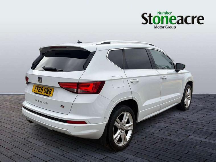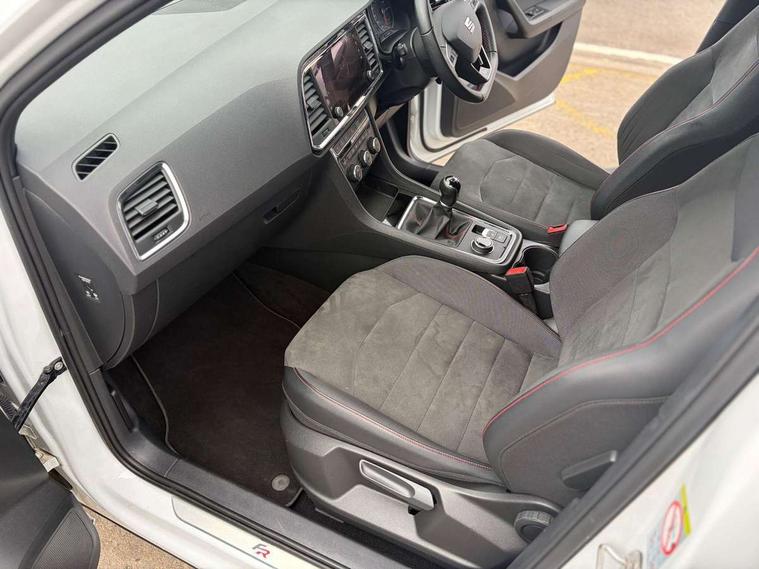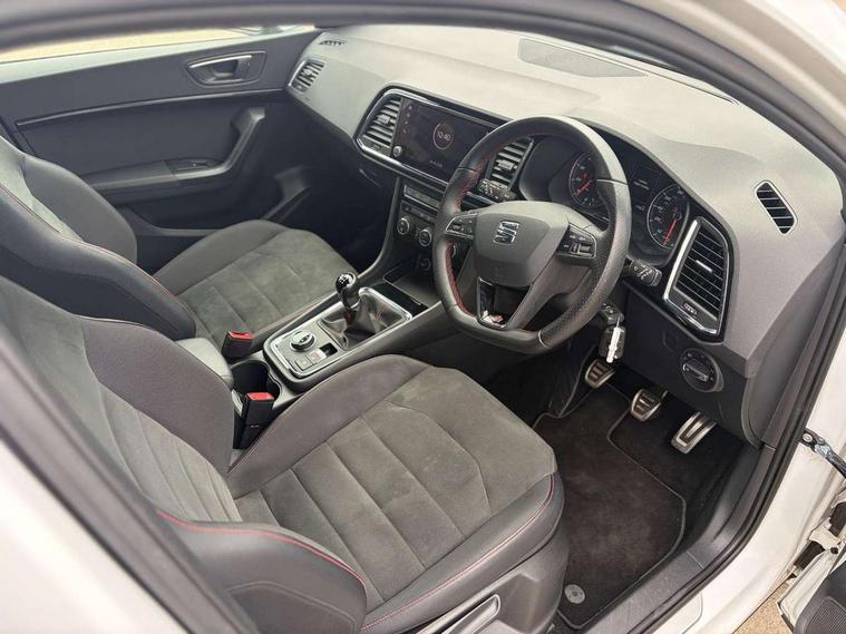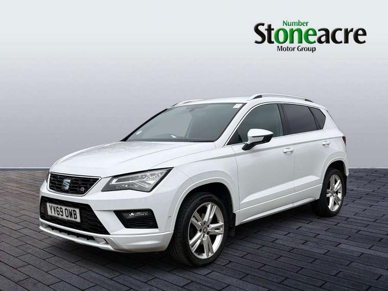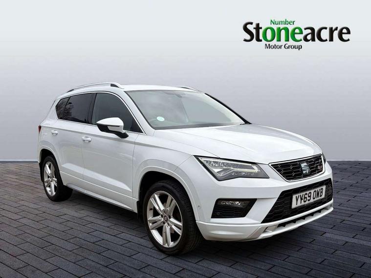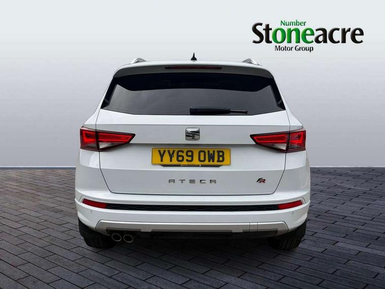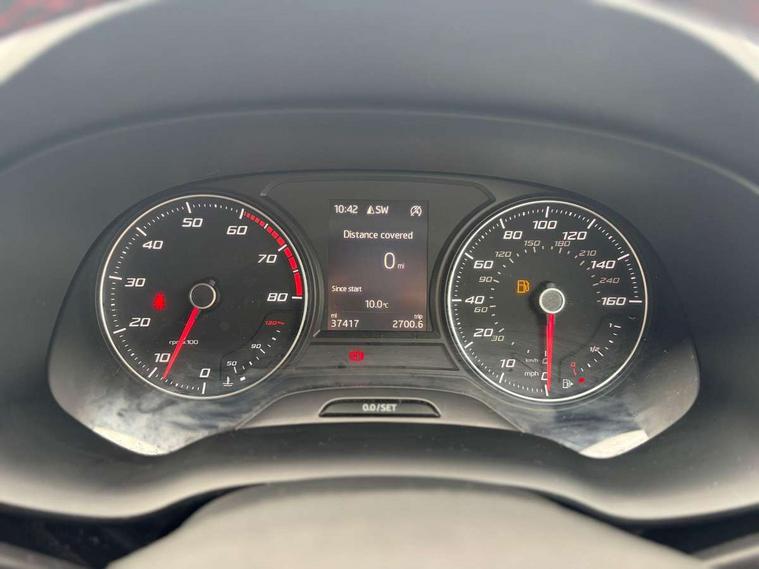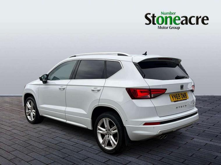 'Lights On' Reminder warning buzzer, 3.5" driver's display, Cruise control, Digital clock, Driver alert system, Front assist city emergency braking and pedestrian protection, Full Link Smartphone Integration with Mirror Link, Apple Car Play, Google Android Auto, Low fuel warning light, Multi function display, Outside temperature gauge, Power assist steering, Remote fuel flap release, RPM counter, Satellite navigation system, SEAT drive profile with driving experience button, SEAT logo boot release, Self parking functionality (includes front and rear parking sensors), Trip computer, Comfort suspension, XDS electronic differential lock, SEAT USB media cable, Steering wheel mounted audio/phone controls, Aluminium front door sills, Armrest with air outlet in rear, Auto dimming rear view mirror, Auto headlights with automatic coming and leaving home function, Body colour bumpers, Body colour door handles, Body colour door mirrors, Body coloured wheel arches, Chrome front grille frame, Chrome roof rails, Chrome side window trim, Dark tinted rear windows, Door mirrors with welcome light silhouette, Electric adjustable/heated/folding door mirrors, Frameless interior mirror, Front and rear electric windows, Front grille in glossy black, Full LED headlights, Illuminated aluminium front door sill with trim logo, LED daytime running lights, LED front fog lights, Rear fog lights, Rear LED tail lights, Rear spoiler, Rear wash/wipe, Twin chromed exhaust pipes, Visible dual exhaust pipes, 12V socket in front, 4 Lashing eyes in boot, 60/40 split folding rear seat, Adjustable front armrest with storage compartment, Aluminium pedals, Ambient spot lighting and front footwell illumination, Black roof lining, Driver and passenger seats, height-adjustable, with lumbar adjustment and height-adjustable headrests, Driver and passenger sun visor, covered and illuminated mirror, driver sun visor with card holder, Dual zone climate control, Front and rear head restraints, Front courtesy lights, Front cupholders, Front reading lights, Front seat back storage pockets, Gear shift indicator, Illuminated boot, Illuminated glovebox, Instrument lighting with brightness control, ISOFIX points in outer rear seats with top tether anchorage points, Leather steering wheel and gear knob, Microsuede upholstery with front sports seats, Multicoloured ambient lighting with LED interior illumination, Rear armrest and easy back seat release mechanism from boot, Rear reading lights, Storage box under drivers seat, Convenience pack - Ateca, Navigation system pack - Ateca, 3x3 point rear seatbelts, ABS, Automatic post collision braking, Driver/Front Passenger airbags, Drivers knee airbag, Electronic parking brake with auto hold, Electronic stability control, ESP+EBA, Front and rear seatbelt reminder, Front passenger airbag deactivation, Front side airbags, Hill hold control, Tiredness recognition system, Traction control, Twin curtain airbags, Tyre pressure monitoring system, 2 folding remote keys with window open/close function, Immobiliser, Locking wheel bolts, Remote central locking, Volumetric alarm with back up horn, Chrome interior detailing, 18" Performance alloy wheels,