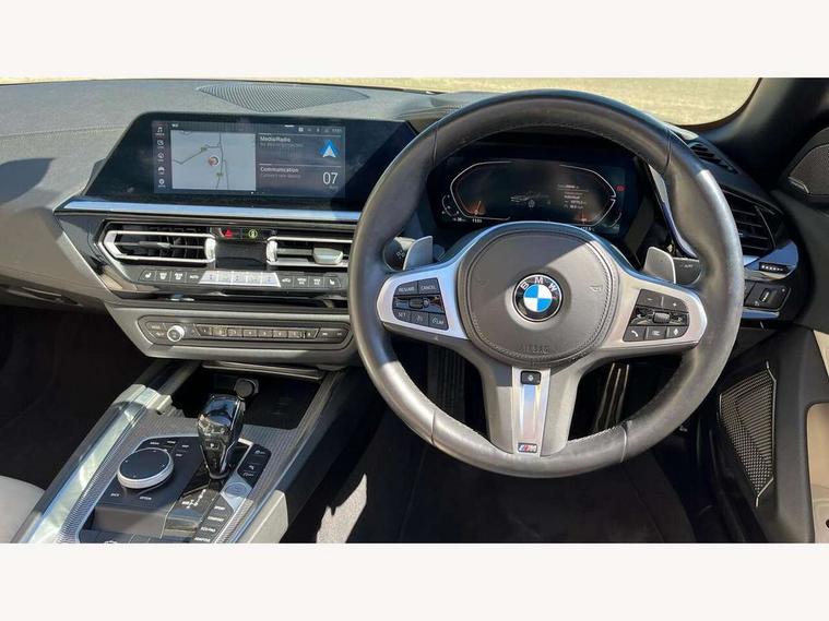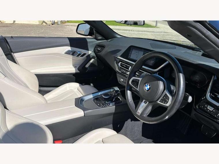 Active Guard, Auto start-stop, Bluetooth hands free telephone connection with USB audio interface + audio streaming, BMW ConnectedDrive online services, BMW Live Cockpit Professional with 10.25" high resolution instrument and control display, BMW Teleservices, Electric power steering, Fuel gauge, Instrument cluster, Oil sensor for level and grade, warning by check control system, Oil temperature gauge, Optimum shift indicator, Pull away assistant, Run flat indicator, Speedometer with mph readout, Tachometer, Variable sport steering, Double joint spring, Double VANOS, Drive performance control with ECO PRO comfort + sport mode, Eight speed steptronic sport transmission, with gearshift paddles, Electronic differential lock, Fuel tank breather system, High precision injection, M sport suspension, HiFi loudspeaker system, USB connection, Automatic headlight beam throw control with load dependent regulating reaction, dynamic compensation of braking dive and acceleration squat, Door sill finishers with M designation, Door sill strips, Dynamic braking lights comprising activated hazard warning flashers and third brake lights, Electric heated rear window, Exhaust tailpipe - split left and right, Exterior mirror housing finished in body colour, Exterior mirrors - electrically folding with anti-dazzle, Fingertip control / anti-trap function on electric window, Follow me home headlight function, Front and rear bumper system with replaceable deformation elements, Green tinted heat protection glazing, Heated windscreen washer jets, High gloss shadow line, Interior rear view electrochromatic mirror with automatic anti dazzle function, Kidney grille in mesh design, LED daytime driving lights, LED Indicators, LED rear lights, Lightweight engineering, M aerodynamic body kit, M Sport exterior styling, Matt black window recess finisher, Model logo, Tailgate release handle, Two stage brake force display, Visible VIN plate, Welcome lighting, Windscreen wipers with adjustable interval, 12V power socket in front storage compartment, Activation of interior lighting, Additional storage compartment - 4 lashing eyes, strap and storage net, Ambient lighting, Battery in luggage compartment, Child seat ISOFIX attachments for passenger seat, Cupholder, Driver and front passenger heated seats, Front and rear velour floor mats, Front headrests, Height adjustable mechanically and infinitely variable steering column, M sport leather steering wheel, M Sport seats for driver and passenger, Microfilter and active carbon filter, Sunvisors with vanity mirrors, Two zone automatic air conditioning, Vernasca leather upholstery, Connected package professional - Z4, 3 point front seat belts, Airbags - Front driver and passenger, front and side impact protection, Anti lock braking system (ABS) with brake assist, Automatic Stability Control (ASC), BMW emergency call, Brake energy regeneration, Braking readiness, Cornering brake control (CBC), Crash sensor activating central locking release, hazard warning lights, fuel cut off, interior lighting, safety battery terminal clamp and airbags, Deactivation of fuel pump in the event of a crash, Dry braking, Dynamic brake control, Dynamic stability control + (DSC+), Dynamic Traction Control - DTC, Electromechanical parking brake with automatic drive away release and auto hold function, Front and rear brake discs with interior ventilation, M Sport brakes with blue calipers M designation in front, Plastic fuel tank, Pyrotechnic seat belt tensioners, Roll over protection, Seat belt force limiter, Seat belt stopper, Seat occupancy protection, Two tone horn, Tyre pressure monitoring with three level warning strategy, Centre lock switch, Closing system with central locking, Electronic vehicle immobiliser, Start/stop button with Comfort Go keyless engine start and auto Start/stop deactivation button, Thatcham cat 1 remote alarm, Sensatec dashboard, 18" Double spoke M light alloy wheels in bicolour ferric grey - style 798M, Reduced rolling resistance tyres, Tyre repair kit,