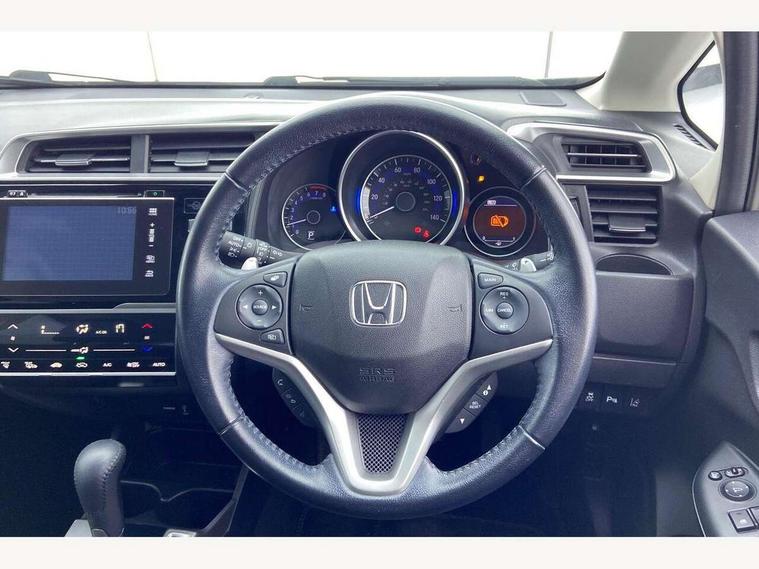 Adaptive motion for electric power steering, Bluetooth hands free telephone connection, Connect Navigation with 7" touchscreen, Digital Radio, Radio/CD/Mp3, Aha app integration, internet browsing, Cruise control with speed limiter, Emergency stop signalling system, Forward collision warning, Front and rear parking sensors, Idle stop, Intelligent speed assist, Lane departure warning system, Multi-information display, Rear view camera, Traffic sign recognition, Vehicle stability assist, 'Shark fin' mobile antenna, 2x USB and HDMI, 6 speakers, Steering wheel mounted audio controls, Automatic coming/leaving home lighting function, Automatic headlights with dusk sensor, Automatic rain sensing wipers, Body colour door handles, Body colour door mirrors, Body coloured bumpers, Drivers one touch power window up/down, Electric heated + adjustable door mirrors, Electrically retractable door mirrors, Front and rear power windows, Front fog lights, High beam assist, LED daytime running lights, LED Headlights, LED high level brake lights, One touch passenger power window up/down, Rear privacy glass, Rear wiper with intermittent and reverse linked, Automatic climate controlled air conditioning, Centre console accessory socket, Cloth upholstery, Driver seat back pocket, Driver's seat height adjustment, Driver/passenger sunvisors and vanity mirrors, Front accessory power socket, Front map lights, Front/rear courtesy lights, Gear shift indicator, Height adjustable passenger seat, Isofix child seat restraint mechanism, Leather gear knob, Leather steering wheel, Luggage area under floor storage box, Magic seat flexibility system, Paddle shift controls, Passenger seat back pocket, Rear head restraints, Rear parcel shelf, Reclining rear seats, Tilt/telescopic adjustable steering wheel, Trunk light, 3x3 point rear seatbelts, ABS/EBD, Active city braking, Anti-whiplash front headrests, Brake assist function, Deflation detection system, Driver's side SRS airbag, Dual front SRS airbags, Front and rear curtain airbags, Front and rear seat belt with emergency locking retractor, Front side airbags, Hill start assist, Passenger SRS airbag cut-off device, Honda super locks, Immobiliser, Security alarm, Smart entry + Smart start, 16" alloy wheels, Tyre repair kit,