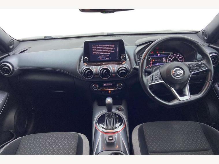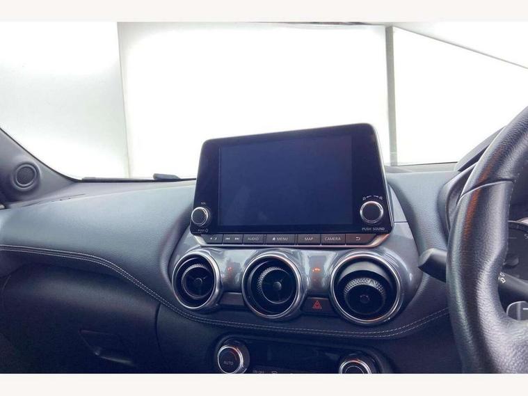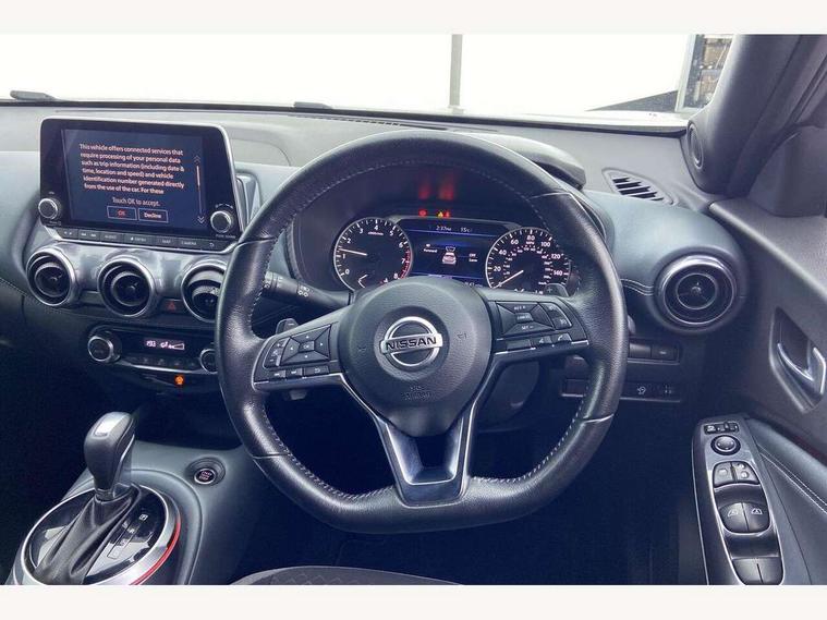 7" full colour TFT screen combimeter, 8" infotainment colour display with touch screen, Apple CarPlay and Google Android auto, Drive modes select (Eco, normal and sport), Emergency and breakdown call, Front parking sensor, Idle start/stop system, Intelligent lane intervention, Lane departure warning system, Nissan connect nav with TomTom traffic, Nissan connect services and Wifi connection, Outside temperature sensor, Power Steering, Rear parking sensor, Traffic sign recognition, Trip computer, Gasoline particulate filter, 6 speakers, Bluetooth system, USB, Aux-in and 12V socket, DAB Digital radio, Rear console USB port, Auto dimming interior rear view mirror, Automatic hazard signal with emergency stop signal, Body colour bumpers, Body colour door handles, Electrically adjustable door mirrors with integrated indicators, Follow me home headlights, Front and rear electric window with one touch driver and passenger window, Heated and auto folding door mirrors, High beam assist, LED daytime running lights, LED front fog lights, LED headlamps, LED rear fog lamp, LED rear lamps, Rain sensor windscreen wipers, Rear privacy glass, Rear spoiler, Rear wiper, Three blink turn signal, 3 height adjustable rear headrests, 60/40 split folding rear seat, Automatic climate control, Card holder on driver sunvisor, Cloth upholstery, Door ambient lighting, Driver and passenger sliding and reclining seats, Driver seat back pocket, Driver side rear coat hanger, Driver/passenger sunvisors and illuminated vanity mirrors, Front and rear cabin lights, Front armrest, Front door pockets with bottle holders, Front head restraints, Front/rear passenger grab handles, Gear console ambient circle lighting, Grey synthetic leather kneepad, Height adjustable driver's seat, Internal chrome door handles, Leather gearshift knob, Leather steering wheel, Luggage board, Luggage space lighting, Monoform sporty seats, Multifunction steering wheel, Passenger seat back pocket, Rear door bottle holders, Steering wheel mounted gearshift paddles, Telescopic steering wheel adjustment, Two cupholders in front centre console, Two rear isofix child seat anchorage points with top tether, Voice recognition switch on steering wheel, Welcome light and console tray ambient lighting, ABS with EBD and brake assist, Active ride control, Active Trace Control, Driver and passenger airbags, Driver and passenger side airbags, Electric handbrake with auto hold function, Electronic Stability Programme (ESP), Front and rear curtain airbags, Height adjustable seatbelts, Hill start assist, Intelligent emergency braking with pedestrian and cyclist recognition, Seatbelt reminder for driver/front passenger and rear seats, Single tone horn, Three 3 point rear seatbelts, Traction control, Tyre pressure monitoring system, VDC Dynamic Vehicle Control, Ventilated rear brake discs, Alarm, Immobiliser, Intelligent Key with push button starter, Remote central locking,
