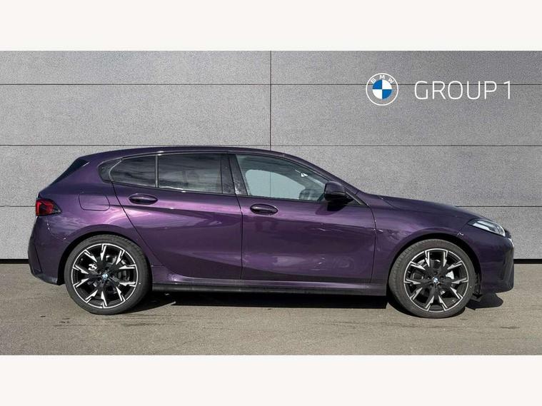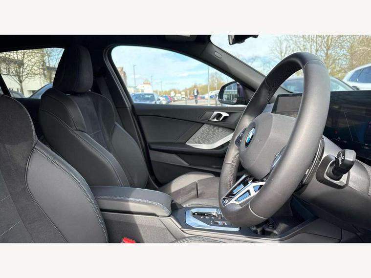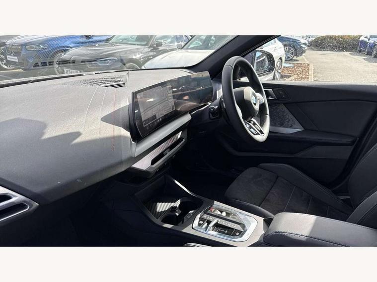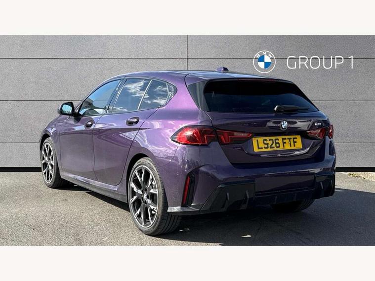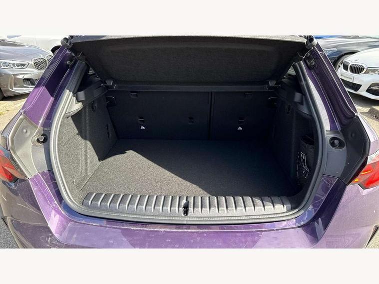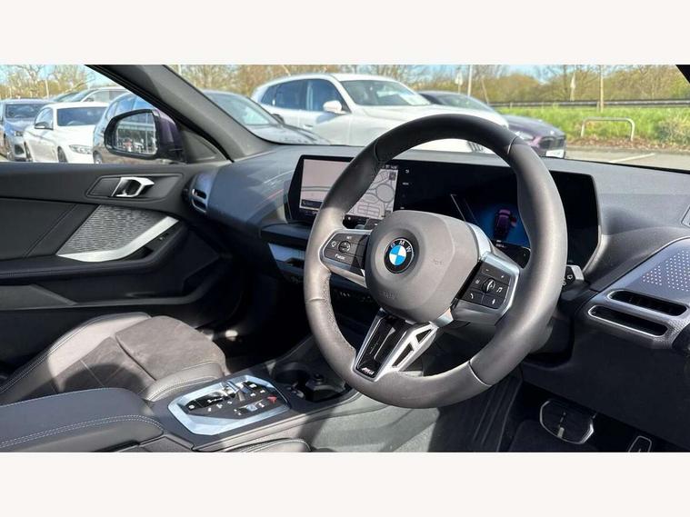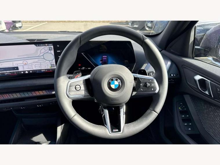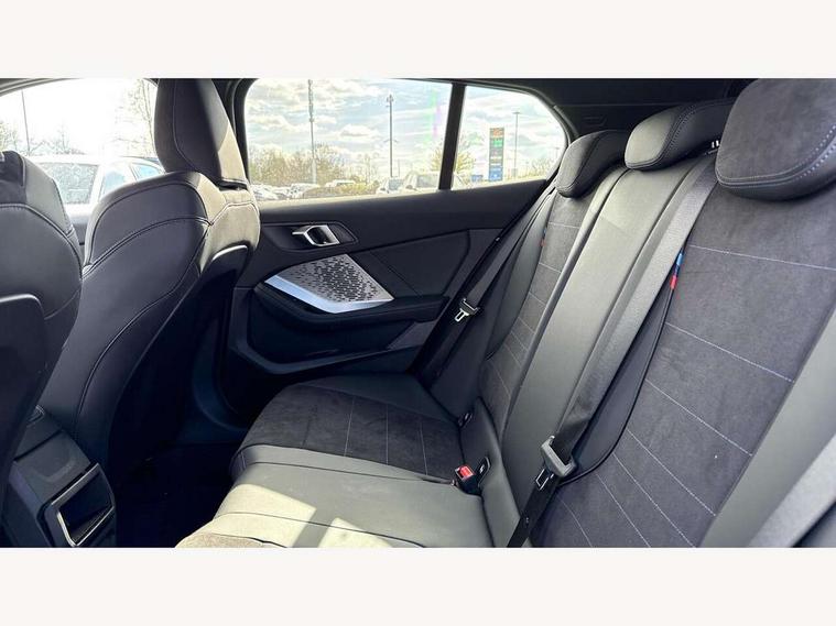 Active guard plus, Attentiveness assist, Bluetooth / WiFi interface for wireless connection of mobile terminal devices and audio streaming, BMW ConnectedDrive online services, BMW Live cockpit plus, BMW Teleservices, Check Control warning system for monitoring of lights and door/luggage compartment open warning, Eco pro mode, Electric power steering with Servotronic steering optimised at all speed ranges, Evasion assistant, Flat airvents in instrument panel with adjustable slats, Front and rear parking sensors, Front axle single joint with specific axle kinematics to minimise drive influences on steering + provide increased rigidity agile driving behaviour, Gearshift time display in manual mode, Integrated owners handbook, Left turn warning with brake function, My modes (Personal / Efficient / Sport), Oil sensor for level and grade, On board computer, Optimum shift indicator, Park assist including reversing assistant, lateral parking aid and reversing assist camera, Personal e-SIM, Personal Profile, Pull away assistant, Rigidly mounted rear subframe - Multi link construction with separate spring / damper configuration and excellent driving characteristics, Speed limit Info including no-overtaking indicator, Speed limiter, 49 litre fuel tank, Aluminium lightweight construction, Anti roll bar front and rear, Balancer shaft, Double VANOS twin scroll turbocharging system, Drive Performance Control, Electronic differential lock, Electronic selector lever, High precision injection, M Adaptive suspension, Petrol Particulate Filter, Steptronic transmission with double clutch, Twin tube gas filled shock absorbers with degressive characteristic curve, VALVETRONIC engine management, DAB Digital radio, Auto dimming rear view mirror, Automatic windscreen wipers and automatic headlight, Body colour door handles, Body colour roof trims, Chrome 'M' logo side designation, Chrome exhaust twin tailpipes round 90mm in left, Chrome kidney grille frame with Satin Aluminium struts, Direction indicator side lights in exterior mirrors, Electrically adjustable exterior mirror with mirror adjustment switch on drivers armrest and aspheric on driver side, convex on passenger side, Exterior M sport design elements, Fading support, Folding side mirrors with auto dimming/folding wing mirrors with auto dimming, Follow me home headlights, Front and rear bumper system with replaceable deformation elements, Front and rear electric windows with open and close fingertip control, anti trap facility and comfort closing, Front bumper panel with M specific design in vehicle colour with inserts in black high gloss, Front door sill finishers in black plastic with M designation in metallic look, Green tinted heat protection glazing, Heated rear window, High gloss black exterior mirrors, High gloss shadowline window frame, Recess cover mirror frames and B/C pillar embelisher trim, High level third brake light, Integrated front windscreen with washer jets, LED daytime running lights, LED eyebrow turn indicators, LED front fog lights, LED Headlights, Lightweight engineering, Matt black air guide grilles, Matt black wheel arch trim, Model badge on tailgate right, Nearside reverse light in rear light cluster, Preparation for high beam assistant, Rain sensor, Rear bumper panel with M-specific design in vehicle colour with inserts in black high gloss, Rear fog lights, Rear side wing doors, Rear window wiper, Shark fin antenna, Side sill covers with M specific design in body colour, Trailer stabilisation logic, Visible VIN plate, Welcome lighting, 12V power socket in front centre console with blanking plug, 3 rear seat head restraints, 3 seat bench in 2nd row, 3 spoke sports leather steering wheel with black leather and stitching, pearl chrome decorative finish, specific M Badge, Anthracite front and rear floor mats, Anthracite headlining, Black boot net with lashing eyes, Cargo function on 2nd seat row, Child seat ISOFIX attachment for two outer rear seats and front passenger seat with anchorage points, Conditioned based service, Driver and front passenger backrest net on rear, Driver and front passenger seat heating, Driver side folding compartment in instrument panel, Dual zone automatic air conditioning with extended contents, Folding rear clothes hook, Footrest and pedals in black plastic, Four grab handles integrated in roof lining, Front and rear door pockets with bottle holders, Front and rear side armrest integrated into door trim, Front armrest with storage compartment, Gearshift paddles on steering wheel, Glove compartment, Height adjustable front head restraints, Luggage compartment for bag hooks on left and right, foldable luggage compartment liner and four lashing eyelets, Manual adjust steering wheel, Multi-function controls for steering wheel, Rear seat backrest with manual 60:40 split folding with 3 top tether clips integrated on rear of seat panels, Single front passenger seat, Storage compartment in centre console, Storage compartment in luggage compartment, Stowage of the parcel shelf in luggage compartment trim, Sun visors with vanity mirrors and insert tab, Two front centre console cupholders, Type C two USB ports in rear centre console, Upper retaining strap integrated into backrest rear panels, Connected pack professional - 1 Series, Interior lights pack - 1 Series, M Sport exterior styling aerodynamics pack - 1 Series, 2 tone horn, 3 point seatbelts on all seats, front pyrotechnic belt tensioners, stopper and belt force limiters, rear coded belt buckles, Airbags - Front driver/passenger, front and rear curtain head protection, front side, manual deactivation of front passenger airbag, Anti lock braking system (ABS) with brake assist, BMW emergency call, Brake drying, Braking readiness, Child proof locking system in rear door, Comfort modes, Cornering brake control, Crash sensor activating of airbags, Unlocking doors, hazard warning lights, interior light, safety battery terminal, Driver and front passenger seat bel