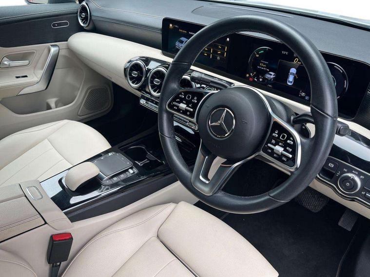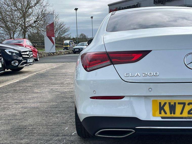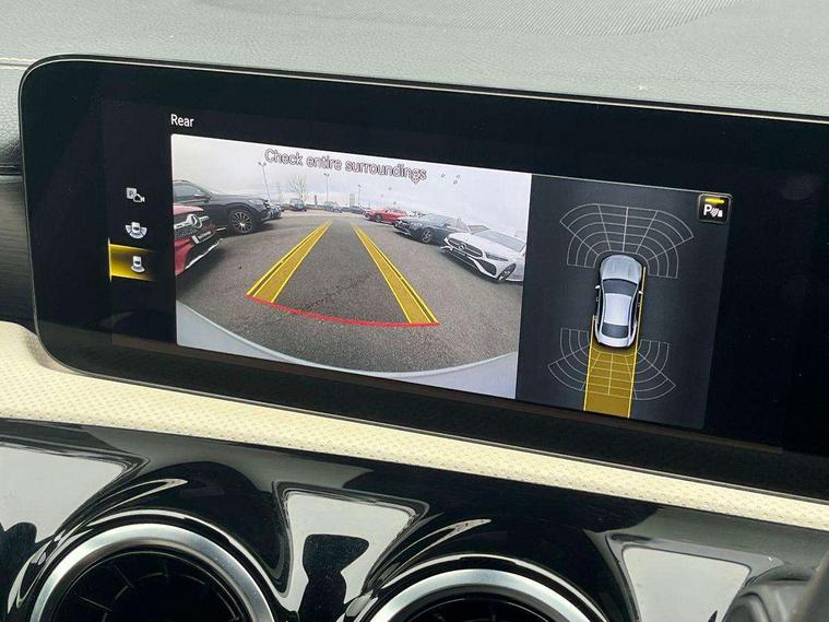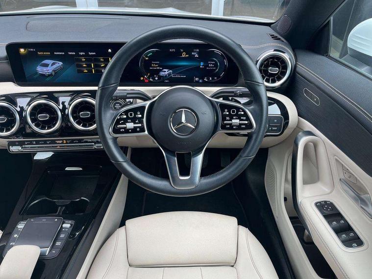 10.25 inch Instrument display with digital cockpit, 10.25 inch touchscreen central media display, Active lane keeping assist, Attention assist - Monitors steering behaviour and long journey fatigue, Bluetooth connection, Car wash mode, Cruise control with limiter, Direct steer system with speed sensitive power steering, DYNAMIC SELECT with a choice of driving modes (ECO, Comfort, Sport and Individual), ECO start/stop function, Fluid level warning indicator for fuel, oil, coolant and washer fluid, Hard-disk navigation, Hey Mercedes Voice activation, Lamp failure indicator, Mercedes me connect including emergency call system, accident recovery, breakdown management and maintenance, Mercedes me remote services, Outside temperature gauge, Owners manual and service booklet in English, Pre-installation of private car share, Preinstallation for Mercedes Benz link, Radio aerial integrated into front and rear windshields, Service indicator (ASSYST), Smartphone integration with Apple CarPlay and Android auto, Speed limit assist, Trip computer in multifunction display with current consumption indicator, Lowered comfort suspension, Rear axle multi-link, DAB digital radio tuner, MBUX multimedia system, Mercedes Benz sound system (100 W) with 6 speakers, USB (type C) ports (2) in stowage compartment and 1 in front of centre console, Adaptive brake lights, AMG bodystyling side skirts, Body colour bumpers, Body colour door handles, Chrome beltline strips, Diamond radiator grille pins in chrome, Electric windows, Electrically adjustable and heated door mirrors with integrated LED indicators, Exhaust system with 2 Visible tailpipe trim elements and rear apron with trim in chrome, Headlamp assist automatic headlamp activation, Heated glass rear windscreen + timer control, High level LED third brake light, Interior mirror with black reading lamps and frameless, LED high performance headlamps with integrated LED daytime running lights, LED tail lamp, Privacy glass with dark tinting on rear side windows and rear window, Progressive body-styling - Front apron with trim strip in chrome, visible tailpipe trim elements and rear apron with trim strip in chrome, Rain sensing windscreen wipers with two sensitivity settings, Rear boot, Rear fog lamp, Rear side wing doors, Variable front intermittent wipers, Window line trim strip in chrome, 3 seat bench in 2nd row, 40:20:40 split folding rear seats with backrest, Air conditioning - Two zone thermotronic luxury automatic climate control with display, Air vents with surround in silver chrome, Artico man-made leather upholstery, Automatic child seat recognition sensor, Black roof lining, Brushed stainless steel sports pedals with rubber studs, Comfort seats, Front centre armrest with stowage, Front head restraints, Heated front seats, Illuminated glove compartment stowage, Leather multifunction sports steering wheel with black topstitching and bezel in silver chrome, Luggage net on driver/front passenger seat backrest, Manually adjustable front seats, Manually height and reach adjustable steering column, Rear head restraints, Single front passenger seat, Steering wheel gearshift paddles, Stowage compartment in centre console with retractable cover, Sunvisors with illuminated vanity mirrors, Touchpad on center console, Twin front cupholders, Two outer rear seat isofix and top tether child seat fixing points, Velour floor mats, Light and sight pack - CLA, Mirror pack - CLA, Parking package - CLA, Seat comfort pack - CLA, Active bonnet pedestrain safety measure which detects an impact and raises bonnet by 65mm, Active brake assist includes forward collision warning system with autonomous braking, Adaptive brake assist with hold function and hill start assist, Anti lock braking system (ABS) with brake assist, Black seat belts, Bonnet with power domes, Brake pad wear warning indicator, Childproof locks manually operated for rear doors and electrically operated for rear power windows, Crash responsive emergency lighting, Driver and front passenger head and sidebags, Driver and front passenger windowbags, Drivers knee airbag, Dual stage driver and front passenger airbags, Electric parking brake, Electronic stability programme with acceleration skid control, ESP curve dynamic assist, Front and rear seatbelt reminder, Front passenger seat occupancy sensor, Three point rear seat belts, Tyre pressure monitoring system, Warning triangle and first aid kit, Guard 360 degree guard vehicle protection system with immobiliser and interior protection, Keyless Go starting function, Remote central locking and crash sensor with emergency opening function, Black open-pore linden wood trim, 18" multi-spoke himalayas grey painted light alloy wheels with high sheen rim finish, Sport tyres, Tirefit tyre sealant kit,