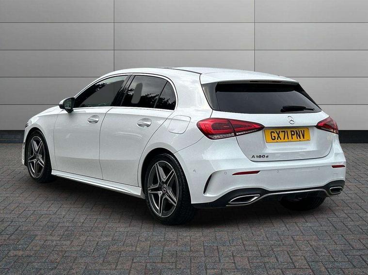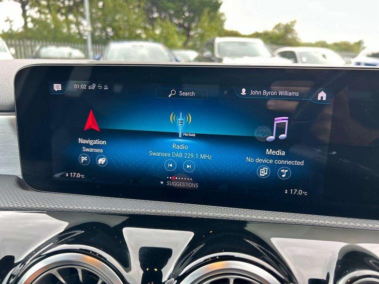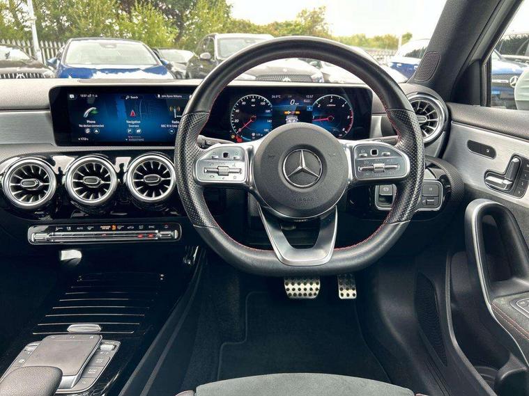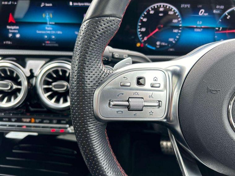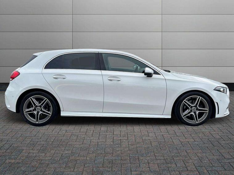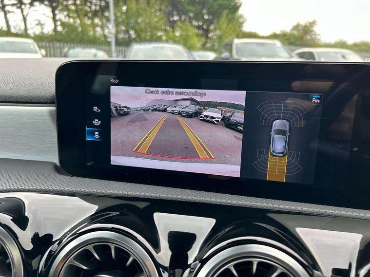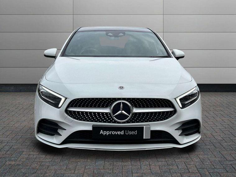 Ultrasonic sensors positioned in the front and rear bumpers, 10.25" Digital instrument cluster display screen, 10.25" media display, 180 degree rear view camera with parking guidelines, Active parking assist with visual and audible warning of detected obstacles, Attention assist, Brake pad wear indicator warning light, Car wash mode, Direct steering, Dual bluetooth interfaces, DYNAMIC SELECT with a choice of driving modes (ECO, Comfort, Sport and Individual), ECO start/stop function, Fluid level warning indicator for fuel, oil, coolant and washer fluid, Hard-disk navigation, Hey Mercedes Voice activation, Lamp failure indicator, MBUX augmented reality for navigation, Mercedes me connect including emergency call system, accident recovery, breakdown management and maintenance, Mercedes me remote services, Outside temperature gauge, Owners manual in English, Pre-installation for car sharing, Preinstallation for Mercedes Benz link, Service indicator (ASSYST), Smartphone integration with Apple CarPlay and Android auto, Traffic sign assist, Trip computer, Wireless charging, Lowered comfort suspension, Rear axle torsion beam, 10 speakers, 2 USB ports (type C) in rear stowage compartment and one in front of center console, DAB Digital radio, MBUX multimedia system with DAB digital radio and touchpad including satellite navigation, Mercedes-Benz advanced sound system - 225W, 4 Electric Front and Rear windows, Adaptive brake lights, AMG bodystyling - Front apron with splitter in chrome, rear apron with chrome trim and chrome visible trim elements in tailpipe, Black weather strip, Body colour bumpers, Body colour door handles, Body colour side skirt, Body coloured door mirrors, Chrome beltline trim, Diamond radiator grille with chrome pins and silver louvre + chrome insert, Electric adjustable and heated door mirrors with integrated LED side indicators, Exhaust system - Twin visible tailpipes in polished stainless steel, Headlamp assist automatic headlamp activation, Heated glass rear windscreen + timer control, LED high performance headlamps with integrated LED daytime running lights, LED tail lamp, LED third brake light, Multibeam LED with adaptive highbeam assist plus, Panoramic sliding sunroof, Privacy glass, Radio aerial, Rain sensing windscreen wipers with two sensitivity settings, Rear fog lights, Rear wiper, Window line trim strip in chrome, 3 Spoke flat bottom leather multi function steering wheel with perforated leather in grip area, 40:20:40 split folding rear seats, Artico man-made leather/Microfibre Dinamica upholstery with red contrast stitching, Auto Mercedes-Benz child seat recognition sensor, Black air vents with surround in silver chrome, Black roof lining, Brushed stainless steel sports pedals with rubber studs, Controller on centre console with chrome surround, Electrically adjustable front memory seats including lumbar support, Floor mats with stitched edging and AMG lettering, Front centre armrest with storage compartment, Front seat backs luggage nets, Front seat cushion length adjustment, Galvanished gear shift paddles on steering wheel, Heated front seats, Height/reach adjustable steering column, Illuminated front door sills with changeable cover, Interior lighting - 64 colour Ambient lighting, Interior mirror with reading lamps in black and frameless, ISOFIX and top tether child seat fixing points in two outer rear seats, Rear armrest with 2 cupholders, Rear head restraints, Seat occupancy sensor for front passenger seat, Sports seats with integrated headrests, Stowage compartment in centre console with retractable cover, Sunvisors with illuminated vanity mirrors, Touchpad on center console, Twin front cupholders, Two zone thermotronic luxury automatic climate control, Light and sight pack - A Class, Mirror package - A Class, Seat comfort pack - A Class, 3 rear 3 point seatbelts, ABS with Brake Assist, Active bonnet, Adaptive brake assist with hold function and hill start assist, Black seatbelts, Childproof locks manually operated for rear doors and electrically operated for rear power windows, Crash responsive emergency lighting, Driver and passenger head and side airbags, Drivers knee airbag, Dual stage driver/passenger airbags, Electronic parking brake, ESP curve dynamic assist, ESP with ASR, Front and rear seatbelt reminder, Front brake callipers with Mercedes Benz lettering, Tyre pressure monitoring system, Warning triangle and first aid kit, Window airbags, Alarm system/interior protection/immobiliser, Keyless entry lock/unlock, Keyless Go, Remote central locking and crash sensor with emergency opening function, Urban guard vehicle protection system with immobiliser and interior protection, Light aluminium with longitudinal grain interior trim, 18" AMG 5 twin spoke light alloy wheels in titanium grey with highsheen finish, Summer tyres, Tirefit sealant kit,