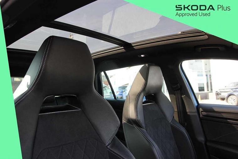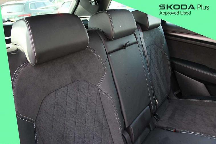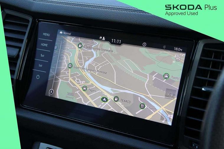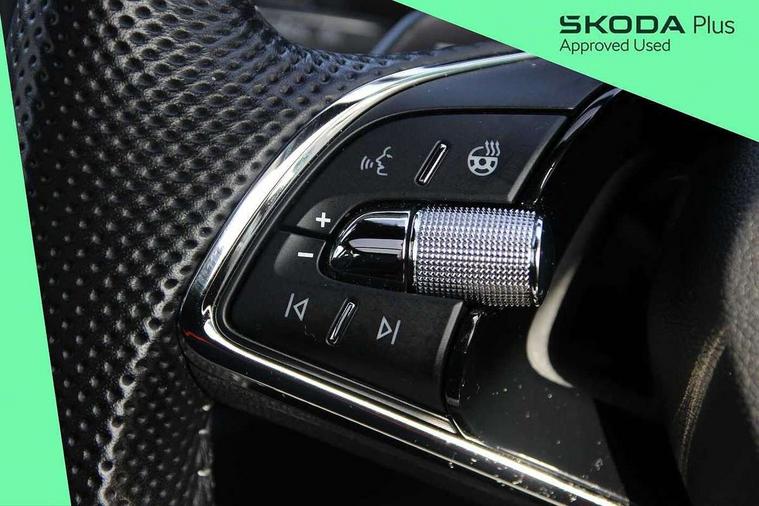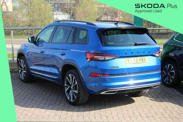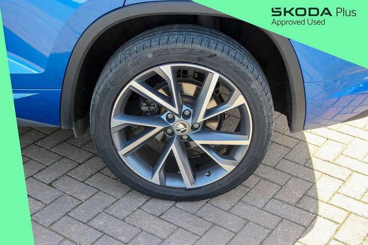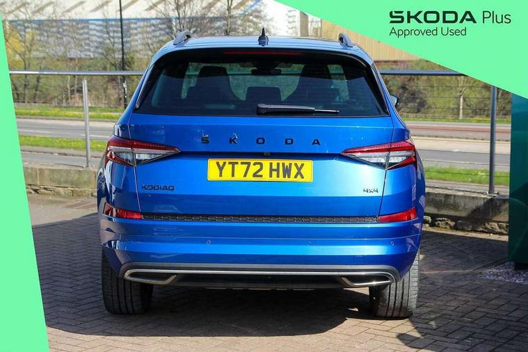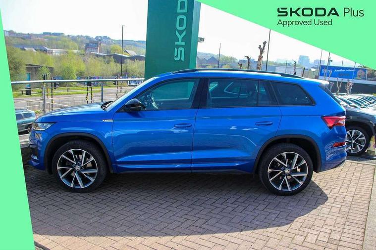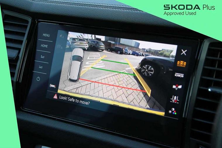 Bluetooth system, Columbus satellite navigation with 9.2" touchscreen, integrated Wi-Fi, web radio, Digital voice enhancement, E-call, ECO Stop/start function, Exterior temperature indicator, Progressive steering, Rear view camera, Smartlink wireless for apple carplay and wired for android auto, Speed limiter, Tailgate unlocking from outside, USB C Port x 2 in front centre console, Wireless charging, 8 Speakers, DAB Digital radio, Aero front windscreen wipers with intermittent function, Aero rear window wiper, Auto dimming rear view mirror, Black roof rails, Black sports styling including front grille and window surrounds, Black wheel arch surrounds, Body colour bumpers, Body colour door handles, Electric adjustable/heated/folding door mirrors, driver side auto dimming with boarding sports and memory function, Electric front and rear windows, Extended rear spoiler with finlets in gloss black, Front fog lights, Full LED matrix headlights with AFS (adaptive front light system), cornering function and AWL (all weather lighting system), Gloss black door mirrors, Headlight washers, Heated rear window, Invisible tailpipe, LED daytime running lights, LED rear fog light, LED third brake light in rear spoiler, Light assistant (coming/leaving home/tunnel light), Off-road style lower front bumper element, Privacy glass, Rain and light sensors, Rear diffuser, Rear LED lights (high functionality) with welcome effect and dynamic indicators, Rear side wing doors, Safety reflectors on front and rear doors, Sportline badge on front fender, Sports front and rear bumpers including lower rear chrome strip, Tailgate lettering in Black, Window control switches with black trim, Without engine designation, 12V socket in boot, 2 rails with 2 hooks, 2 seat bench in 3rd row, 3 seat bench in 2nd row, 4 foldable roof handles with rear coat hooks, 60:40 foldable rear seat with sliding adjustment and backrest angle adjustment, Aluminium pedals, Black roof headlining, Bottle holders in door panel in the 1.5 litre front and 1 litre rear, Cargo storage compartments, Chrome headlight control button, Chrome interior door handles, Coat hooks on B pillar, Covered storage compartment on driver side, Front centre armrest with storage compartment, cup holder and 12V socket, Front courtesy lights, Gear shift lever with chrome frame and black gloss insert, Grey stitching in front and rear armrests and door armrests + door inserts, Height adjustable front headrests, Illuminated and cooled glovebox, Illuminated luggage compartment, Isofix child seat fittings in outer rear seats with top tether, Manually adjustable steering column, Microsuede door panels, Net programme in boot (1x horizontal Net, 2x vertical Nets), Overhead glasses storage compartment, Pollen filter, Rear centre armrest with cupholders, Single front passenger seat, Sliding trunk cover, Small Bags on the inner sides of the front backrests, Sports seats, Sunvisors with illuminated vanity mirrors, Three rear height adjustable headrests, Ticket holder on A Pillar, Umbrella in door panel, Variable boot floor, LED Interior light pack - Kodiaq, Auto door release and activation of warning lights in the event of an accident, Child locks on rear doors, Driver and front passenger airbag with knee airbag and front passenger airbag deactivation, Electronic parking brake with hill start assist, Emergency rear braking signal, ESC (incl. ABS+MSR+ASR+EDS+HBA+DSR+RBS+MKB), Front assist with autonomous emergency braking, Front side airbags with curtain airbags, Fuel cut off safety device, Height adjustable front 3 point seatbelts + pretensioners, Hill hold control, Rear disc brakes, Safety vest holder in door, Seat belt reminder for all seats, Three point rear seat belts, Two tone horn, Tyre pressure monitor, Alarm with interior monitoring and tilt sensor with safe function, Anti-theft wheel bolts, Immobiliser, Keyless entry and start system (KESSY), Remote central locking with 2 keys, Black air vent surround, Carbon finish dashboard and door inserts, Grey stitching in dashboard, 20" Vega Anthracite alloy wheels, Temporary spare wheel (space saver),