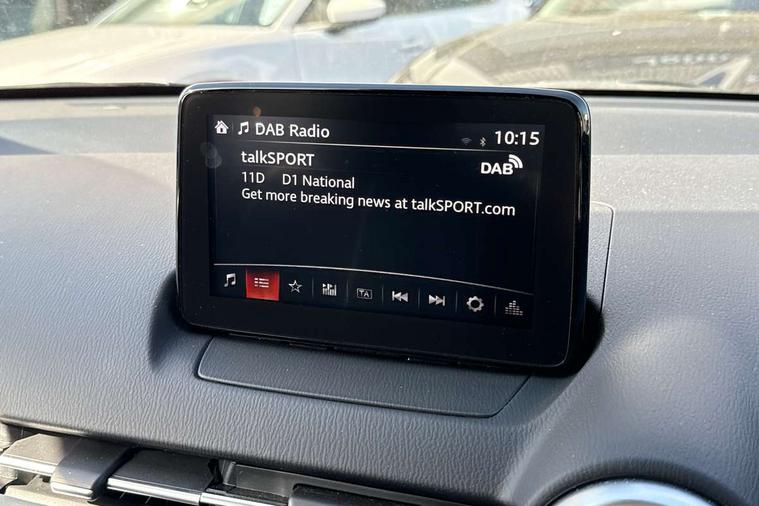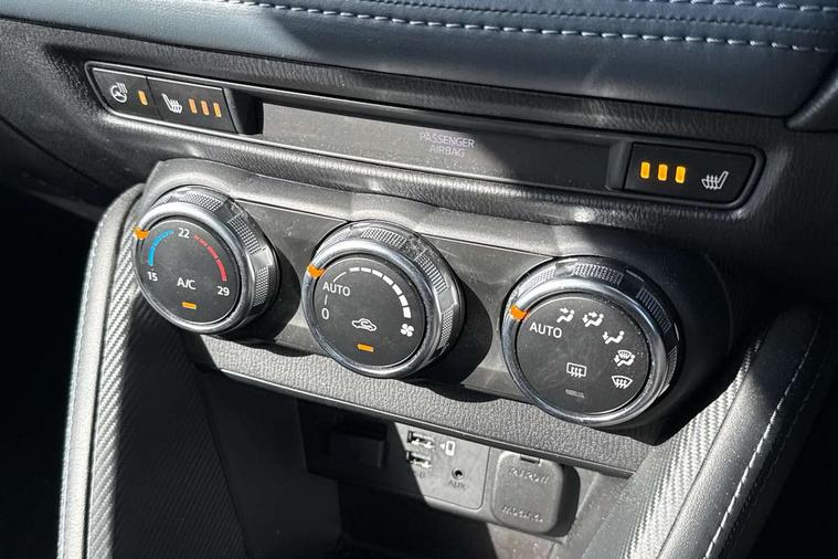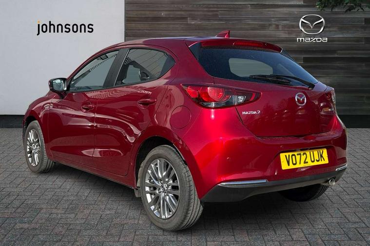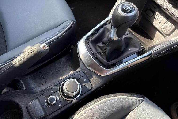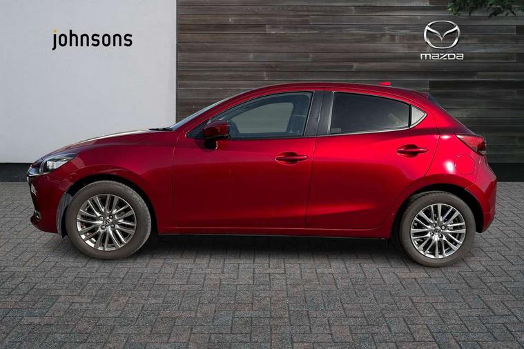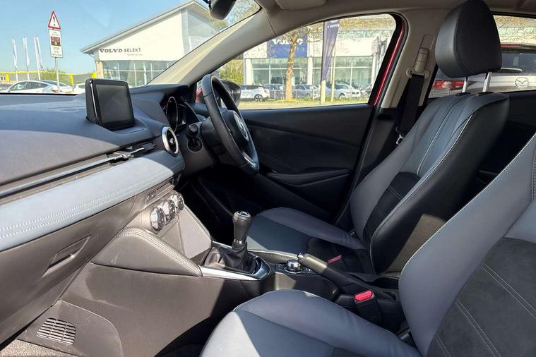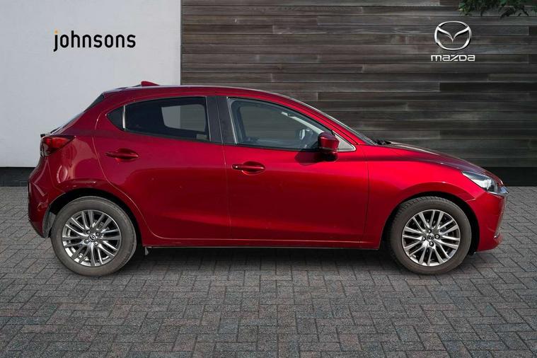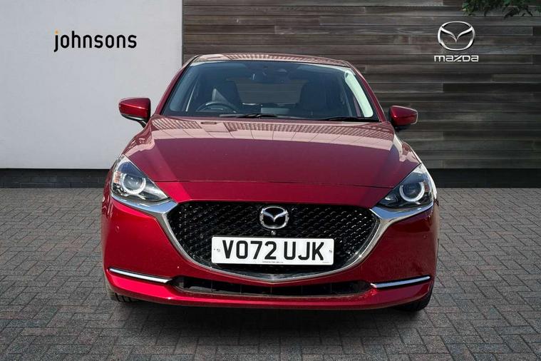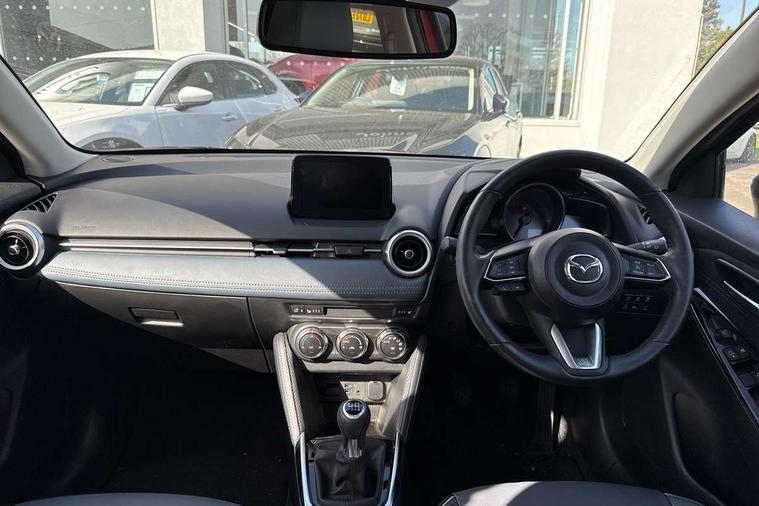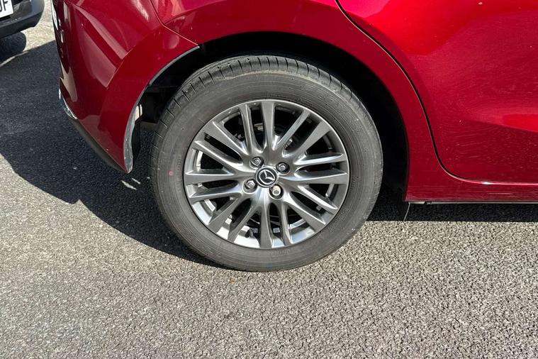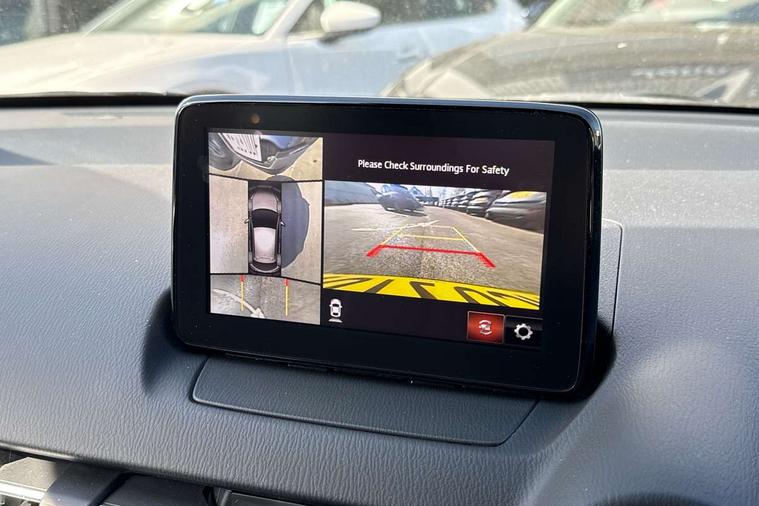 360 View Monitor, Adjustable speed limiter, Analogue rev counter, Blind spot monitoring with rear cross traffic alert, Cruise control, Digital instrument cluster, Digital speed display meter, Driver attention alert system, E-call, Emergency stop signalling system, Engine start/stop button, Front and rear parking sensors, Head up display - Colour active driving display, Integrated bluetooth, Lane departure warning system, Lane keep assist, Mazda connect with 8" colour touch screen, Navigation system, PAS, Service indicator, Trip computer, Wireless Apple CarPlay and wired Android Auto, i-stop, AM/FM/DAB radio with 6 speakers with USB and AUX inputs, Multimedia Commander including separate volume dial, Steering wheel mounted audio/bluetooth controls, Adaptive LED Headlights, Auto dimming rear view mirror, Auto headlight levelling, Body colour door mirrors, Body coloured front bumper with bright lower bezel, Body coloured rear bumper with bright lower mouldings, Chrome exhaust tailpipes, Chrome finish signature wing on front grille, Chrome front lower bezel, Chrome rear lower bezel, Coming/leaving home lighting function, Dusk sensing headlights, Electric adjustable/heated/folding door mirrors, Electric front/rear windows with one touch auto up/down for driver's window, Gloss black front grille, LED indicator lights, LED third brake light, Privacy glass, Rain sensing front wipers with adjustable sensitivity and speed, Rear side wing doors, Rear wiper, Shark fin antenna, Signature LED daytime running lights, 3 seat bench in 2nd row, 60/40 split rear seats, Climate control air conditioning, Driver, Front passenger and two rear grab handles with coathooks, Drivers seat manual slide recline and height adjustment, Drivers/front passengers covered vanity mirrors and drivers ticket holder, Folding rear seats, Front centre storage with two cupholders, Front head restraints, Front passenger and driver door pockets, Front passenger seat manual slide, recline and height adjust, Front passenger seatback pockets, Gear shift indicator, Glovebox, Heated front seats with 3 stage setting, Heated leather steering wheel, Interior courtesy light with integrated spotlight, ISOFIX child seat anchorage points attached on outer rear seats, Leather gear knob, Leather handbrake, Leather upholstery with black granlux inserts, Luggage compartment light, Satin silver dials, Single front passenger seat, Three height adjustable rear head restraints, Tilt/telescopic adjustable steering wheel, 2x3 point front seatbelts with pre-tensioners, 3 point seatbelts on all rear seats, Anti-lock braking system (ABS), Collision mitigation braking system, Dynamic stability control + Traction control, ESP, Front and rear curtain airbags, Front driver, passenger and rear seat seatbelt warning, Front dual stage driver and single stage front passenger airbags, Front side airbags, Front smart city brake support, G-Vectoring control plus, Hill launch assist, Manual child lock in rear doors, Passenger airbag cut-off switch, Rear smart city brake support, Tyre pressure monitoring system, Deadlocking system, Immobiliser, Power door locks, Remote central locking, Smart keyless entry, Thatcham accredited alarm and immobiliser, Blue/grey soft touch dashboard, 16" Bright finish alloy wheels, Emergency tyre repair kit,