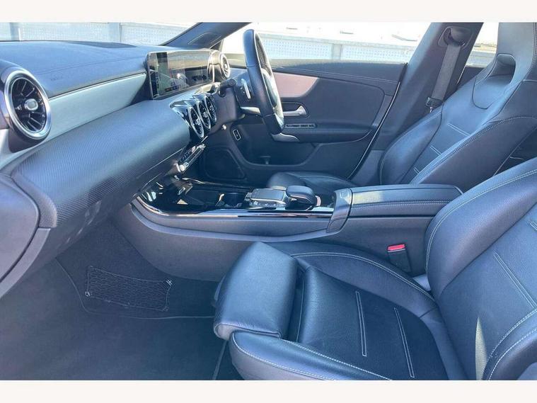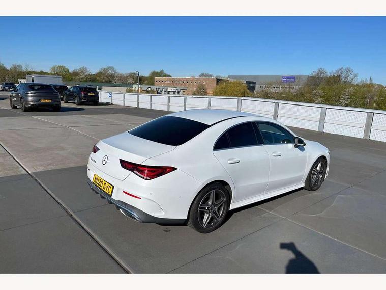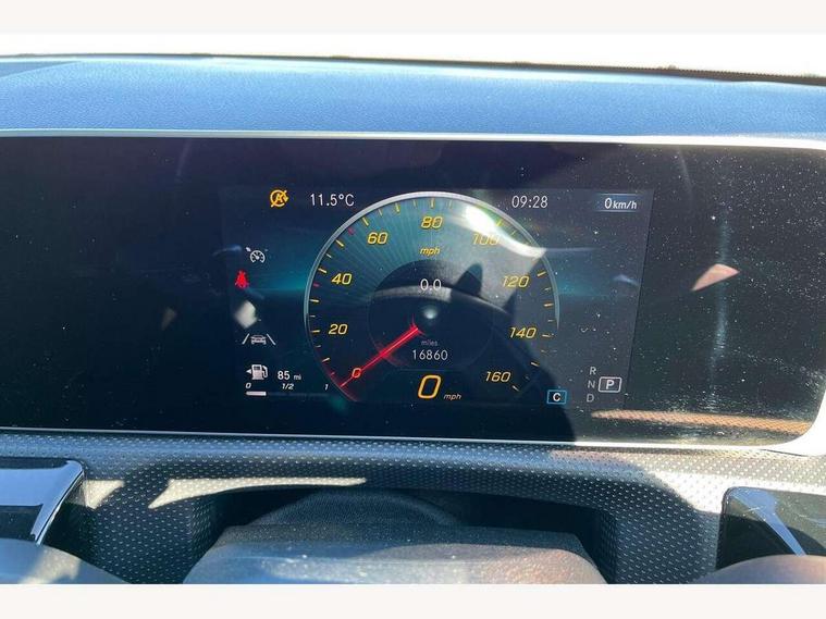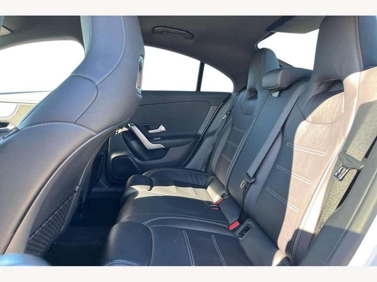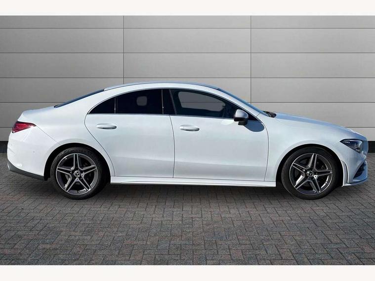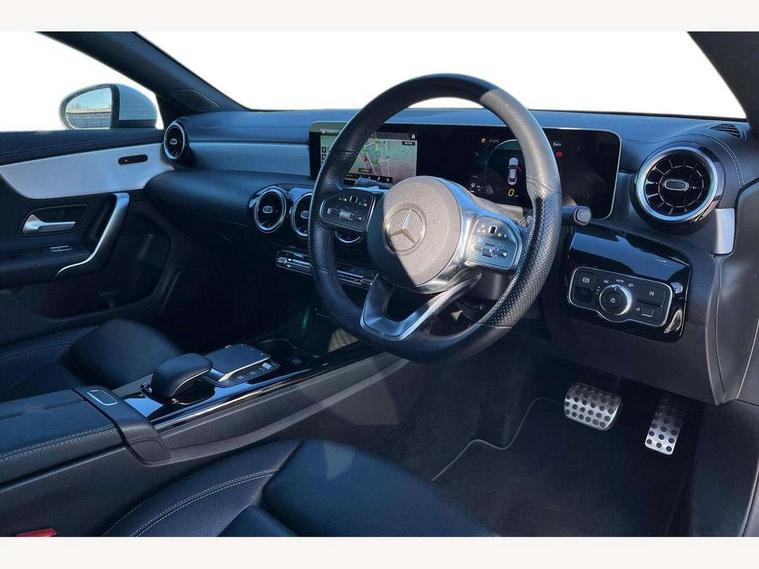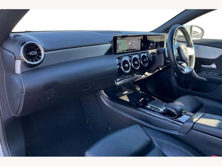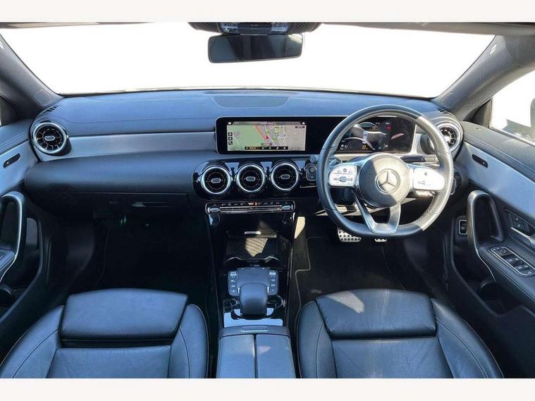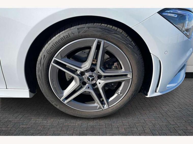 10.25 inch touchscreen central media display, 7 inch Instrument display with digital cockpit, Active lane keeping assist, Attention assist - Monitors steering behaviour and long journey fatigue, Cruise control with limiter, Direct steer system with speed sensitive power steering, Dual bluetooth interfaces, DYNAMIC SELECT with a choice of driving modes (ECO, Comfort, Sport, Sport+ and Individual), ECO start/stop function, Fluid level warning indicator for fuel, oil, coolant and washer fluid, Hard-disk navigation, Hey Mercedes Voice activation, Lamp failure indicator, Mercedes me connect including emergency call system, accident recovery, breakdown management and maintenance, Outside temperature gauge, Owners manual and service booklet in English, Pre-installation for Vehicle Monitoring, Pre-installation for Vehicle Setup, Pre-installation of private car share, Preinstallation for Mercedes Benz link, Radio aerial integrated into front and rear windshields, Service indicator (ASSYST), Smartphone integration with Apple CarPlay and Android auto, Speed limit assist, Trip computer in multifunction display with current consumption indicator, Wireless charging, 7G-DCT 7 speed automatic transmission, Lowered comfort suspension, Rear axle multi-link, Sporty engine sound system, DAB digital radio tuner, MBUX multimedia system with DAB digital radio and touchpad including satellite navigation, Mercedes Benz sound system (100 W) with 6 speakers, USB (type C) ports (2) in stowage compartment and 1 in front of centre console, Adaptive brake lights, AMG body styling with AMG front apron and rear apron and visible exhaust tailpipe in chrome trim elements, AMG bodystyling side skirts, Body colour bumpers, Body colour door handles, Chrome beltline strips, Diamond radiator grille pins in chrome with silver painted louvres and chrome insert, Electric windows, Electrically adjustable and heated door mirrors with integrated LED indicators, Exhaust system with 2 Visible tailpipe trim elements and rear apron with trim in chrome, Headlamp assist automatic headlamp activation, Heated glass rear windscreen + timer control, High level LED third brake light, LED high performance headlamps with integrated LED daytime running lights, LED tail lamp, Privacy glass with dark tinting on rear side windows and rear window, Rain sensing windscreen wipers with two sensitivity settings, Rear fog lamp, Vehicle Monitoring, Vehicle Setup, Window line trim strip in chrome, 3 spoke flattened bottom nappa leather multifunction steering wheel with perforated leather in grip area, 40:20:40 split folding rear seats with backrest, Air conditioning - Two zone thermotronic luxury automatic climate control with display, Air vents with surround in silver chrome, Automatic child seat recognition sensor, Black roof lining, Brushed stainless steel sports pedals with rubber studs, Floor mats with stitched AMG lettering, Front centre armrest with stowage, Front door sills with Mercedes Benz lettering, Front seat cushion length adjustment, Galvanished gear shift paddles on steering wheel, Heated front seats, Illuminated glove compartment stowage, Luggage net on driver/front passenger seat backrest, Manually adjustable front seats, Manually height and reach adjustable steering column, Rear head restraints, Rear interior lamp, Spectacles compartment for driver, Sport seats with fixed head restraints, Stowage compartment in centre console with retractable cover, Sunvisors with illuminated vanity mirrors, Touchpad on center console, Twin front cupholders, Two outer rear seat isofix and top tether child seat fixing points, Light and sight pack - CLA, Mirror pack - CLA, Parking package - CLA, Seat comfort pack - CLA, Active bonnet pedestrain safety measure which detects an impact and raises bonnet by 65mm, Active brake assist includes forward collision warning system with autonomous braking, Adaptive brake assist with hold function and hill start assist, Anti-lock braking system (ABS), Black seat belts, Bonnet with power domes, Brake pad wear warning indicator, Childproof locks manually operated for rear doors and electrically operated for rear power windows, Crash responsive emergency lighting, Driver and front passenger head and sidebags, Driver and front passenger windowbags, Drivers knee airbag, Dual stage driver and front passenger airbags, Electric parking brake, Electronic stability programme with acceleration skid control, ESP curve dynamic assist, Front and rear seatbelt reminder, Front brake callipers with Mercedes Benz lettering, Front passenger seat occupancy sensor, Three point rear seat belts, Tyre pressure monitoring system, Warning triangle and first aid kit, Alarm system with immobiliser and interior protection -Thatcham category 1, Keyless Go starting function, Remote central locking and crash sensor with emergency opening function, Light aluminium with longitudinal grain interior trim, 18" 5 twin spoke design alloy wheels painted in titanium grey with high sheen finish, Summer tyres, Tirefit tyre sealant kit,