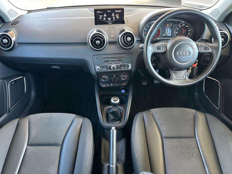 Cruise control, Driver's information system, Electro-mechanical PAS, Low washer fluid indicator, Service interval indicator, Voice control system, Additional SD card reader, Audi music interface, Bluetooth audio streaming, DAB Digital radio, Adaptive brake lights, Body coloured bumpers, Body coloured door mirrors, Electric adjustable door mirrors, Electric front windows, Electric rear windows, Front fog lights, Heat insulating glass, Heated door mirrors, Heated rear windscreen, Polished stainless steel tailpipe, Rear wiper, 12V Accessory socket in centre console, 3 rear seats, 3 spoke leather multifunction sports steering wheel, Adjustable rear head restraints, Cupholders in centre console, Door sills trims with aluminium inlays, Front floor mats, Front head restraints, Front sports seats, Height adjustable front seats, Illuminated glovebox, Isofix attachments on outer rear seats, Jack and tool kit, Leather gear knob, Leather handbrake, Lumbar adjustment for front seats, Rake/reach adjustable steering wheel, Split folding rear seats, Titanium grey cloth headlining, 3x3 point rear seatbelts, ABS/EBD, Brake assist function, Driver and passenger side airbags, Driver/Front Passenger airbags, EDL, ESP with ASR, First aid kit, Front and rear seatbelt reminder, Front passenger airbag deactivation, Head airbags, Height adjustable front seatbelts, Tyre pressure monitor, Warning triangle, Locking wheel bolts, Remote central locking with 2 remote folding keys, Thatcham category 1 alarm + immobiliser, High gloss black air vent sleeves, Tyre repair kit,