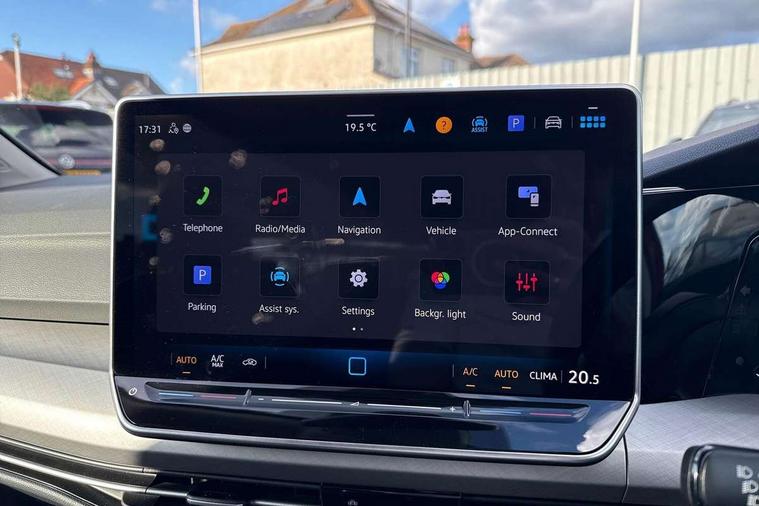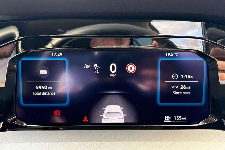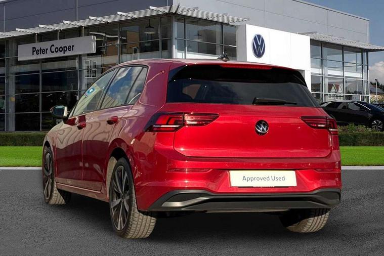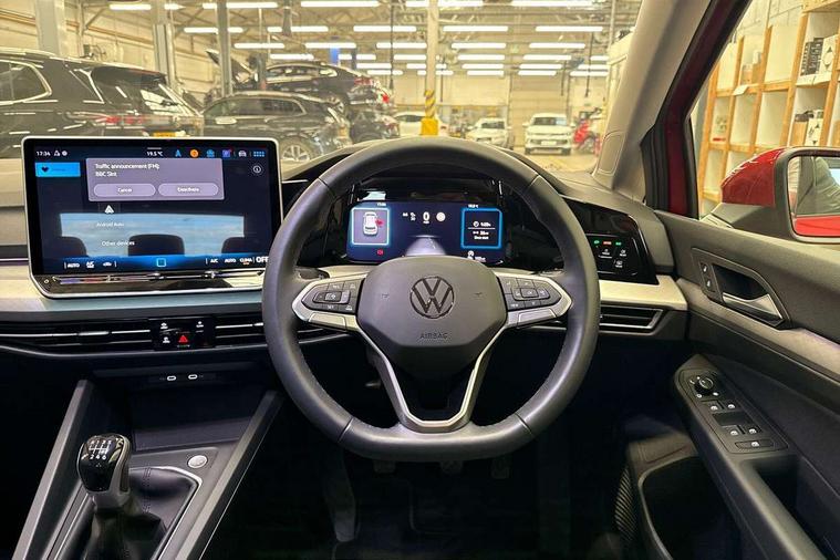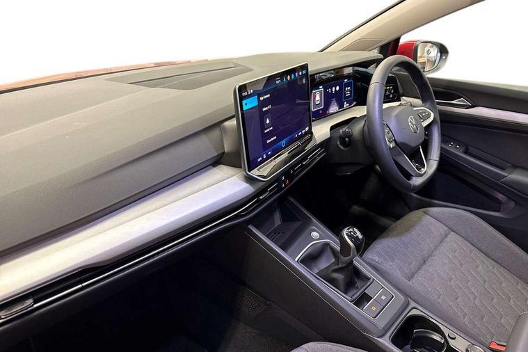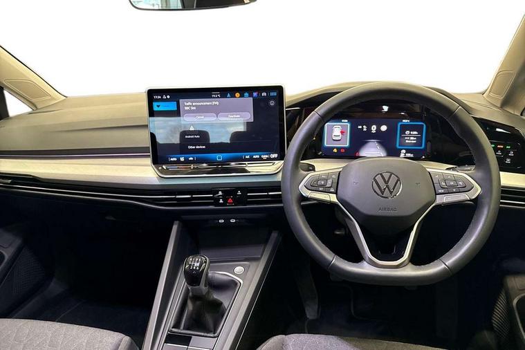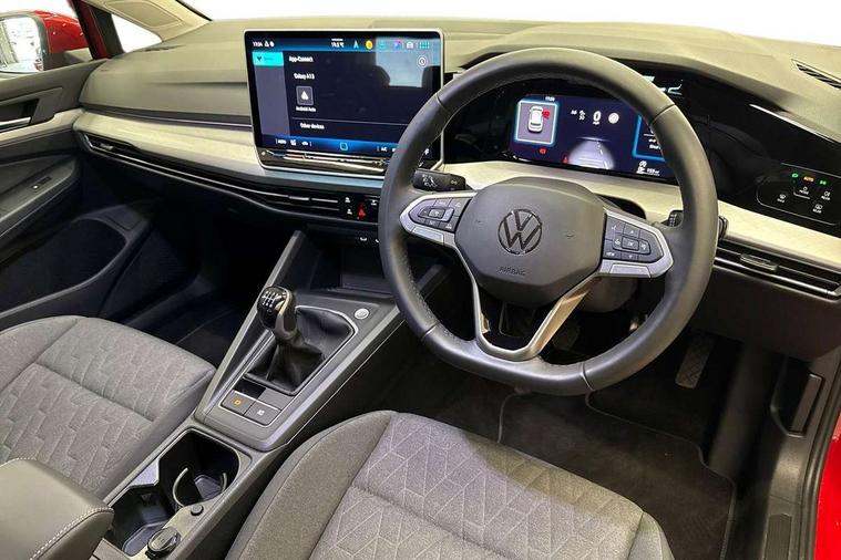 Activated carbon canister, Adaptive cruise control (ACC), Advanced driver attention and drowsiness monitor, Dynamic road sign display, E-Sim card for online connectivity, eCall emergency call system, Multi-color Digital cockpit pro, selection of different info profile possible, Multifunction front facing camera for distance control, Navigation system, Oncoming vehicle braking when turning including swerve support, Preparation for light assist system, Speed limiter, Speedo, rev counter, electronic odometer, trip, service interval display, exterior temperature and fuel gauge, Voice enhancer and voice control, Warning signal and warning light for front and rear seatbelts not fastened, We connect plus preparation, We connect preparation, Wireless app connect, Petrol Particulate Filter, Start-stop system with battery regeneration (recuperation - energy recovery during braking), XDS electronic differential lock for improved traction and handling, 2 USB C ports in front, 2 USB charging sockets on the centre console in the rear charging capacity upto 45W, Comfort telephony + wireless charging, without wireless aerial connection, Digital radio reception (DAB), Diversity antenna for FM reception, Gaming platform via car app, Infotainment system with 12.9" display, Mobile phone interface with inductive charging feature, 3rd brake light, Auto dimming rear view mirror, Auto headlights, Automatic headlamp activation with Coming home and Leaving home feature, Body colour door handles, Body colour door mirrors, Exterior ambient lighting with illuminated door handles, Exterior mirrors convex on the left and aspherical on the right, Front and rear electric windows, Heat insulating windshield made of laminated glass, LED daytime running lights, Rain sensor, Rear exhaust tailpipe, Rear fog light on one side and reversing lights on both sides, Rear side wing doors, Rear tinted glass 65% light absorbing from B pillar backwards, Rear windscreen washer and wiper with interval delay, Remote electrically foldable door mirrors, puddle lights and reverse activated passenger's door mirror, Standard bumpers, Welcome light with surround lighting, 12V socket in front centre console, 12V socket in luggage compartment, 3 rear head restraints, 3 seat bench in 2nd row, Chrome plated radiator grille inserts, air vent surrounds and light switch surrounds, Front centre armrest, Front head restraints, ISOFIX anchors for child seats on outer rear bench seats and on front passanger seat compatible for i-Size, Leather gearshift handle, Luggage compartment lighting, Rear cupholder and loadthough, Single front passenger seat, Soul black instrument panel, Split folding backrest with centre armrest and unsplit rear seat bench, Standard pedal cluster, Storm grey roof lining, Sun visors with illuminated vanity mirrors, Parking and comfort pack - Golf Estate/Hatchback, 3 point height adj front seatbelts + pretensioners, 3 rear three point seatbelts, ABS, Autonomous emergency braking front assist with pedestrian and cyclist monitoring, Child locks on rear doors, Driver and front passenger airbag with front passenger airbag deactivation, Electronic parking brake with auto hold, ESC (Electronic Stability Control), Extended pedestrian protection measures, Rear disc brakes, Two tone horn, Tyre pressure loss indicator, Volkswagen roadside assistance, Alarm with interior protection, Anti theft wheel bolts, Keyless start with SAFE lock, Preparation for alcohol interlock, Nature cross brushed decorative inserts for dashboard and front door panels,