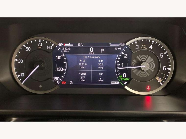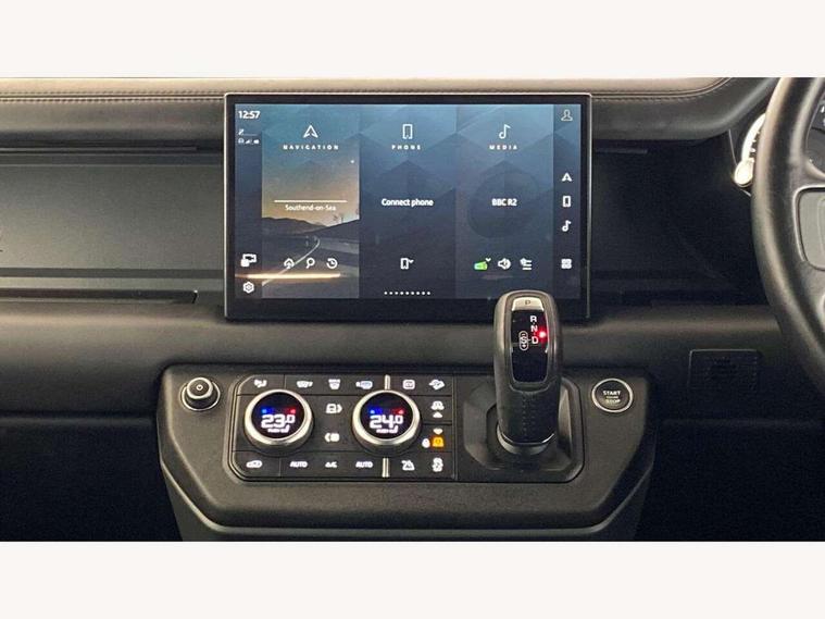 11.4" touchscreen, 360 degree parking aid, 3D Surround Camera with 360 View, 180 Rear View, Front Traffic Detection, Forward Vehicle Guidance, Tow Hitch Assist and clear sight Ground View, Adaptive cruise control, Android Auto, Apple CarPlay, Assisted tailgate with soft close, Blind spot assist, Bluetooth system, Brake pad wear indicator, Clear exit monitor, Connected navigation pro, Driver condition monitor, Electric power assisted steering (EPAS), Interactive driver display, Lane keep assist, Push button start, Rear collision monitor, Rear traffic monitor, Traffic sign recognition with adaptive speed limiter, Trip computer, Wade Sensing, 7 kW onboard charger, 8 speed automatic transmission, AC/DC charging, Adaptive dynamics, All wheel drive system, Electronic air suspension, Home charging cable mode 2 basic, Public charging cable, Twin speed transfer box, DAB Radio (Digital Audio Broadcasting), Meridian 400w sound audio system with 11 speakers and subwoofer, Pivi pro connected, Automatic headlight levelling, Automatic headlights, Black exposed rear recovery eyes, Centre high mounted stop light, ClearSight interior rear view mirror, Electric heated/power fold door mirrors with approach lights and auto dimming driver side, Electric windows with one touch open/close and anti-trap, Follow me home lighting, Front fog lights, Heated rear window with timer, Heated windscreen, LED tail lights, P400e badge, Privacy glass, Puddle lights, Rain sensing windscreen wipers, Rear fog lights, Rear side wing doors, Rear wiper, Side hinged tailgate, Solar attenuating windscreen, Trailer stability assist, X-Dynamic badge, 12V power socket in loadspace, 14 way heated and cooled electric adjustable memory front seats with 4 way manual headrests, 3 seat bench in 2nd row, Alpine lights, Configurable cabin lighting, Durable rubber cabin flooring, Durable rubber loadspace flooring, Electric reach + rake adjustable steering column, Extended leather upgrade, Footwell lights, Front passenger isofix child seat attachment, Heated steering wheel, Loadspace cover, Loadspace Hook, Multifunction steering wheel, Overhead stowage for sunglasses, Premium cabin lighting, Rear headrests, Rear ISOFIX, Rear reading lights, Single front passenger seat, Standard seat configuration, Storage glovebox, Sunvisors with illuminated vanity mirrors, Twin front cupholders with cover, Online pack with data plan - Defender, 5 x 3 point seatbelts, ABS, Brake hold function, Cornering brake control (CBC), Customer configurable autolock, DSC - Dynamic Stability Control, EBD - Electronic brakeforce distribution, Electric parking brake (EPB), Emergency brake assist, Emergency braking, ESP + traction control, Front airbags with passenger seat occupant detector, HDC - Hill descent control, Hill launch assist, Low traction launch, Power operated child locks, Remote for (e-Call, Optimised assistance call, InControl app, Climate, beep and flash and door), RSC - Roll stability control, Seat belt reminder, TPMS (Tyre pressure monitoring system), Alarm, Immobiliser, Intrusion sensor, Keyless entry, Locking wheel nuts,