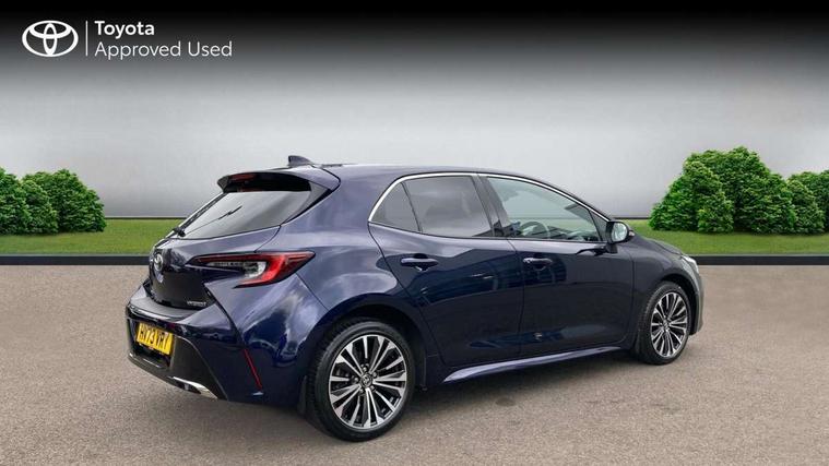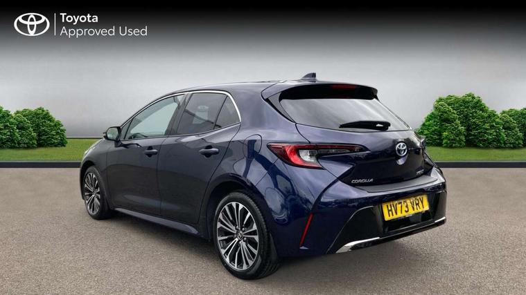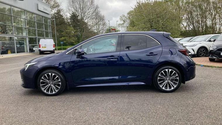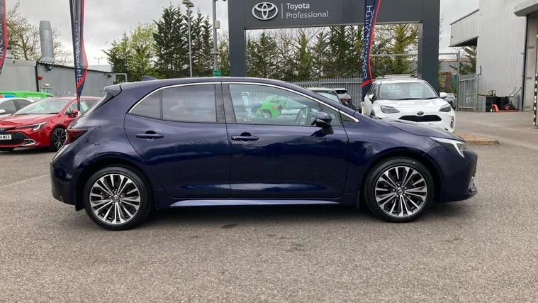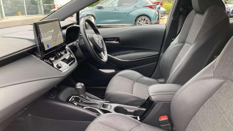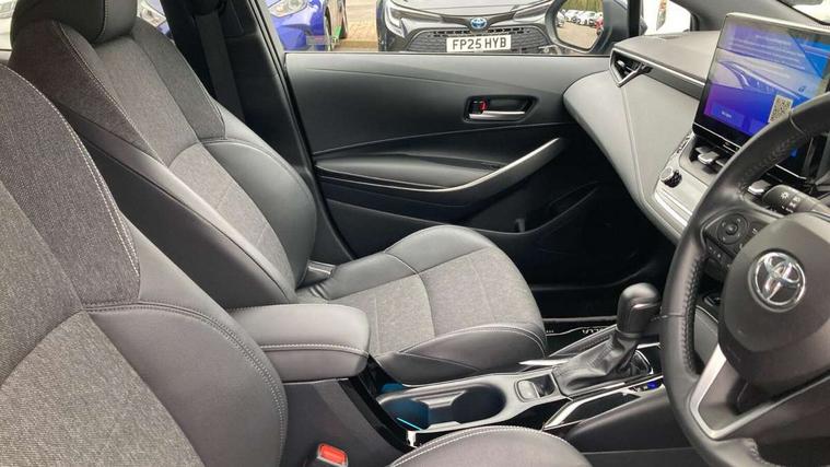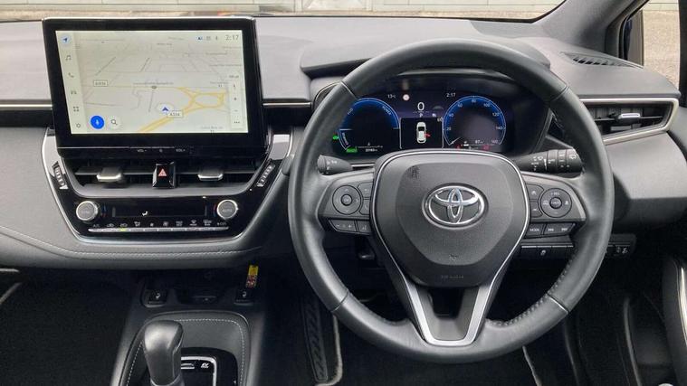 10.5" Multimedia display screen, Attention assist, Bluetooth telephone connectivity, Connected car functionality upgrade, tracker, remote status and e-care, Drive mode select (Eco, Normal), E-call, Electrically assisted power steering, EV drive indicator, Front and rear parking sensors with auto brake, Full Digital 12.3" TFT Digital Combimeter, Key reminder warning, Lane Departure Alert (LDA) switch on steering wheel, Memory on adjustable speed limiter, MyT connected services, Proactive driving assist (PDA), Reversing camera, Smartphone integration with Apple CarPlay and wired android auto, Tailgate, Toyota remote services, Toyota smart connect navigation, Wireless charger, Gasoline particulate filter, Vehicle Stability Control (VSC), 6 speakers, AM/FM radio, DAB Digital radio, Front USB-C in dashboard, Smart voice assist/ Voice recognition, USB and Aux in connectors + 12V front outlet, Anti-jam protection on power windows, Auto up and down function on all power windows, Automatic folding mirrors, Automatic headlights with high beam assist, Black centre and side air vents, Black metallic meshed front grille, Black toyota logo in front, Body coloured bumpers, Body coloured door mirrors, Body coloured front spoiler, Body coloured outside door handles, COROLLA alloy door scuff plates, Electrochromatic mirror, Follow me home headlights, LED daytime running lights, LED dual beam projector headlights, LED front fog lights, LED High mounted stop light, LED multi reflector in headlights, LED rear combi lights with LED lightguide, Manual headlight levelling system, New grille pattern, Noise reduction layer on windscreen, Piano black diffuser, Power adjustable heated door mirrors, Power front windows, Power rear windows, Privacy glass with UV filter, Rain sensing wipers, Rear bumper decoration with chrome plated inserts, Rear side wing doors, Rear under guard with chrome ornament, Rear window defogger, Rear window wiper, Reverse tilting door mirrors, Roof spoiler, Satin chrome insert on front air vents, Satin chrome insert on front door assist grips, Shark fin antenna, Tailgate release with push button, Time adjustment on intermittent wiper, Turning signal integrated indicators in door mirrors, Unique lower skirt, Unique side rocker with black insert, UV-filter on driver and passenger windows, 2 Shopping bag hooks in luggage compartment, 3 rear headrests, 3 seat bench in 2nd row, 3 spoke leather steering wheel with satin insert + gear knob, 4 tie down hooks in luggage compartment, 60/40 split folding rear seat, Adaptive cruise control (ACC) switch on steering wheel, Adjustable speed limiter switch on steering wheel, Audio, multimedia and telephone switches on steering wheel, Black armrest on centre console box, Black gear shift console, Boot light, Centre room light, Driver and front passenger personal light, Driver and passenger assist grip, Driver and passenger sun visor with mirror and light, Dual zone automatic air conditioning with ECO mode switch, Fabric/synthetic leather upholstery, Front and rear cup and bottle holders, Front door pockets, Front head restraints, Front passenger seat, Front sliding synthetic leather armrest, Heated seats, Illuminated entry system in room lamp, ISOFIX seat fixing (2 fixings on rear outer seats), Leather gear shift with satin chrome on gear shift console, Manual height adjustable for driver and front passenger seat, Manually tilt with sliding driver and front passenger seat, Parcel shelf, Passenger seat back pocket, Pollen filter, Power adjustable lumbar support on driver seat, Power window switches with satin chrome inserts, Rear armrest with 2 cupholders, Rear passenger coat hooks (2), Remote air conditioning, Satin chrome inside door handles, Satin chrome surround on heater control panel, Satin chrome surround on speedometer, Sliding armrest on centre console box, Slow opening glovebox with lights, Textile floor mats, Tilt/telescopic steering column, Voice recognition switch on steering wheel, Whiplash Injury Lessening (WIL) feature (active headrest) for seats, White ambient lighting on open tray and front cup holder, Toyota safety sense 3 pack - Corolla, 3x3 point rear seatbelts, Adjustable driver and front passenger seat belt extender to top anchor point, Anti lock braking system + Electronic brake force distribution, Brake assist function, Child locks on rear doors, Downhill Assist Control (DAC), Electronic parking brake, Emergency brake light signal (EBS), Front passenger airbag on/off switch, Front seatbelt reminder, HAC - Hill start assist control, Rear seat belt reminder, Seatbelt pretensioners and force limiters, Supplemental restraint system (SRS) 7 airbags - dual driver, dual side curtain, side impact and driver knee airbags, Traction control, Tyre pressure warning system, Acoustic vehicle alert system (AVAS), Alarm with motion sensor and immobilizer, Power passenger window lock, Remote central locking + deadlocks, Satin chrome dash trim, Soft touch texture on upper dashboard, Stitching on lower dashboard, 17" Black machined face 5 double spoke alloy wheels, Tyre repair kit, Unique wheel finish with red wheel cap,