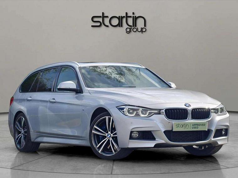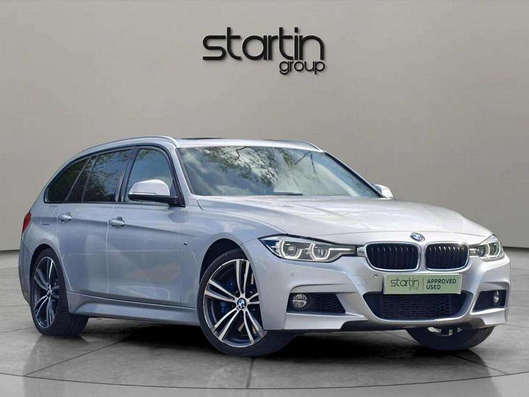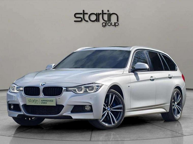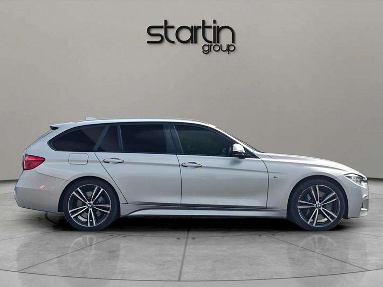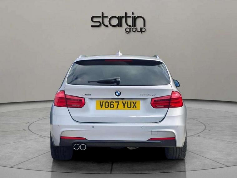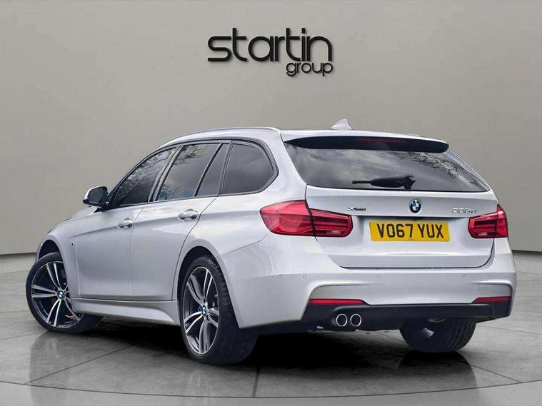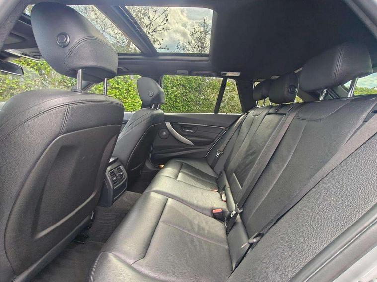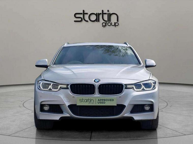 Automatic tailgate operation, BMW Online services, BMW Teleservices, Brake force display, Brake pad wear indicator warning light, Check control system, Digital clock, Door/boot open warning light, Front/rear park distance control, Lights on warning, Oil temperature gauge, On board computer, On board diagnostics, Operation warning of all exterior lights, Outside temperature display, Push button starter, Service interval indicator, Traffic message channel (TMC), Diesel particulate filter, Drive Performance Control, Electronic differential lock, Sports function on gearbox with steering wheel mounted gearshift paddles, BMW professional radio/CD/MP3, CD Changer preparation, DAB Digital radio, 'Guide me home' headlamps, 2 speed adjustable intermittent wipers with wash/wipe function, Auto dimming rear view mirror, Automatic headlight beam throw control, Body colour bumpers, Body colour door handles, Body colour roof mouldings, Chromed finished twin exhaust, Clear indicator lenses, Door sill finishers, Dynamic brake lights, Electric adjustable door mirrors, Electric front and rear windows with one touch/convenient open/close function, Front ornamental grille with black kidney bars and chrome bezel, Green tinted heat insulating glass, Heated rear window with automatic switch off, Heated windscreen washer jets, High gloss shadow line, Independent opening for tailgate window, LED daytime running lights, LED fog lights, M aerodynamic body styling, Pearl chrome door mirrors, Rain sensor + automatic driving lights control, Rear wash/wipe, Shark fin roof aerial, 12V sockets in front centre console and passenger footwell, 2 bag hooks in luggage compartment, 2 x folding cupholders in instrument panel above glovebox, 3 rear seat head restraints, 4 foldable grab handles - rear with clothes hook, 4 lashing points to secure luggage, 40:20:40 split folding rear bench seat, Ambient lighting, Automatic interior light soft on/soft off system, Driver and passenger sunvisors with vanity mirrors + slide cover, Dual zone automatic air conditioning, Foldable boot floor with storage compartment, Folding front centre armrest + storage, Front and rear door armrests, Front and rear velour floor mats, Front door storage bins with bottle holder, Front sports seats with electric side bolster adjustment, Glovebox light, Height adjustable front headrests, Indirect front interior illumination - soft-light function, Individual anthracite headlining, Isofix system on outer rear seats, Leather gear knob, Leather gear selector lever handle, Leather handbrake grip, Lockable glovebox, Luggage compartment lighting, Luggage strap, M sports leather steering wheel, Multi-function controls for steering wheel, Reach + rake adjustable steering column, Rear centre armrest with 2 cupholders, Rear storage compartment in multifunction centre console with sliding cover, Retractable luggage cover, Separation net, Storage compartment in rear doors, Through load system, Toolkit located in luggage compartment, Extended lighting package - 3 Series, Interior lights pack - 3 Series Touring, 3 point inertia reel seatbelts + pre-tensioners on outer rear seats, ABS, Automatic Stability Control (ASC), BMW emergency call, Cornering brake control (CBC), Crash sensor, Driver and passenger airbags, DSC+, Dynamic brake control, Dynamic Traction Control - DTC, Front and rear head airbags, Front passenger airbag deactivation, Front seat side impact airbags, Front seatbelt pretensioners + load limiters, Hill start assist, Rear child proof door locks, Seatbelt warning, Three 3 point rear seatbelts, Twin horns, Tyre pressure monitor, Warning triangle and first aid kit, Automatic drive away locking facility, Central locking fuel filler cap, Centre lock switch, Electronic immobiliser, Key integrated remote control central locking, Remote control alarm, Low rolling resistance tyres,