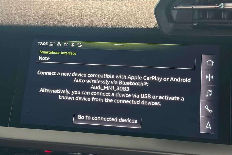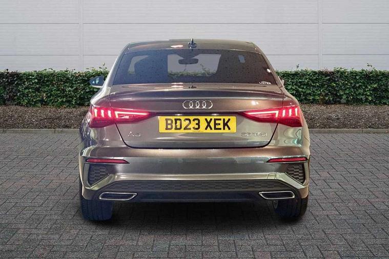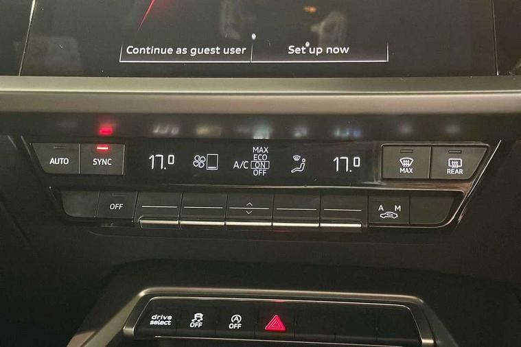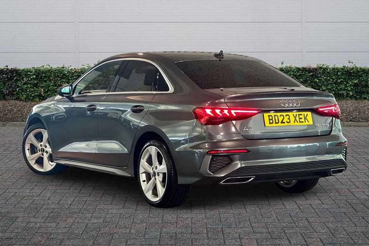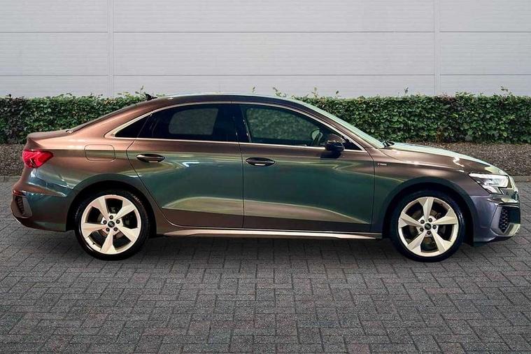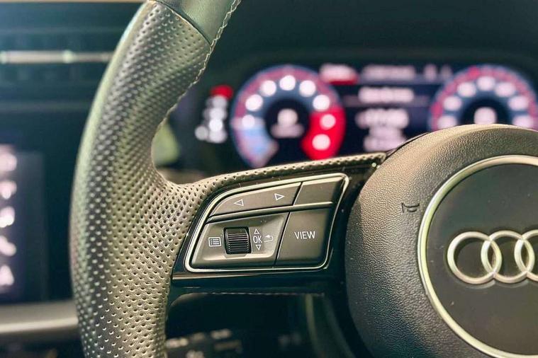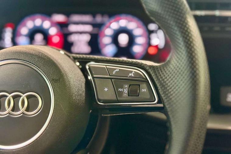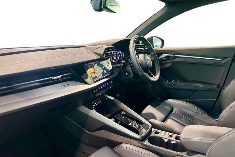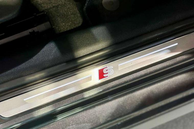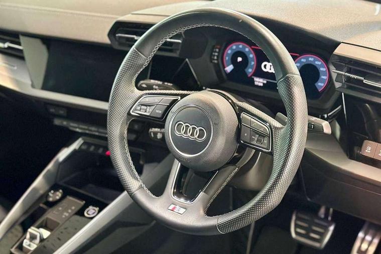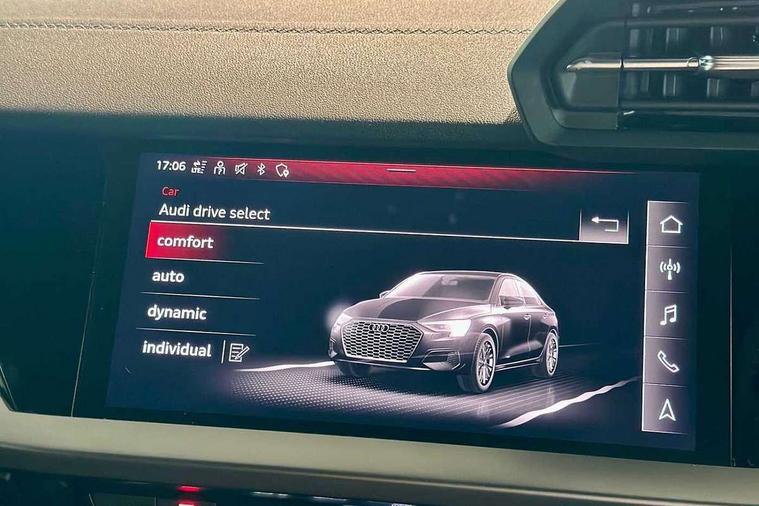 Audi connect emergency call and service, Audi drive select (Auto, Comfort, Dynamic and Individual), Audi smartphone interface, Audi Virtual Cockpit - 10.25" digital and colour instrument cluster, Automatic start/stop system with recuperation, Bluetooth interface, Collision avoidance assistant, Electromechanical power speed sensitive steering, Lane departure warning system, MMI Navigation Plus with high resolution 10.1" colour touch screen display, Service indicator, Voice control system with natural language interaction, Sports suspension, 2x USB Type C ports (for charging and data transfer), 6 passive loudspeakers, CD player, DAB Digital radio, 3rd brake light, Acoustic glass windscreen, Aluminium window trim, Auto dimming frameless rear view mirror, Body colour exterior mirrors, Electrically adjustable/heated/folding/auto dimming door mirrors with integrated LED indications + kerb view function for passenger side, Front electric windows, Illuminated door sills with aluminium inserts at the front with S logo, LED daytime running lights, LED headlights with LED rear lights and dynamic rear indicators, Light and rain sensors, Model and engine designation badges at rear, Privacy glass - dark tinted rear window, rear door and side windows, Rear boot, Rear electric windows, Rear side wing doors, S line bumpers, S roof spoiler, 12V socket and storage compartment in front centre console, 3 seat bench in 2nd row, 3 spoke leather multifunction steering wheel with gear shift paddles, 4 way electrically adjustable lumbar support for driver and front passenger, 60/40 split folding rear seat bench, Black cloth headlining, Dual zone electronic climate control, Front and rear centre armrest in leather, Front and rear headrests, Front/rear floor mats, Height and reach adjustable steering wheel, Interior lighting - glove compartment light and right hand side, Luggage compartment floor covering, Manual boot compartment lid, Manually adjustable front seats, Seat side bolsters, Single front passenger seat, Stainless steel pedals and front footrest in black, Twin leather upholstery with front sports seats S embossed logo, Aluminium interior elements pack - A3, LED interior lighting pack - A3 Saloon, S line styling pack - A3 Saloon, 3x3 point rear seat belts, Driver and front passenger airbag with passenger airbag deactivation, Electronic Stabilisation Control (ESC) including ABS, ASR and EDL, First aid kit with warning triangle and 2 safety vests, Front side airbags with head airbags and interaction airbag, Pre-sense front with pedestrian and cyclist detection, Seatbelt monitoring, Tyre pressure loss indicator, Anti theft alarm, Anti-theft wheel bolts, Electronically operated child locks, Immobiliser, Remote control central locking, Aluminium air vent surrounds, Dark spectrum aluminium inlays, accent surfaces in the dashboard and centre console in platinum grey silk effect paint finish,