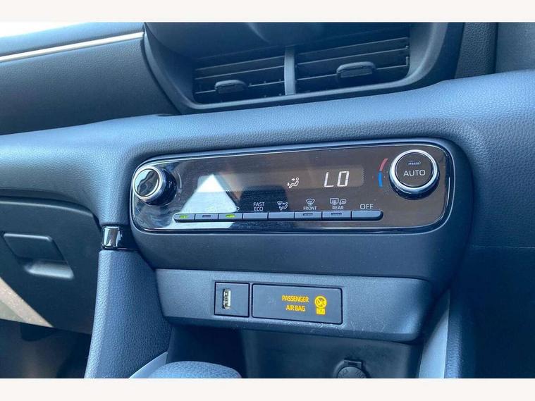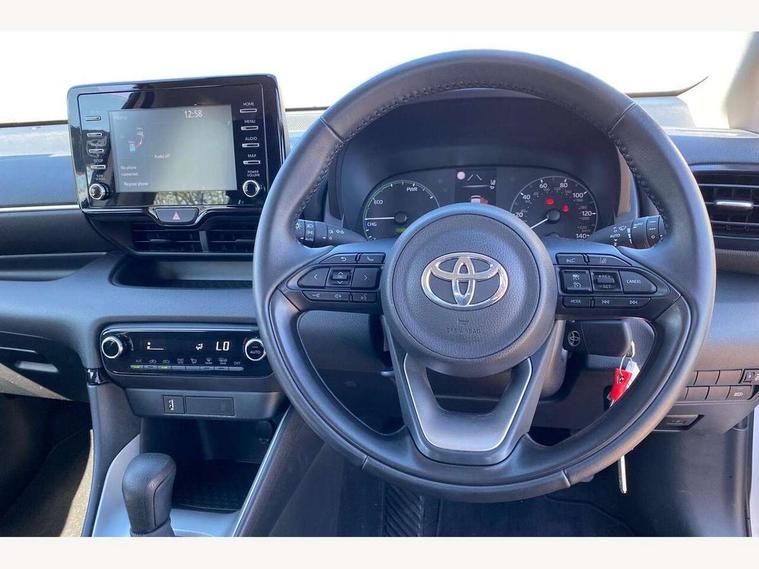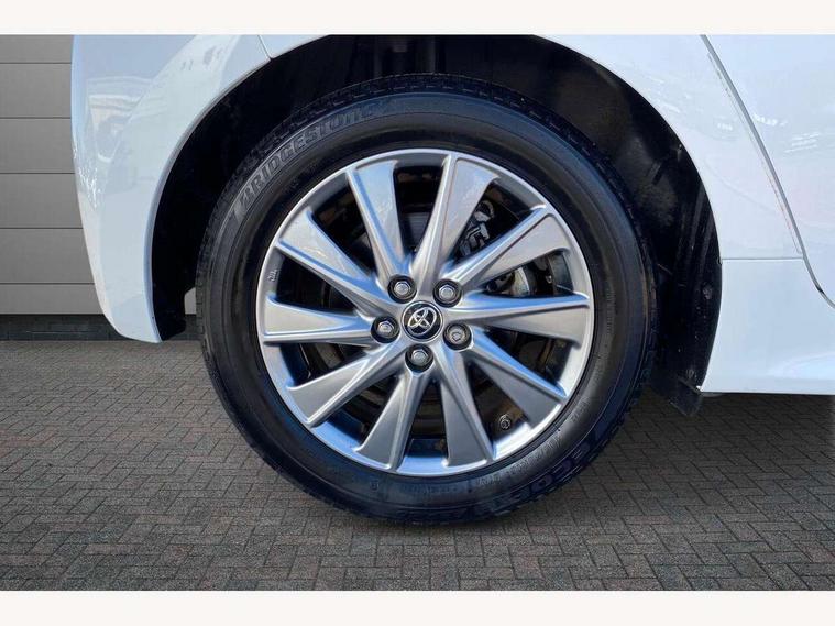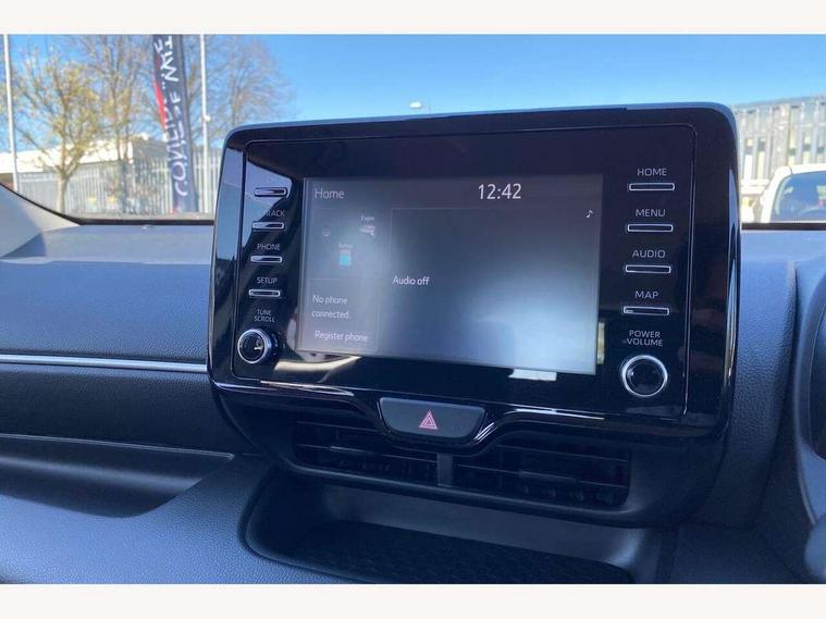 4.2" coloured TFT multi information display with analogue speedometer, Adaptive cruise control, Adjustable speed limit with speed warning, Bluetooth connectivity, E-call, Electric power steering, Hybrid energy display, Multi information display switches on steering wheel, Reversing camera, Smartphone integration with Apple CarPlay and Android auto, Tailgate, Voice recognition, Vehicle Stability Control (VSC), 4 speakers, 7" Multimedia display touch screen, Toyota Touch 2 with DAB, USB connection, Acoustic windscreen glass, Auto windscreen wipers, Automatic headlights, Body coloured door mirrors, Bulb indicators, Chequered front grille, Daytime running lights, Electric adjustable heated door mirrors, Follow me home headlights, Front auto power windows with anti jam protection, Halogen projector headlights, LED High mounted stop lamp, Manual headlight levelling, Rain sensor, Rear side wing doors, Rear spoiler, Rear wiper, Shark fin antenna, Turning signal integrated indicators in door mirrors, Variable front intermittent wipers, 3 adjustable rear headrests, 3 seat bench in 2nd row, 3 spoke leather steering wheel, 60/40 split folding rear seat, Active headrests, Adjustable boot height, Auto air conditioning, Coat hooks in rear grab handles, Cup holders (2 front & door), Data Communication Module (DCM) connected services, Fabric upholstery, Front armrest, Glovebox, Grey roof lining, Height adjustable driver's seat, Isofix seat fixing, Leather gearshift, Pollen filter, Shopping bag hooks, Single front passenger seat, Tilt/telescopic steering column, 3 point seatbelts on all rear seats, ABS+EBD+Brake assist, Electronic parking brake, Emergency brake light system (EBS), Front passenger airbag on/off switch, Front seatbelt reminder, Hill start assist control (HAC), Rear child proof door locks, Rear seat belt reminder, Supplemental Restraint System (SRS) 8 airbags: Driver & passenger's airbags, dual side curtain airbags, side impact airbags, front centre airbag, Toyota Safety Sense 2, Precollison + Night time Pedestrian & Cyclist Detection, Lane Trace Assist, Auto High Beam, Intelligent ACC & Road Sign Assist, Tyre pressure warning system, 2x Master key, Alarm/immobiliser, Remote powered central double locking doors, Soft touch instrument panel, Space saver spare wheel,