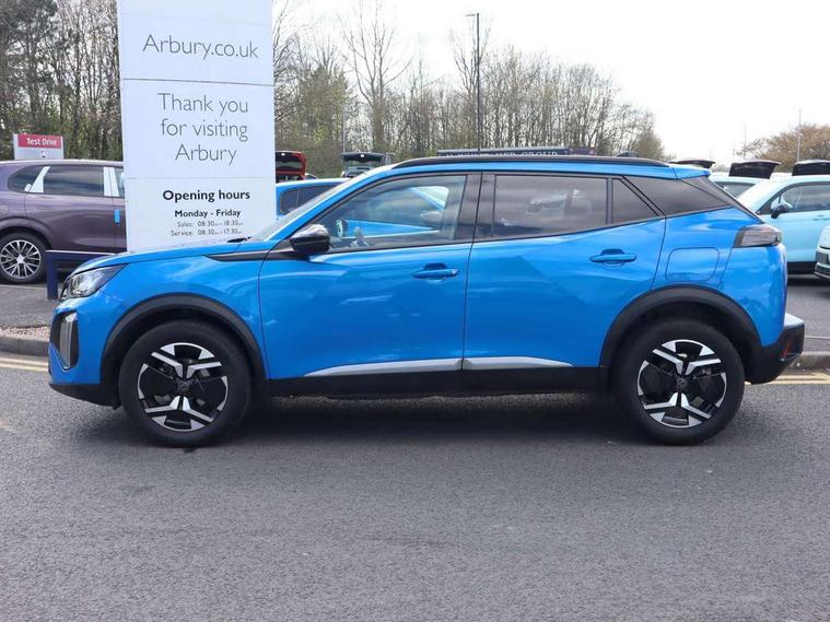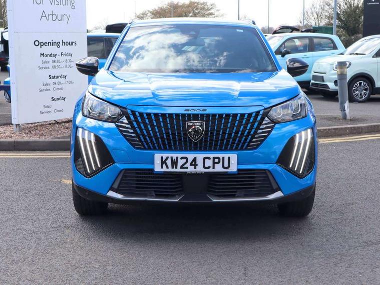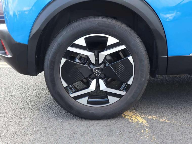 Bluetooth telephone facility, Driver attention warning, E-call, Exterior temperature indicator with ice warning, Front and rear parking sensors, Multi function trip computer, PEUGEOT i-Cockpit with 10" high definition capacitive touchscreen, PEUGEOT i-Cockpit with compact steering wheel, PEUGEOT i-Cockpit with configurable headup instrument panel, Speed limit recognition and recommendation, Wireless mirror screen with apple carplay and android auto, Petrol Particulate Filter, 1x USB-C socket in rear and 1x USB-A socket in rear, 2 USB-C ports in the front, 6 speakers radio with mp3 compatible, DAB Radio (Digital Audio Broadcasting), 2 X Rear number plate lights, Automatic hazard light activation upon heavy brake application, Black front wing trim with gloss black detail, Body coloured exterior door handles, Colour coded rear roof spoiler, Colour coded roof, Dark tinted rear side and tailgate windows, Diamond black mirror shells, Eco LED headlights, Electric, heated, and power folding door mirrors, Electrochrome rear view mirror, Front bumper - Meteor grey lower trim, Gloss black finish on B pillar, Gloss black rear cluster connecting strip, Gloss black roof bars, Headlights left on audible warning, LED daytime running lights with distinctive 3 claw signature, LED side indicator lights integrated into door mirrors, LED third brake light, Model designation badges front and rear, One touch electric front/rear windows with pinch protection, Radiator grille - Body coloured top edge trim, Radiator grille - body coloured vertical chequered grille, Rear full LED 3D peugeot signature claw effect lights with daylight function, Rear reversing lights, Rear side wing doors, Rear windscreen wiper triggered automatically in reverse gear, Tailgate with heated rear windscreen and wiper blade, Twin chromed exhaust pipes, Wheel arch extensions, 1/3 to 2/3 split folding rear seats, 12V socket, 3 seat bench in 2nd row, Automatic air conditioning with pollen and active carbon filter, Central front armrest with storage compartment, Driver and front passenger comfort seats, Driver seat manual adjustment - height, longitudinal and back rest angle, Electric power steering with reach and rake adjustable steering column, Front LED interior light with 2 reading spotlights and rear interior light with timer, Front passenger seat manual adjustment - height, longitudinal and back rest angle, High centre console, Leather steering wheel, Multifunction steering wheel, Piano keys: Gloss black and chrome toggle switches to access main functions of the vehicle and touchscreen functions, Roof lining - Mistral black, Seatbelt unfastened on the move audible and visual alert for front and rear seats, Single front passenger seat, Tri material cloth/leather effect upholstery, Two position modular boot floor, Visibility pack - 2008, 2x 2nd row ISOFIX child seat mountings, ABS (Anti-lock Braking System) with EBD (Electronic Brakeforce Distribution) and EBA (Emergency Braking Assistance), Active safety brake with night function/cyclists/pedestrians, Adaptive driver and front passenger airbags with passenger airbag deactivation function, Child locking functionality on rear doors, Driver/front passenger side airbags, Electric parking brake, ESP (Electronic Stability Program) + Hill Start Assist, Front and rear curtain airbags, Front and rear disc brakes, Front and rear three-point retractable seatbelts, with force limiters, Front optimised safety headrests and rear retractable headrests (x3), height adjustable, Tyre pressure sensor, Automatic door locking when moving off, Deadlocks, Electronic code immobiliser, Thatcham category 1 alarm, Carbon effect Dashboard, front and rear door panel finish, 17" Karakoy diamond cut alloy wheels,