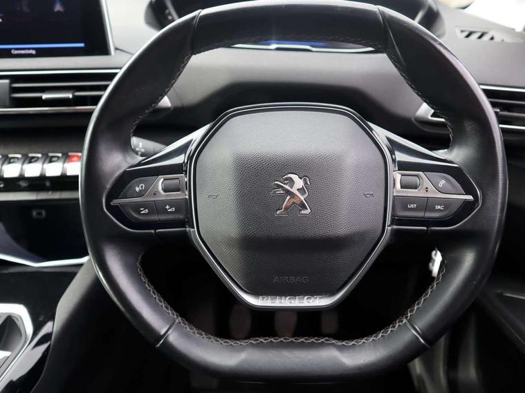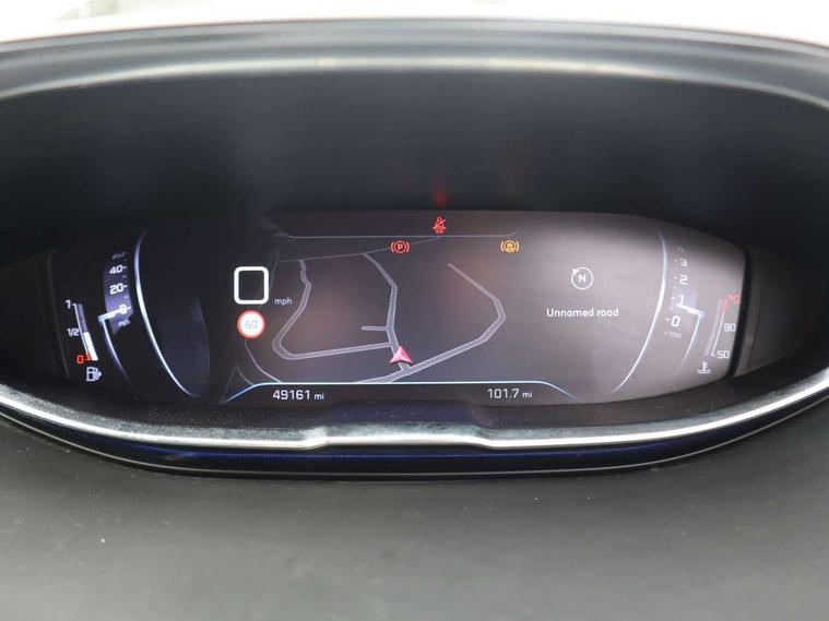 'Lights On' Reminder warning buzzer, 3D connected navigation + voice control + Peugeot connect SOS and assistance, Bluetooth telephone facility, Digital clock, Exterior temperature indicator with ice warning, Front and rear parking sensors, Lane departure warning system, Mirror screen with mirror link, apple carplay and android auto, Multi function trip computer, PEUGEOT i-Cockpit with 8.0" capacitive touchscreen in centre console, PEUGEOT i-Cockpit with compact sports steering wheel, PEUGEOT i-Cockpit with configurable 12.3" Head-up digital instrument panel, Speed limit recognition and recommendation, Diesel particulate filter, Dynamic stability control and electronic anti-skid system, DAB Digital radio, Steering wheel mounted controls, USB socket, 2 X Rear number plate lights, Aluminium longitudinal roof bars, Automatic hazard light activation upon heavy brake application, Automatic triggered rear windscreen wiper in reverse gear, Black and chrome front wing trim, Black rubber side window trim, Body colour door handles, Body colour door mirror shells, Body colour rear spoiler with stainless steel edging trim, Body coloured bumpers, Body protectors (bottom of front and rear bumpers + wheel arches + protection at bottom of doors) in black, Chrome front fog light trim, Chrome rear bumper facia, Dark tinted rear side windows + tailgate window, Door mirror mounted LED courtesy approach lights, Electric operated/heated door mirrors, Front windscreen wiper with magic wash cleaning system, Gloss black B and C pillar and aerodynamic deflector trim, Gloss black rear cluster connecting strip, Gloss black windscreen surround, Headlights left on audible warning, Heated rear windscreen with integrated antenna, LED daytime running lights, LED side indicator lights integrated into door mirrors, Lion grey front bumper scuff plate, One touch electric front/rear windows with pinch protection, Power folding door mirrors with blind spot detection indicator and auto dipping function in reverse gear, Radiator grille in chrome edge trim and facets, Rear LED Peugeot signature 'Claw Effect' lights, Stainless steel roof arches, 1/3 to 2/3 split folding rear seats, 12V Sockets in dashboard, rear cabin and load area, 2 cupholders in front centre console, 2 rear reading spotlights, 2x Rear coat hooks, 3x Isofix child seat fittings in the front passenger and outer rear seats, 4 Grab handles retractable and damped, Blue ambient lighting for connecting zone, Blue ambient lighting to front door panels, central storage and cupholders, Blue ambient lighting to head up instrument panel, Centre front armrest with butterfly wing opening and illuminated storage compartment, Driver and front passenger seat height adjustment, Driver seat manual adjustment, Dual zone automatic climate control, Electric power steering with reach and rake adjustable steering column, Fixing rings 4 in load compartment, Flocked glovebox interior, Fold flat front passenger seat with picnic table, Footwell illumination, Front interior light with 2 reading spotlights and rear interior light with timer, Front passenger seat manual adjustments, Front seat back map pockets, Gear shift indicator, Illuminated glovebox, Illuminated vanity mirrors, Leather steering wheel with detail stitch, Rear armrest with ski flap and two cup holders, Rear centre console ventilation system, Reclining front seats, Roof LED interior lighting, Roof lining - Salin light grey, Satin chrome dashboard trim, Satin chrome digital instrument panel and touchscreen trim, Satin chrome front door panel recess trim, Satin chrome gear lever, Satin chrome interior door handles, Satin chrome scorpion's tail and toggle switch trim, Seatbelt not fastened audible and visual alert for front seats, Seatbelt unfastened on the move audible and visual alert for front and rear seats, Two position boot floor, Safety pack - 3008, Safety Plus Pack - 3008, Visibility pack - 3008, 3x Rear three-point retractable seatbelts with force limiters in the outer rear seats, Adaptive driver and front passenger airbags with passenger airbag deactivation function, Anti lock braking system + Electronic brake force distribution, Driver and front passenger side airbags, Electric child locking functionality on rear windows and doors, Electric parking brake, Front and rear curtain airbags, Front optimised safety headrests and 3 x rear retractable headrests with height adjustable, Front three point retractable seatbelts with pre tensioners and force limiters, Front ventilated disc brakes and rear disc brakes, Height adjustable front seatbelts, Hill start assist, Tyre pressure sensor, Anti theft alarm, Automatic door locking when moving off, Central locking button on dash, Deadlocks, Electronic immobiliser, Locking wheel bolts, Remote control central locking with two plip keys, Brumeo fabric Dashboard, front and rear door panel finish,