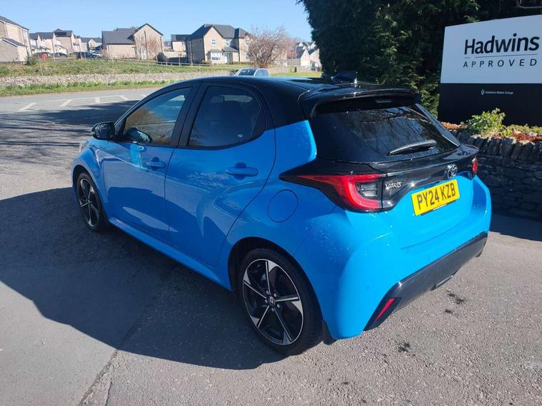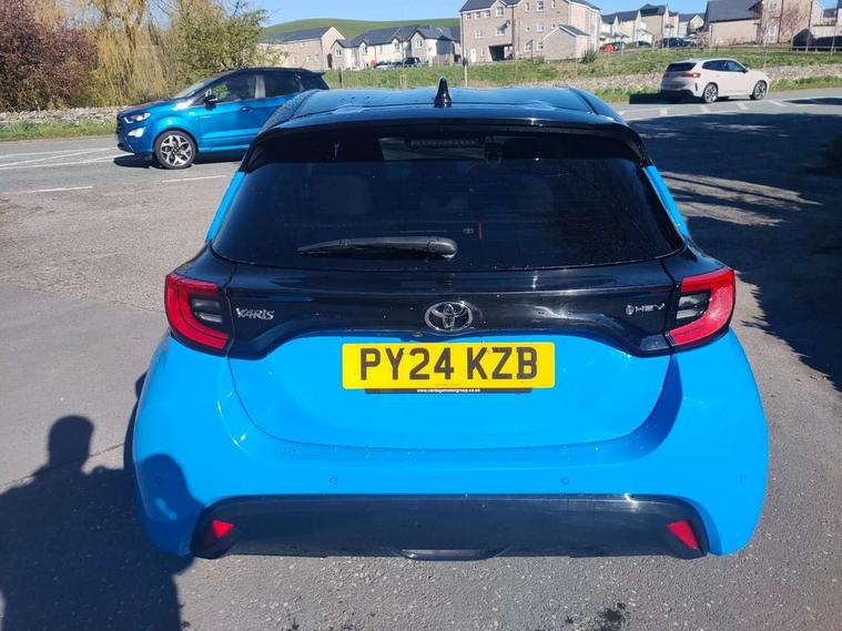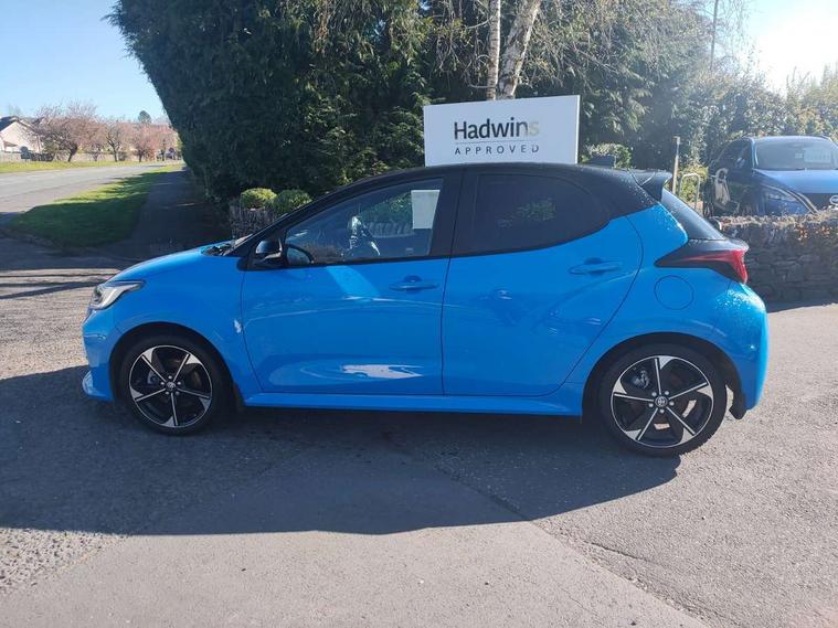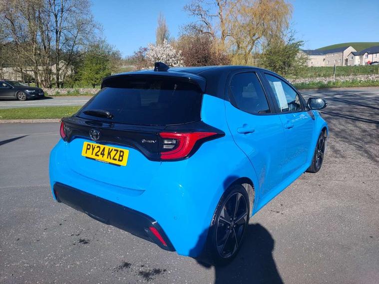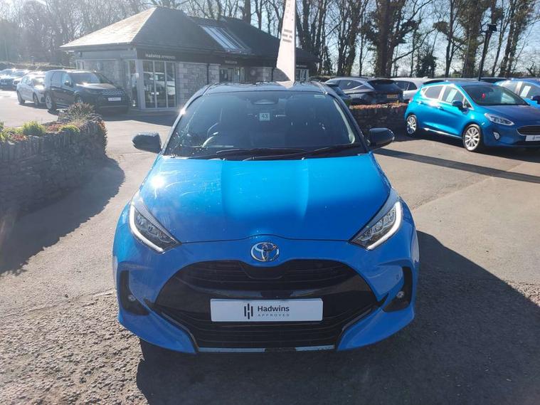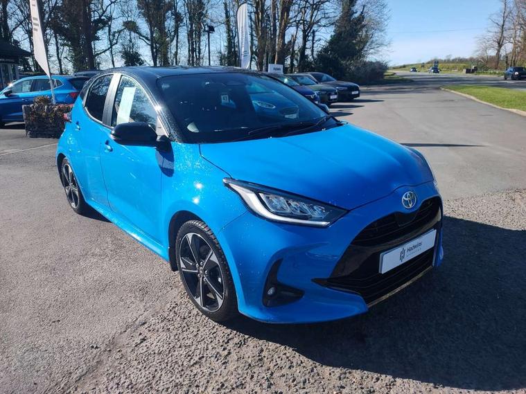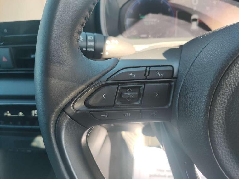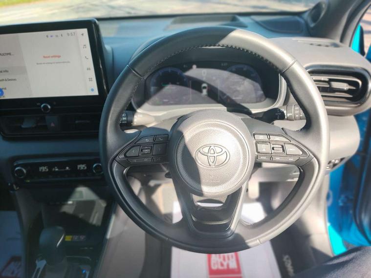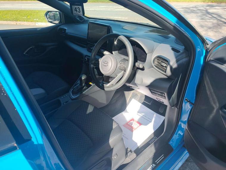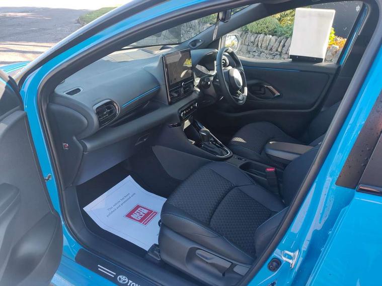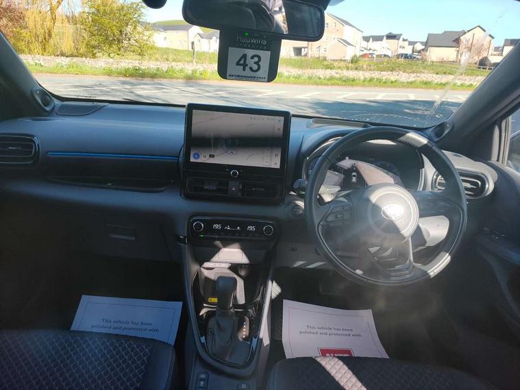 12.3" Digital Combimeter, Adaptive cruise control, Adjustable speed limit with speed warning, Bluetooth connectivity, Colour binocular inspired displays with digital speedometer, E-call, Electric power steering, Head up Display, Hybrid energy display, Multi information display switches on steering wheel, Reversing camera, Tailgate, Voice recognition, Wireless charger, Vehicle Stability Control (VSC), 10.5" Toyota smart connect multimedia with wireless smartphone integration incl apple car play and cloud Navigation, 6 speakers, 8 speakers, JBL speaker system, Toyota Touch 3 system with DAB radio, USB connection, Acoustic windscreen glass, Auto windscreen wipers, Automatic headlights, Body coloured door mirrors, Dark chrome lower front grille, Electric adjustable heated door mirrors, Follow me home headlights, Front auto power windows with anti jam protection, Full LED rear lights, LED daytime running lights, LED front fog lights, LED front light guide, LED Headlights, LED High mounted stop lamp, LED Indicators, LED rear light guide, Manual headlight levelling, Painted chequered front grille with hot stamp in mesh design, Rain sensor, Rear auto power windows with anti jam protection, Rear privacy glass, Rear side wing doors, Rear spoiler, Rear wiper, Shark fin antenna, Turning signal integrated indicators in door mirrors, Variable front intermittent wipers, 3 adjustable rear headrests, 3 seat bench in 2nd row, 3 spoke leather steering wheel, 60/40 split folding rear seat, Active headrests, Adjustable boot height, Black roof lining, Coat hooks in rear grab handles, Cup holders (2 front & door), Data Communication Module (DCM) connected services, Dual zone automatic air conditioning, Front armrest, Front sport seats, Glovebox, Height adjustable driver's seat, Height adjustable passenger seat, Isofix seat fixing, Leather gearshift, Map pockets on the backs of the front seats, Nanoe-X air purifier, Partial leather upholstery, Pollen filter, Shopping bag hooks, Single front passenger seat, Tilt/telescopic steering column, Safety pack - Yaris, 3 point seatbelts on all rear seats, ABS+EBD+Brake assist, Electronic parking brake, Emergency brake light system (EBS), Front passenger airbag on/off switch, Front seatbelt reminder, Hill start assist control (HAC), Rear child proof door locks, Rear seat belt reminder, Supplemental Restraint System (SRS) 8 airbags: Driver & passenger's airbags, dual side curtain airbags, side impact airbags, front centre airbag, Toyota Safety Sense 3 with over the air updates, Tyre pressure warning system, 2x Master key, Alarm/immobiliser, Keyless smart entry with push button start, Remote AC via MyT, Remote locking via MyT, Remote powered central double locking doors, Smart digital key, Piano black interior trim, Soft touch instrument panel, 17" Black Machined-face, 5 double spoke alloys wheels, Space saver spare wheel,