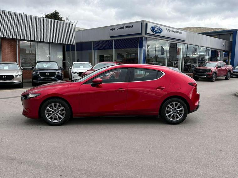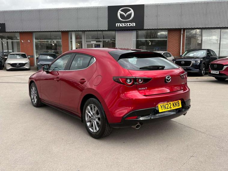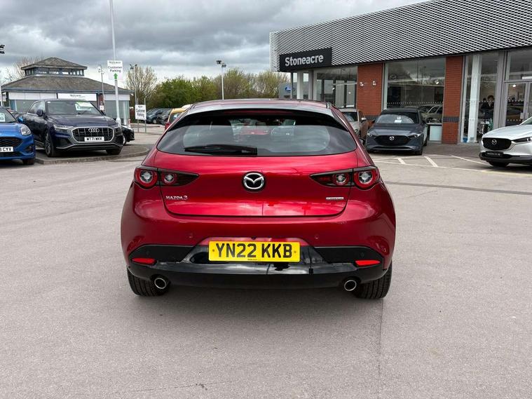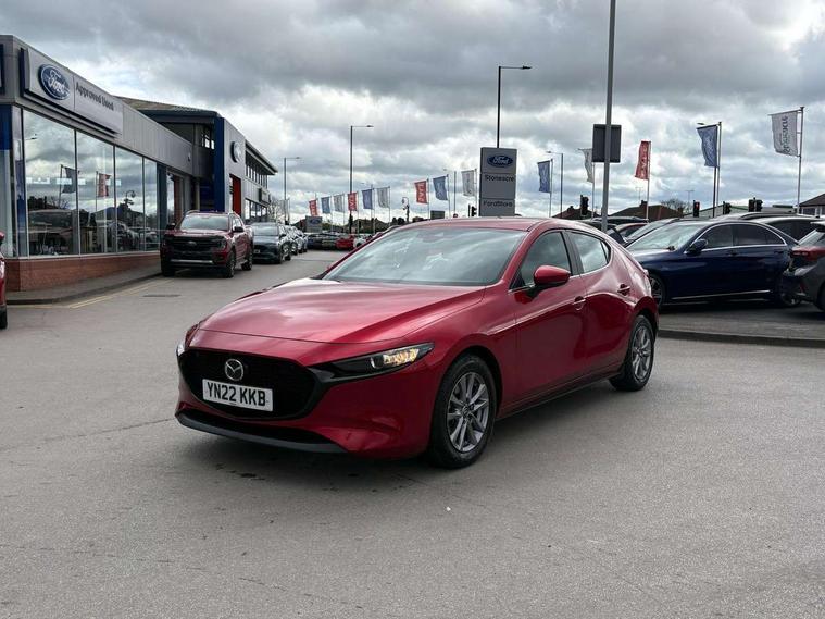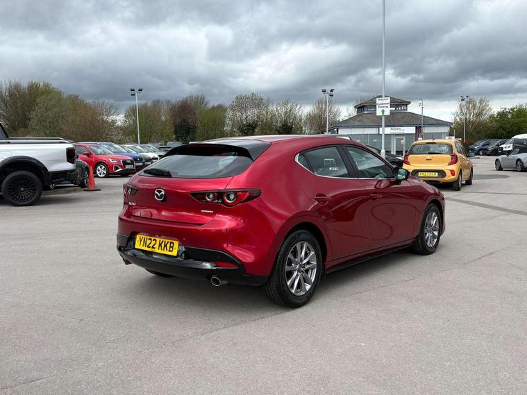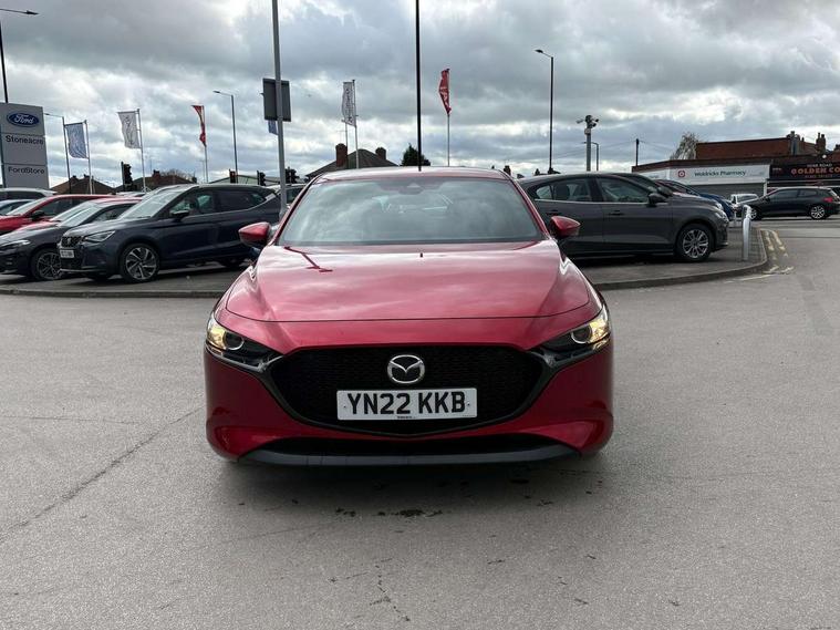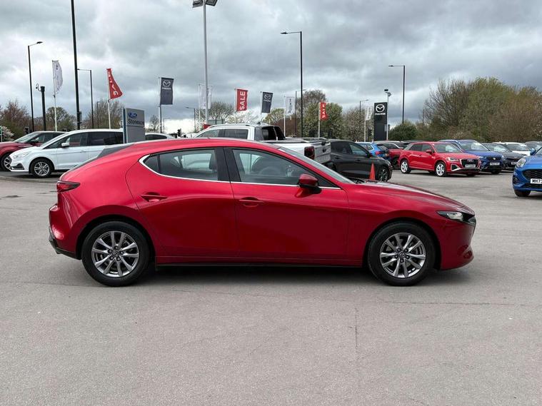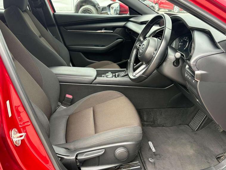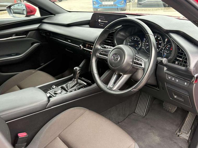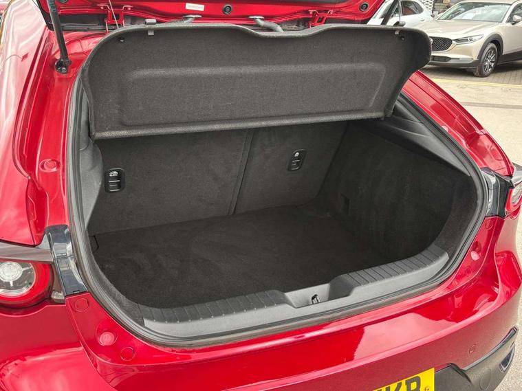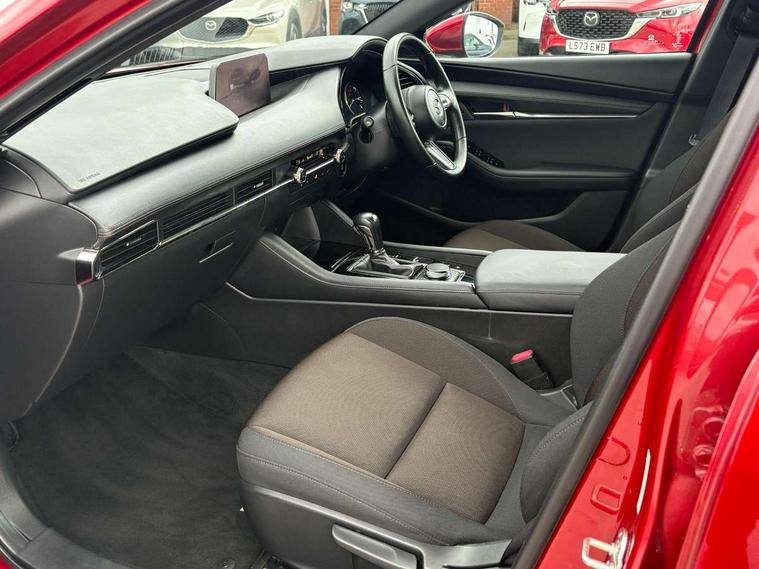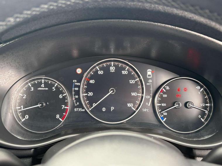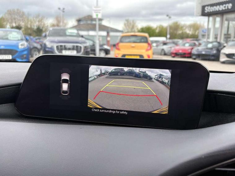 7" colour TFT display, 8.8" Colour centre touch screen display with Mazda Connect infotainment, Apple car play/Android Auto, Audio transfer from bluetooth devices, Blind spot monitoring with rear cross traffic alert, Colour active driving display inc Windscreen projected, Traffic Sign Recognition, turn-by- turn navigation and Mazda Radar Cruise Control information, Digital instrument cluster, Driver attention alert system, E-call with GPS, Emergency stop signalling system, Engine start/stop button, Front and rear parking sensor with audible and visual warning, Head up Display, Integrated bluetooth with steering wheel mounted controls, Intelligent speed assist, Lane keep assist system (LAS) with Lane departure warning system (LDWS), Mazda connected services, Mazda Navigation System with european mapping, Mazda Radar Cruise Control, Mobile App interface, Multimedia Commander, PAS, Reversing camera, Service indicator, Traffic sign recognition (TSR), Trip computer, Cylinder Deactivation, i-stop, Mazda Multimedia System with AM / FM / DAB radio with 8 speakers, Auto dimming driver's door mirrors, Auto dimming rear view mirror, B-pillar garnish in satin black, Body coloured, electrically adjustable, heated auto power folding door mirrors with integrated indicators, Coming/leaving home lighting function, Dark metallic finish signature wing, Daytime running lights, Dual chrome tailpipes tip, Dusk sensing headlights, Electric front/rear windows with one touch/auto up/down, Front body coloured bumper with black lower bezel, Front kodo turn signal, Gloss black finish front grille, Gloss black rear roof spoiler, High beam control, LED front fog lights, LED headlamps with auto levelling, LED indicator lights, LED rear combination lights, LED third brake light, Rain sensing front wipers with adjustable sensitivity and speed, Rear colour coded bumper with gloss black lower moulding, Rear fog lights, Rear side wing doors, Speed adjustable rear wash wiper with intermittent wipe, 12v electrical power outlet, 3 seat bench in 2nd row, 60/40 split fold down rear seats, Black cloth door panel inserts, Cloth upholstery, Dark roof headlining, ceiling and pillars, Driver, front passenger and two rear door pockets, Driver, Front passenger and two rear grab handles with coathooks, Driver/passenger sunvisors + vanity mirrors (drivers side with ticket holder), Drivers seat manual slide recline and height adjustment, Dual zone climate control air conditioning, Folding rear centre armrest with two cup holders, Front and rear courtesy lamps, Front armrest, Front centre storage with two cupholders, Front head restraints, Front passenger seatback pocket, Front passengers seat manual slide, recline and height adjustment, Gear shift drive selection switch sport mode, Heated front seats with 3 stage setting, Illuminated glovebox, Interior colouration dashboard and doorcards in black with dark stitching, ISOFIX child seat anchorage points attached on outer rear seats, Leather wrapped gear shift knob, Leather wrapped steering wheel, LED interior light, Luggage compartment light, Power outlet in luggage compartment, Roof mounted sunglasses holder, Single front passenger seat, Three height adjustable rear head restraints, Tilt/height adjustable steering wheel, USB input, 3 point ELR front seatbelts with pretensioners, 3 rear 3 point seatbelts with ELR, Anti-lock braking system (ABS), Drivers knee airbag, DSC - Dynamic Stability Control, Dual stage driver and single stage passenger airbags, EBD - Electronic brakeforce distribution, Electronic parking brake with auto disengage function and auto hold function, Front and rear curtain airbags, Front passenger airbag cut-off switch, Front side airbags, Front smart city brake support, G-Vectoring control plus, Hill launch assist, Intelligent Traction Control system, Manual child lock in rear doors, Mild Hybrid system with regenerative braking, Seatbelt reminder for driver/front passenger and rear seats, Tyre pressure monitoring system (TPMS), Auto door lock when driving, Remote central locking + deadlocks, Smart keyless entry, Thatcham accredited alarm and immobiliser, 16" Silver alloy wheels, Emergency tyre repair kit,