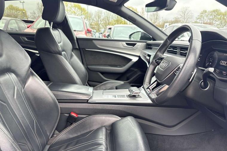 Amazon alexa Integration, Audi connect safety and service (e-call), Audi drive select, Audi parking system plus - acoustic and visual park assist system for front and rear, Audi phone box with wireless charging, Audi smartphone interface, Audi virtual cockpit - 12.3" high resolution LCD digital instrument cluster display, Automatic start/stop system with coasting functionality, Colour driver's information system display, Electric boot lid release, Lane departure warning system, MMI nav plus with MMI touch + 10.1" and 8.6" HD haptic touch screen/3D city models/country information/online map/route info and personal route assist, Operating buttons in black gloss, Power operated tailgate, Rear view camera, Service indicator, Voice control system, 3 pin 10 amp domestic charging cable, 52 litre fuel tank, Hybrid propulsion system, Quattro on demand, Type 2 mode 3 32 amp charging cable, Type 2 socket for AC charging, Audi music interface - 2 USB ports with charger and data functions, Audi sound system with 6 channel amplifier, 180 watt amplifying capacity and 10 loudspeakers including subwoofer, Auxiliary input socket, DAB digital radio module, Audi Beam uses LEDs to project the Audi Sport logo, Coming/leaving home animations in front and rear, Electrically adjustable heated and folding + automatically dimming exterior mirrors with memory function, Frameless auto dimming interior rear view mirror, Front and rear electric windows, Gloss black exterior mirror housings, Gloss black highlights on the exterior area of the Audi Single frame, Gloss black highlights on the front and rear bumpers, Gloss black highlights on the radiator grille, Gloss black highlights on the side windows trim strips, HD Matrix LED headlights with dynamic front and rear indicators, Headlight washers, Heat insulating glass in side and rear windows, High gloss black radiator grille with chrome single frame surround, LED rear lights, Privacy glass with dark tinting on rear side windows and rear window, Rain and light sensors, Retractable rear spoiler, S line air inlet design with inlay in high gloss black, S Line badge on front fender, S line badge on front grille, S Line Black rear diffuser with chrome inlays and rear grille, S Line side skirts, Signature LED daytime running lights, Towbar preparation, Windscreen with acoustic glazing, 3 spoke flat bottom high multi-function leather steering wheel, 4 zone deluxe automatic climate control, 4-way electric lumbar support, 40/20/40 split folding 3 seater rear seat bench with rear centre armrest, Aluminium gear knob, Black cloth headlining, Electrically adjustable front seats - driver seat with memory, Front and rear headrests, Front centre armrest, Heated front seats, Height/reach adjust steering wheel, Illuminated door sill trims with S logo, Illuminated sun visors with vanity mirrors, ISOFIX child seat mounting and Top Tether with front passenger airbag deactivation, Leatherette upper instrument panel and door shoulders, S line front and rear floor mats with contrast stitching, Stainless steel pedals and foot rest, Tool kit and car jack, Valcona leather upholstery with diamond stitching and super sport seats S embossed logo, LED interior ambient lighting pack - A7, Non smoking pack - A7, Storage pack - A7, 3 point seatbelts on all seats, Audi pre-sense front, Driver and passenger airbags, Electromechanical parking brake, Electronic stabilisation control including ABS, ASR and EDL, Extended pedestrian protection measures, Hill hold assist, Red brake callipers, Seatbelt monitoring, Tyre pressure warning light, Warning triangle and first aid kit, Anti theft alarm with tow away protection, Anti-theft wheel bolts and wheel loosening detection, Immobiliser, Keyless Go, Preparation for tracking system, Remote central locking, Tyre repair kit,