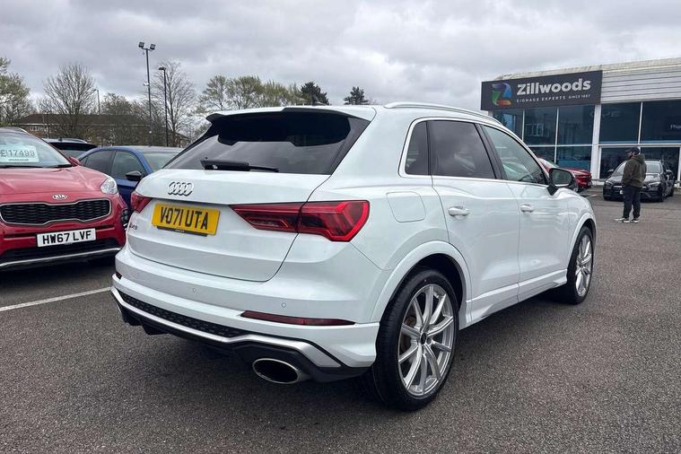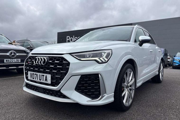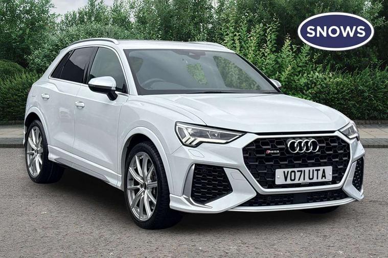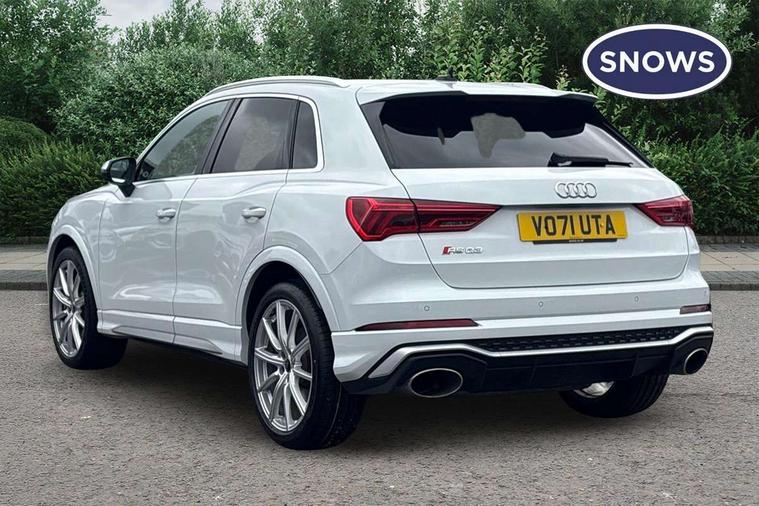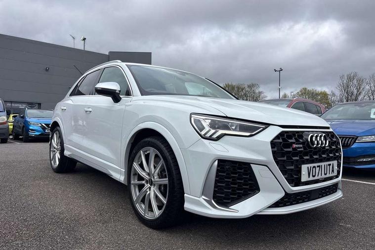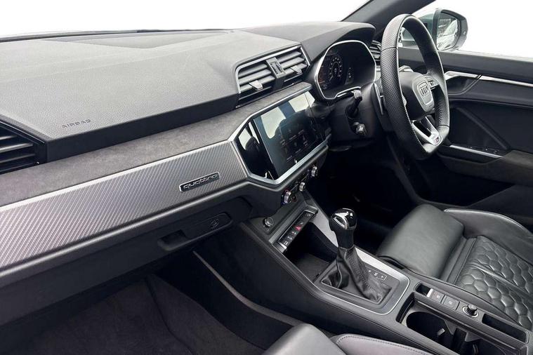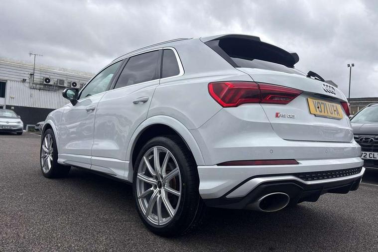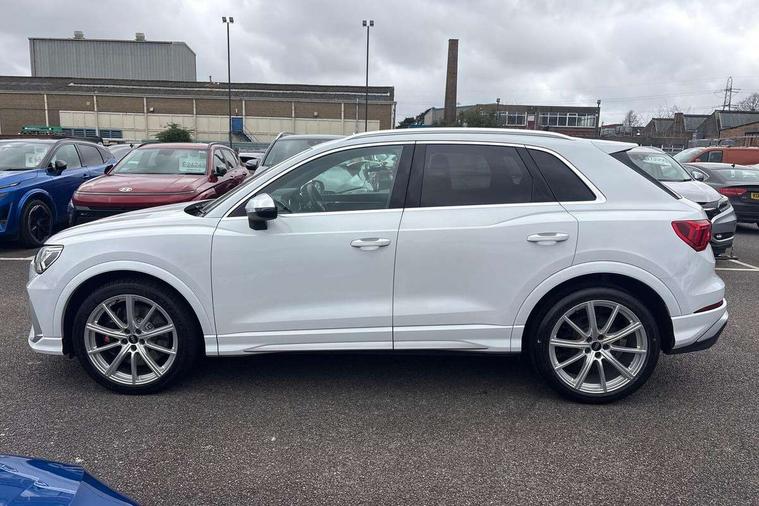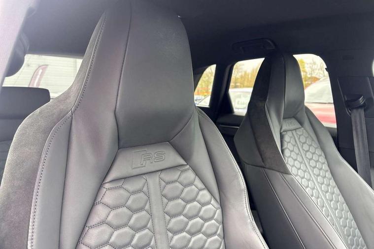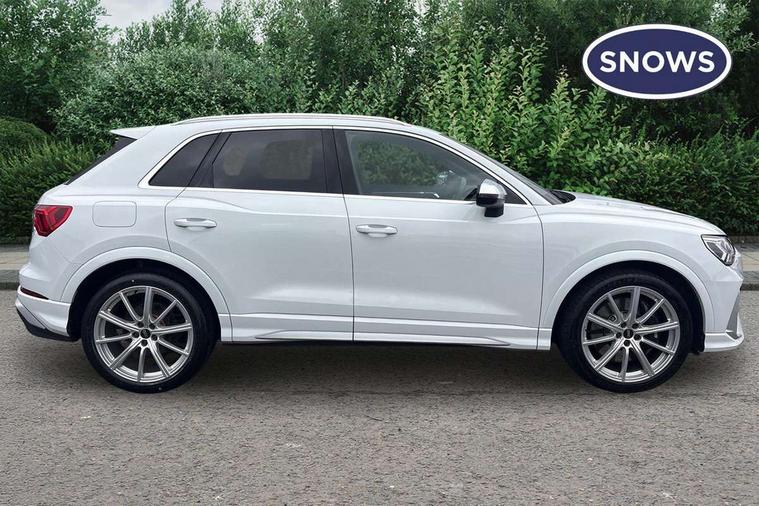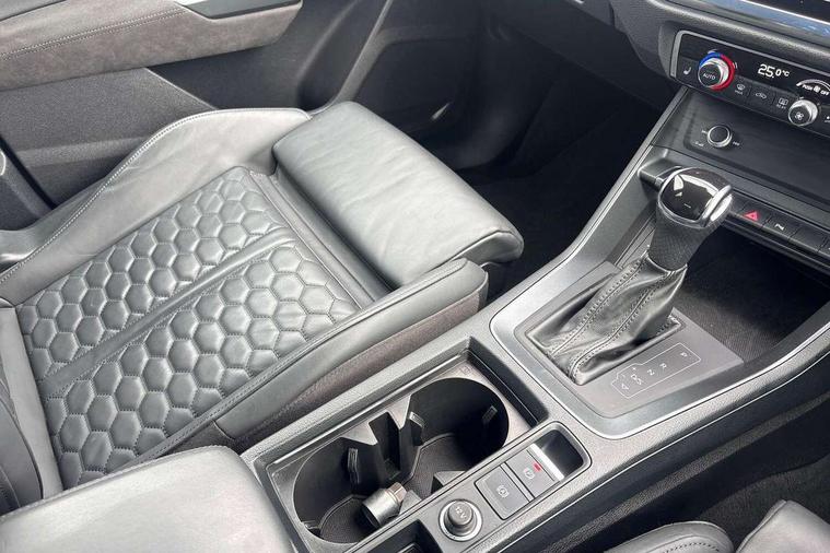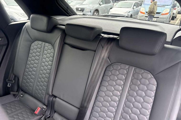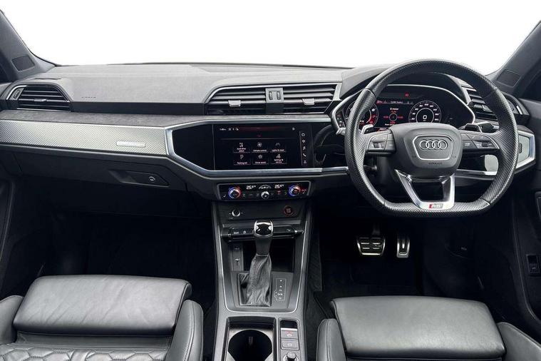 Audi connect safety and service (e-call), Audi drive select with new RS modes, Audi lane departure warning, Audi parking system plus with front and rear sensors, Audi smartphone interface includes wireless Apple carplay/Android Auto, Audi virtual cockpit plus - 12.3 inch display, Bluetooth interface, Camera based traffic sign recognition, MMI Navigation Plus with high resolution 10.1 inch touchscreen colour display, Power operated tailgate, Progressive steering, Start stop system with recuperation, Voice control system with natural language interaction, Quattro all wheel drive, 2 USB-C ports with charge and data functions, Audi sound system, DAB digital radio module, Acoustic windscreen, Aluminium roof rails, Aluminium window trim, Audi Beam uses LEDs to project the Audi Sport logo, Auto dimming frameless rear view mirror, Body colour rear spoiler, Electrically folding, adjustable and heated door mirrors with integrated LED side indicators and kerb view function for passenger side, Flared wheel arches, Flat slits on single frame grille, Front spoiler blade, side blades, inserts on door trim strips and diffuser insert in matt aluminium look, Headlight washers, High gloss black finish B and C pillars, Honeycomb radiator grille in gloss black, Illuminated door sill trims with RS logo, LED headlights with LED daytime running lights and dynamic rear indicator, LED rear lights, Privacy glass dark tinted rear and rear-side windows (from B-pillar backwards), Rain and light sensors, RS specific bumpers with large front air inlets in black, 4 way electric lumbar support for driver and front passenger, Adjustable rear seat bench/backrest with centre armrest and cupholder, Black Alcantara elements - dashboard and the armrests in the front and rear doors, Black cloth headlining, Dual zone electronic climate control, Electrically adjustable front seats, Fine Nappa leather upholstery with front sports seats + honeycomb stitching and RS embossed logo, Front and rear floor mats, Front and rear head restraints, Front centre armrest, Heated front seats, ISOFIX child seat mounting for front passenger with airbag deactivation and outer rear seat including top tether attachment point for outer rear seats, Stainless steel luggage compartment sill finisher, Stainless steel pedals, Tool kit, Ambient lighting pack - RS Q3, Non smoking pack - RS Q3, 3x3 point rear seatbelts, 6 airbags - Driver, front passenger, curtain and side windows, Audi pre-sense front with pedestrain and cyclist recognition, Electrically operated child locks on rear doors, Electromechanical parking brake, Electronic stabilisation control including ABS, ASR and EDL, Hill descent control, Hill hold assist, Pre sense basic, RS brake system, Seatbelt monitoring, Tyre pressure warning, Warning triangle and first aid kit, Advanced key, Anti theft alarm, Anti theft wheel bolts, Aluminium look interior elements, Detail dashboard around MMI touch colour display in glass look, black with surround in aluminium look, Inlays in aluminium race anthracite, Tyre repair kit,