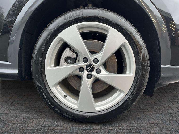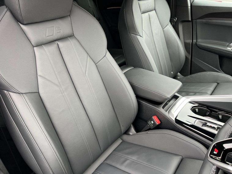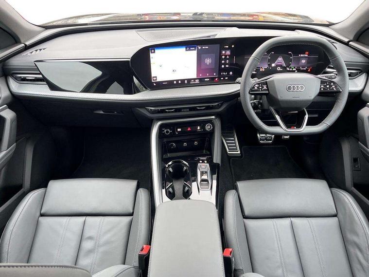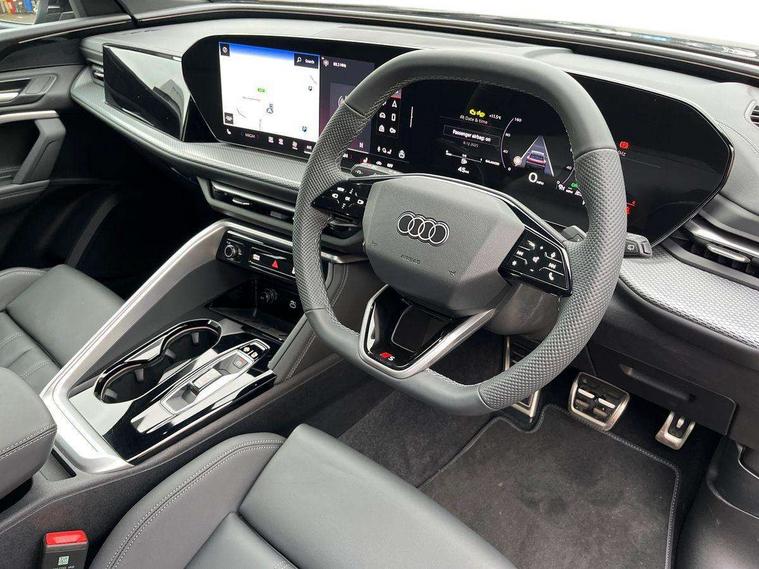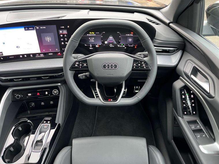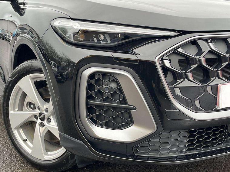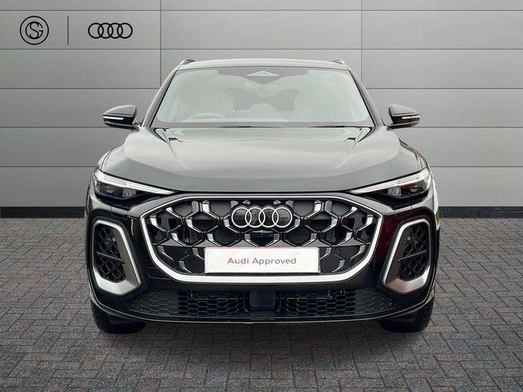 Adaptive cruise control, Advanced driver attention alert, Audi application store, Audi connect emergency call and service, Audi drive select, Audi smartphone interface, Audi virtual cockpit plus with 11.9" OLED colour display, Camera based traffic sign recognition, Fatigue monitor, Front cross traffic intersection assist, Lane departure warning system, MMI navigation plus with high resolution 14.5" OLED touchscreen colour display, Park assist plus, Parking system plus with 360 display, PAS, Reversing camera, Traffic sign based speed limiter, 2 USB-C ports in both the front and rear, Audi sound system impressive sound with 8 loudspeakers including centre speaker and subwoofer, 6-channel amplifier with a total output of 180 watts, DAB Digital radio, Smartphone compartment with wireless charging, Aluminium roof rails, Auto dimming rear view mirror, Body coloured door mirrors, Coming/leaving home lighting function, Electrically adjustable heated and folding + automatically dimming exterior mirrors, Front and rear electric windows, Front door sill trims with aluminium inlays, illuminated with 'S' logo, Grill frame, inlay and front air inlets in matt anthracite chrome, Headlight cleaning system, Heated rear window, High beam assist, High gloss window surrounds, LED headlights plus incl. digital DRL, dynamic coming and leaving home function with turning/all weather/motorway/manouevring and intersection lights, LED rear lights pro incl. dynamic rear indicators and illuminated light strip with animated coming and leaving home function, Logo projection light in exterior mirrors, Privacy glass, Projection third brake light for rear window in LED, Radiator grille in phantom black, Rear and side windows with heat insulating glass, Rear honeycombe grille in matt black with inlay in matt anthracite chrome, Rear side wing doors, Rear wash/wipe, S Line badge on the front wings, S line bumpers in contrasting Volcano grey metallic paint finish, Towbar preparation, Windscreen with acoustic glazing, 3 rear head restraints, 3 seat bench in 2nd row, 3 spoke leather steering wheel with multi-function buttons with touch control, flattened on top and bottom, with S badging and contrast stitching, Comfort centre armrest front, Deluxe 3 zone electronic climate control, Front and rear floor mats, Front sport seats with integrated head restraints, Headlining in black cloth, Heated front seats, i-Size child seat mounting on the front passenger side and outer rear seats, i-Size and top tether on the outer rear seats, Interior trim in aluminium look, Luggage compartment lid, electrically opening and closing, Manual steering column adjustment, S embossed logo on front sport seats, Single front passenger seat, Softwrap in leatherette, Stainless steel pedals and footrest, Steering wheel grips in perforated leather and shift paddles, Ambient lighting package plus - Q5, 3x3 point rear seatbelts, ABS, Acoustic vehicle alerting system, Convenience key with safelock, Driver and front passenger airbag with passenger airbag deactivation, Electric child safety locks, First aid kit with warning triangle and high visibility vests, Front emergency brake assist, Front side airbags with head airbag system and front interaction airbag, Hill hold assist, Rear seat occupant reminder, Tyre pressure loss indicator, Anti theft alarm, Anti-theft wheel bolts, Accent surfaces and control buttons in gloss black, Anthracite matt brushed aluminium inlays with linear embossing, Black dashboard with contrast stitching, Upper and lower interior elements in artificial leather, Tyre repair kit,
