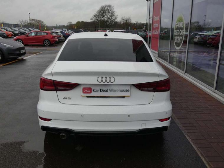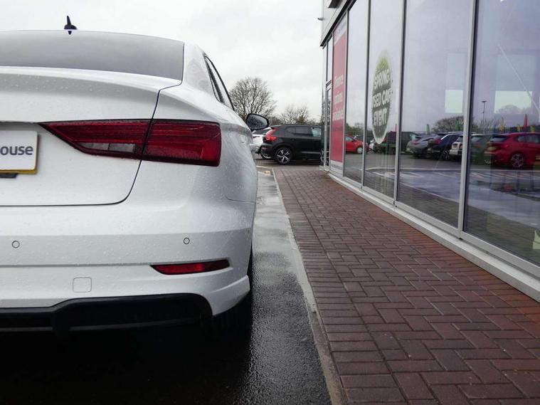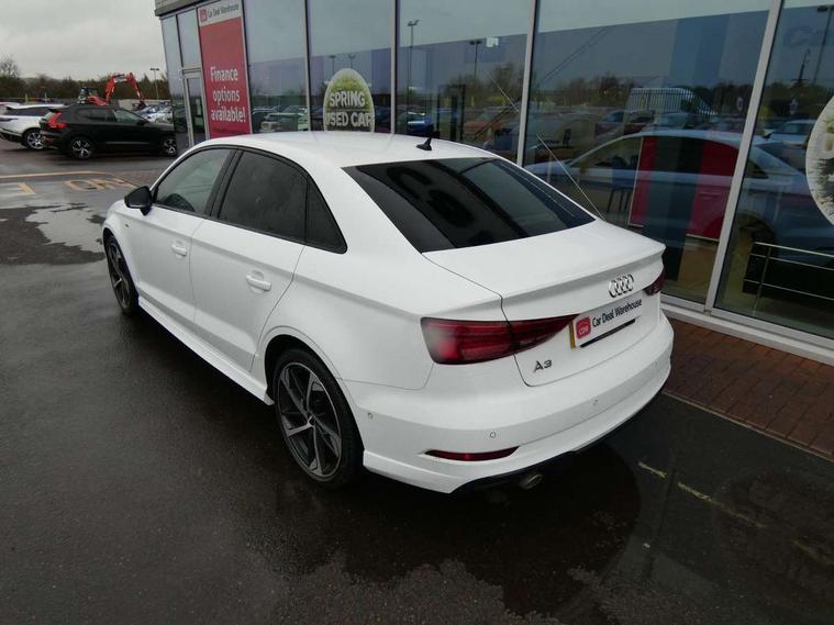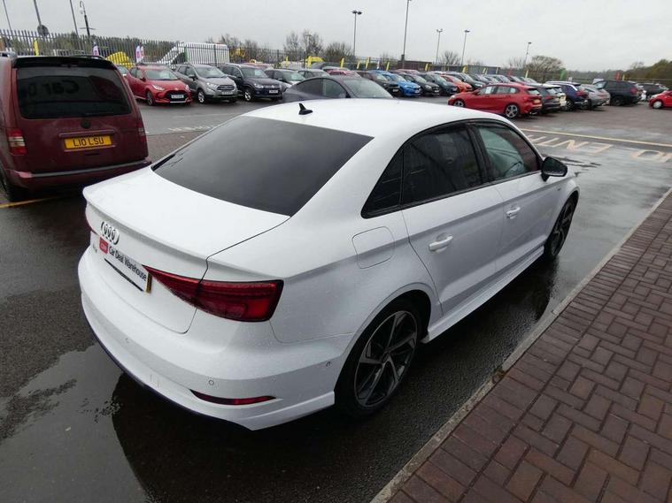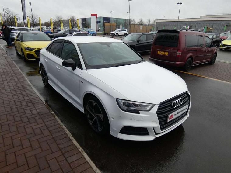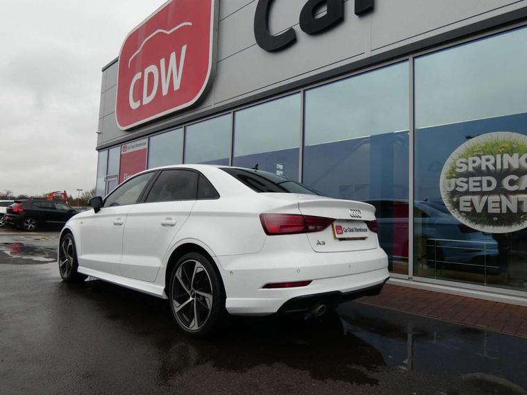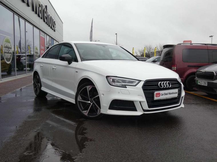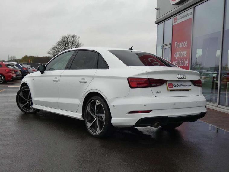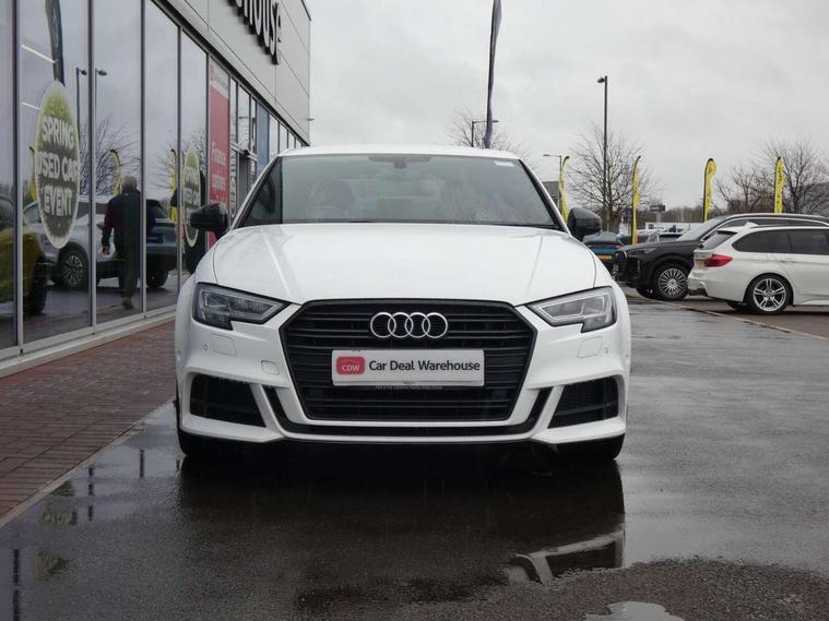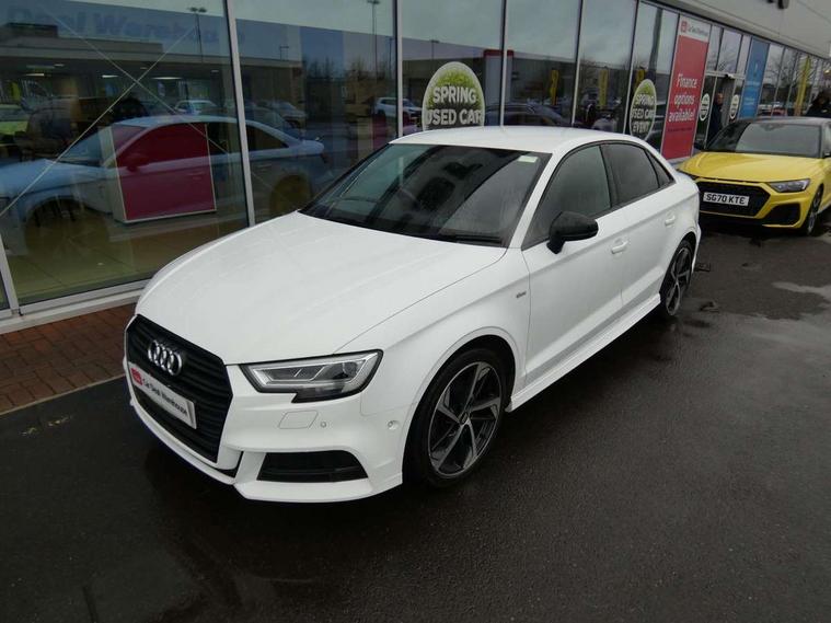 Audi connect, Audi drive select, Audi smartphone interface, Automatic start/stop system, Bluetooth interface, Colour driver's information system display, Electro-mechanical PAS, SD card based MMI navigation, Service indicator, Voice control system, Diesel particulate filter, 2 USB interfaces and Aux-In jack, CD player, DAB Digital radio, MMI radio plus with 7" colour MMI screen and MMI controller, Two SDXC card slots, Auto dimming rear view mirror, Automatic lights and wipers, Black door mirrors, Electrically adjustable and heated door mirrors with integrated LED side indicators, Front and rear electric windows, Heated rear window, Heated windscreen washer jets, Privacy glass, S Line badges on the front wings, S Line body styling, S Line body styling with high gloss dark chrome radiator grille and rear diffuser in platinum grey, S Line body with front and rear bumpers and side skirts, S Line roof edge spoiler, Single branch dual exhaust tailpipe, 3 adjustable rear headrests, 3 spoke flat bottomed multi-function leather sport steering wheel, 4 lashing points to secure luggage, Adjustable front centre armrest, Black cloth headlining, Driver/passenger sunvisors, Dual zone electronic climate control, Front and rear interior lights with delay, Front sport seats with S embossed logo, Front/rear floor mats, Height/depth adjustable steering column, Illuminated door sill trims with S logo, Illuminated glovebox, Illuminated luggage compartment, ISOFIX child seat mounting and Top Tether with front passenger airbag deactivation, Stainless steel pedals, Storage compartments in doors side trims, centre console and under front drivers seat, Black styling pack - A3/S3, LED interior light pack - A3/RS3, Non smoking pack - A3, Storage and luggage pack - A3/RS3, 3 point seatbelts on all seats, ABS/EBD, Airbags - front driver/passenger, front & rear side, curtain, drivers knee, ASR, EDL, Electromechanical parking brake, ESC - Electronic Stability Control + traction control, Hill hold assist, Predictive pedestrian protection, Seatbelt warning, Tyre pressure warning, Warning triangle and first aid kit, Anti theft alarm, Anti-theft wheel bolts, Immobiliser, Remote control central locking, Aluminium air vent surrounds, Aluminium trim elements, Matt brushed aluminium inlays, 18" 5 arm trapezoid design sport alloy wheels in gloss anthracite black with diamond cut finish, Tool kit, Tyre repair kit,