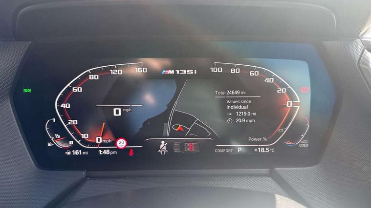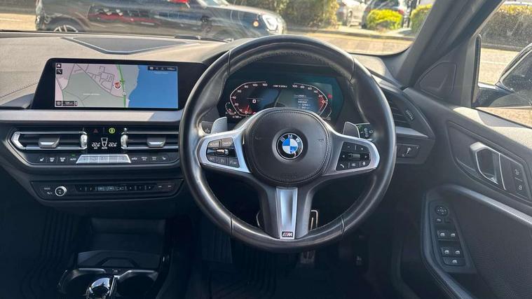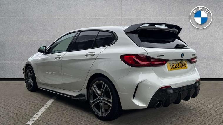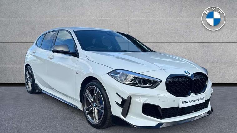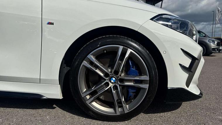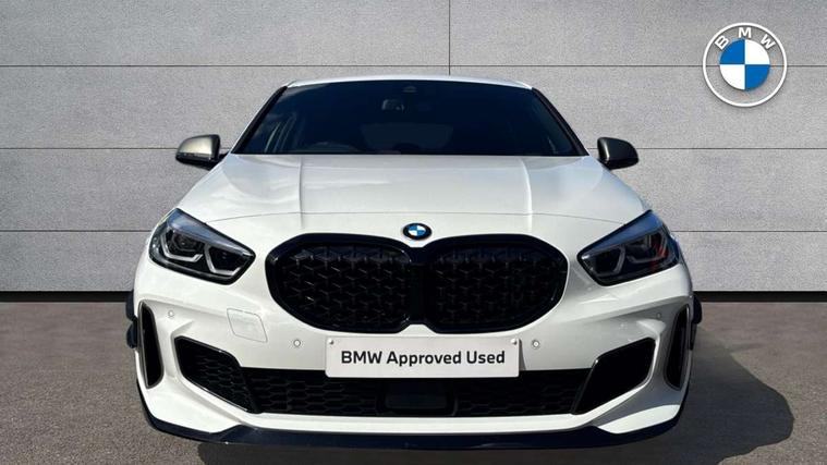 Active guard plus, Attentiveness assist, BMW ConnectedDrive online services, BMW Teleservices, Check Control warning system for monitoring of lights and door/luggage compartment open warning, Cruise control with speed limiter, Eco pro mode, Electric power steering, Electro hydraulically controlled multi-plate clutch transfers drive to rear axle and with power take-off device located on the front differential., Energy efficient operating strategy, Front axle single joint with specific axle kinematics to minimise drive influences on steering + provide increased rigidity agile driving behaviour, Gearshift time display in manual mode, Integrated owners handbook, Lane departure warning system, M Sports steering with M135i xDrive specific settings, Oil sensor for level and grade, On board computer, Optimum shift indicator, Personal Profile, Pull away assistant, Rigidly mounted rear subframe - Multi link construction with separate spring / damper configuration and excellent driving characteristics, Speed limit Info including no-overtaking indicator, Sporty fast gear shifting in sport mode, Aluminium lightweight construction, Anti roll bar front and rear, Balancer shaft, Double VANOS, Drive Performance Control, Eight speed sport automatic transmission with gearshift paddle switches, Electronic differential lock, Electronic selector lever, Engine cover with M performance designation, High precision injection, Larger fuel tank capacity (50 litres), Launch control, M135i specific heavily de-throttled engine intake air guide, M135i specific high-performance cooling package, M135i specific larger turbocharger with integrated divert-air valve, Petrol Particulate Filter, Twin tube gas filled shock absorbers with degressive characteristic curve, VALVETRONIC engine management, Variable, stepless and infinitely adjustable distribution of drive torque between the front and rear axles, xDrive intelligent all wheel drive with M135i specific reinforced components, DAB Digital radio, Auto dimming rear view mirror, Automatic headlight beam throw control, Automatic windscreen wipers and automatic headlight, Body colour door handles, Body colour roof trims, Cerium grey exterior mirror caps, Direction indicator side lights in exterior mirrors, Electrically adjustable exterior mirror with mirror adjustment switch on drivers armrest and aspheric on driver side, convex on passenger side, Exhaust tailpipe, Cerium Grey with bevelled finish - twin, round 100mm, left and right split, Fading support, Folding side mirrors with auto dimming/folding wing mirrors with auto dimming, Follow me home headlights, Front and rear bumper system with replaceable deformation elements, Front and rear electric windows with open and close fingertip control, anti trap facility and comfort closing, Front door sill finishers with M135i designation, Green tinted heat protection glazing, High gloss shadowline window frame, Recess cover mirror frames and B/C pillar embelisher trim, High level third brake light, Integrated front windscreen with washer jets, Kidney grille frame in Cerium Grey with Mesh design, LED daytime running lights, LED eyebrow turn indicators, Lightweight engineering, M logo designation side in cerium grey, M Performance exhaust system with valve control and minimised exhaust back pressure, M Performance specific setup, M Sport spoiler, Matt black air guide grilles, Matt black wheel arch trim, Model designation on electric bootlid includes xDrive designation for M135i xDrive, Nearside reverse light in rear light cluster, Preparation for high beam assistant, Rear fog lights, Rear side wing doors, Rear window wiper, Reinforced crank drive, new pistons and adapted con rods, Shark fin antenna, Trailer stabilisation logic, Visible VIN plate, Welcome lighting, 12V power socket in front centre console with blanking plug, 3 rear seat head restraints, 3 seat bench in 2nd row, 3 spoke sports leather steering wheel with black leather and stitching, pearl chrome decorative finish, specific M Badge, Anthracite headlining, Black boot net with lashing eyes, Cargo function on 2nd seat row, Child seat ISOFIX attachment for two outer rear seats and front passenger seat with anchorage points, Conditioned based service, Driver and front passenger backrest net on rear, Driver and front passenger seat heating, Driver side folding compartment in instrument panel, Folding rear clothes hook, Four grab handles integrated in roof lining, Front and rear door pockets with bottle holders, Front and rear side armrest integrated into door trim, Front armrest, Front M sports seats, Glove compartment, Height adjustable front head restraints, Luggage compartment for bag hooks on left and right, foldable luggage compartment liner and four lashing eyelets, Manual adjust steering wheel, Multi-function controls for steering wheel, Single front passenger seat, Storage compartment in centre console, Storage compartment in luggage compartment, Stowage of the parcel shelf in luggage compartment trim, Sun visors with vanity mirrors and insert tab, Two front centre console cupholders, Two zone automatic air conditioning, Type C two USB ports in rear centre console, Velour floor mats, Additional interior lighting pack - 1 Series M135i, BMW live cockpit professional pack- 1 Series, Connected pack professional - 1 Series, Interior lights pack - 1 Series, M Sport exterior styling aerodynamics pack - 1 Series 135i, 2 tone horn, 3 point seatbelts on all seats, front pyrotechnic belt tensioners, stopper and belt force limiters, rear coded belt buckles, Airbags - Front driver/passenger, front and rear curtain head protection, front side, manual deactivation of front passenger airbag, Anti lock braking system (ABS) with brake assist, BMW emergency call, Brake drying, Braking readiness, Child proof locking system in rear door, City braking function, Comfort modes, Cornering brake control, Crash sensor activating of airbags, Unlocking doors, hazard warning lights, interior light