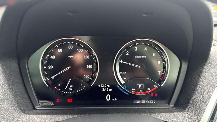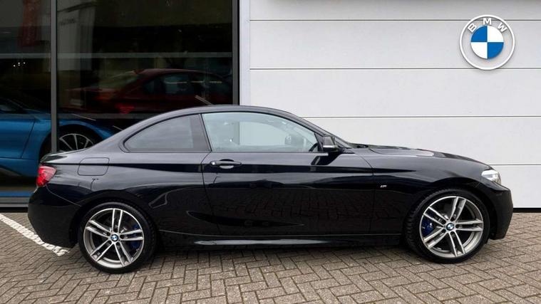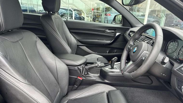 Auto start-stop, BMW Online services, BMW remote services, BMW Teleservices, Door/boot open warning, Front and rear Brake pad wear indicator, Instrument cluster with speedometer with miles per hour read out, tachometer and fuel gauge, Lights on warning by audio warning signal when ignition is switched off, Oil sensor for level and grade, warning by check control system, Oil temperature display via on board computer in instrument cluster, On board computer - average speed+fuel consumption, service interval, clock/date, odometer/trip meter, outside temperature display and ice warning, Optimum shift indicator, Personal Profile - automatic lock when driving away selectable, Real time traffic information, Speed limiter, Variable sport steering, Battery age recognition function, Drive performance control with ECO PRO comfort + sport mode, Engine cover with BMW roundel twin power turbo designation, Oil dipstick, Sports function on gearbox with steering wheel mounted gearshift paddles, DAB Digital radio, 2 speed adjustable intermittent wipers with wash/wipe function, Automatic headlight beam throw control, Automatically dimming rear view mirror, Body colour bumpers, Body colour door handles, Body colour roof mouldings, Cerium grey air blades, Clear lenses direction indicator lights, Darkened rear lights with LED light bars, Daytime driving lights, Direction indicator side lights integrated exterior mirrors, Dual dark chrome exhaust tailpipes, Dynamic brake lights, Electric windows - front and rear, with open/close fingertip control, anti-trap facility and comfort closing, Electrically adjustable and heated M specific exterior mirrors, Follow me home headlights, Front air inlet with high gloss black finish, Green tinted heat protection glazing, Headlight range control, Heated windscreen washer jets, High gloss black mirror caps, High level third brake light, LED rear lights, LED welcome home lights, Lightweight engineering, M aerodynamic body styling, M rear spoiler, Rain sensor with automatic headlight activation, Rear bumper with high gloss black finish, Rear fog lights, Rear window aerial, Reversing light in rear light cluster, Shark fin roof aerial, Visible VIN plate, Welcome lighting, 12V power socket in centre console, 12V power socket in passenger footwell, 3 Spoke M sport nappa leather multifunction steering wheel, Anthracite headlining, Conditioned based service, Dakota leather upholstery, Front and rear side armrests integrated into door trim, Front door sill finishers with M designation, Front door storage bins, Front floor mats in velour, Front head restraints, Front sliding armrest, Glove box handle with chrome surround, Isofix child seat for two outer rear seats, Leather gearknob, Leather handbrake lever, Luggage compartment access via BMW roundel, Manually adjustment steering wheel column, Rear coat hooks, Rear folding head restraints, Storage compartment in rear centre console, Two cupholders with sliding cover and inlay mat, Interior comfort pack - 2 Series/M2, Active differential brake (ADB), electronic differential lock in DSC-OFF mode, Airbag - Front driver and passenger, front and rear head, front side, curtain head protection, manual deactivation of front passenger airbag possible, Anti lock braking system (ABS) with brake assist, Automatic Stability Control (ASC), BMW emergency call, Brake drying, Brake energy regeneration, Braking readiness, Cornering brake control (CBC), Crash sensor activating central locking release with hazard warning lights and interior lighting + battery safety cut-off, Dynamic brake control, Dynamic stability control + (DSC+), Dynamic Traction Control - DTC, Front pyrotechnic belt tensioners and belt force limiter, rear coaded belt buckles, Hill start assist, M Sport braking system, Seat belt security check for driver and front passenger, Side impact protection, Twin horns, Tyre pressure monitoring with 3 level warning strategy, Warning triangle and first aid kit, Central locking switch for all doors, fuel filler cap and luggage compartment, Check control system for monitoring of lights and door/luggage compartment open warning, Drive away door locking, Locking wheel bolts, Remote control including integrated key with blue insert, Start/stop button with Comfort Go keyless engine start and auto Start/stop deactivation button, Thatcham category 1 alarm system with remote control and engine immobiliser, Reduced rolling resistance tyres,
