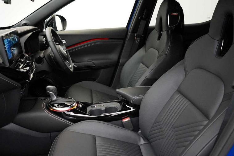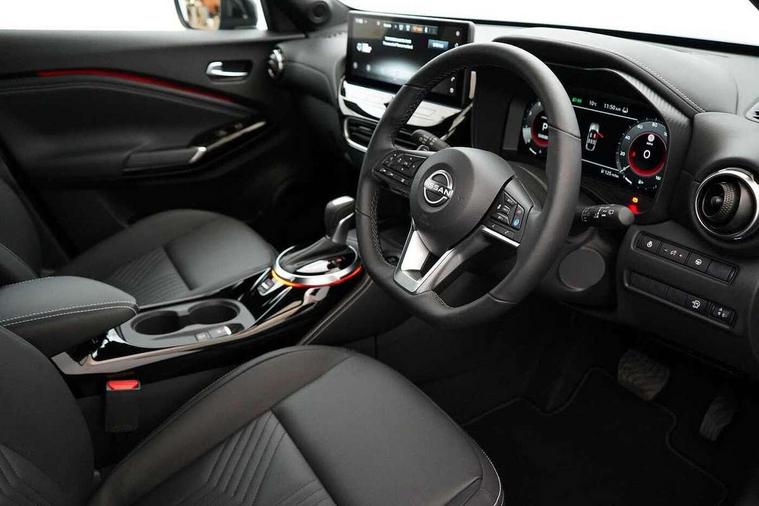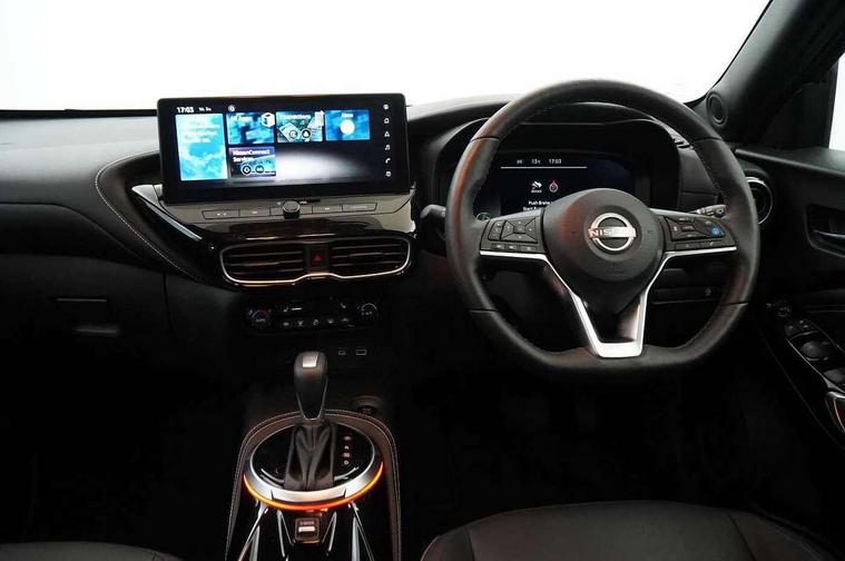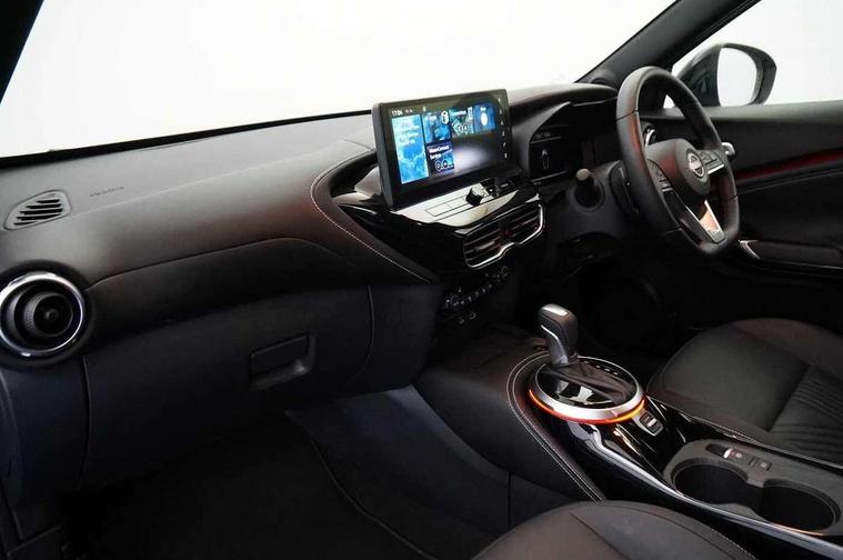 12.3" full colour TFT screen combimeter, Drive modes select (Eco, normal and sport), Emergency and breakdown call, Front parking sensor, Idle start/stop system, Intelligent driver alert system, Intelligent lane intervention, Lane departure warning system, Nissan connect 12.3" touch screen entertainment system, Nissan connect nav with TomTom traffic, Nissan connect services, Outside temperature sensor, Power Steering, Rear parking sensor, Stop/start button, Traffic sign recognition, Trip computer, Voice recognition, WiFi connectivity, Wireless Apple CarPlay and Google Android auto, Wireless Smartphone charger, 10 Bose speakers 8 speakers and 2 headrest speakers for driver/passenger seats, 2 X Rear console USB port, Bluetooth system, USB, Aux-in and 12V socket, Bose personal plus audio system, DAB Digital radio, Auto dimming frameless rear view mirror, Automatic hazard signal with emergency stop signal, Body colour door handles, Electrically adjustable door mirrors with integrated indicators, Follow me home headlights, Front and rear electric window with one touch driver window, High beam assist, LED 3rd brake light, LED daytime running lights, LED headlamps, LED rear fog lamp, LED rear lamps, One touch passenger window, Rear privacy glass, Rear side wing doors, Rear wiper, Roof spoiler, Shark fin roof antenna in solid Black, Solid black door mirrors, Three blink turn signal, 3 height adjustable rear headrests, 3 seat bench in 2nd row, 60/40 split folding rear seat, Card holder on driver sunvisor, Door ambient lighting, Driver seat back pocket, Driver side rear coat hanger, Driver/passenger sunvisors and vanity mirrors, Front and rear cabin lights, Front armrest, Front door pockets with bottle holders, Front head restraints, Front/rear passenger grab handles, Gear console ambient circle lighting, Height adjustable driver's seat, Internal chrome door handles, Luggage board, Luggage space lighting, Monoform sporty seats, Multifunction steering wheel, Passenger seat back pocket, PVC fabric upholstery, Rear door bottle holders, Single front passenger seat, Smooth synthetic leather steering wheel, Steering wheel mounted gearshift paddles, Synthetic leather kneepad, Synthetic leather shift knob, Telescopic steering wheel adjustment, Two cupholders in front centre console, Two rear isofix child seat anchorage points with top tether, Welcome light and console tray ambient lighting, Comfort pack - Juke, Heat pack with height adjustable passenger seats - Juke, ProPilot pack - Juke Auto, ABS with EBD and brake assist, Active ride control, Active Trace Control, Driver and passenger airbags, Driver and passenger side airbags, Electric handbrake with auto hold function, Electronic Stability Programme (ESP), Front and rear curtain airbags, Height adjustable seatbelts, Hill start assist, Intelligent emergency braking with pedestrian and cyclist recognition, Rear door child safety locks, Seatbelt reminder for driver/front passenger and rear seats, Three 3 point rear seatbelts, Traction control, Tyre pressure monitoring system, VDC Dynamic Vehicle Control, Alarm, Immobiliser, Intelligent key and start push button with walk away lock and approach unlock functions, Remote central locking, 19" Alloy wheels, Tyre puncture repair kit,