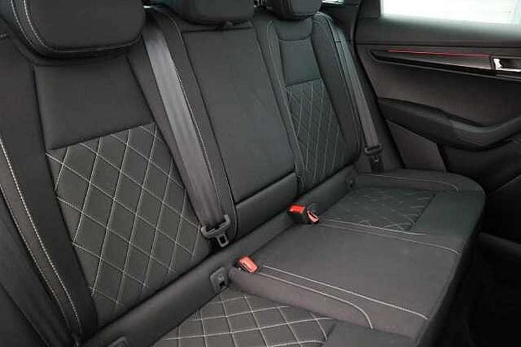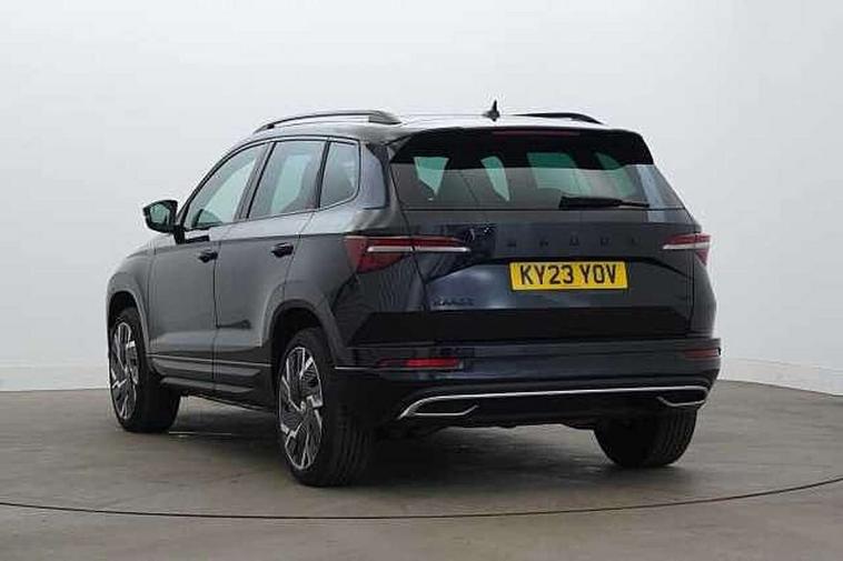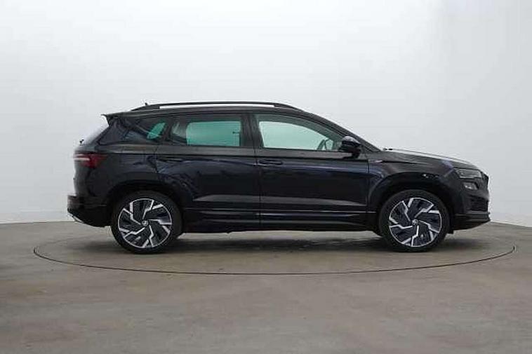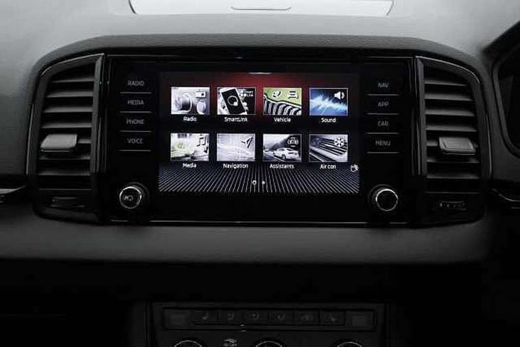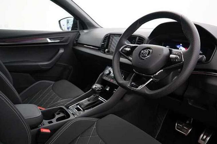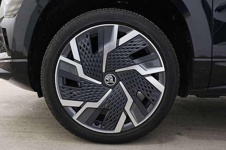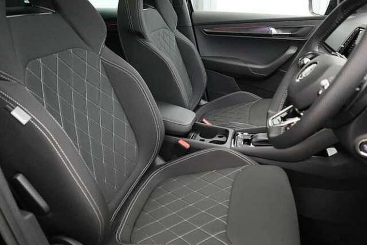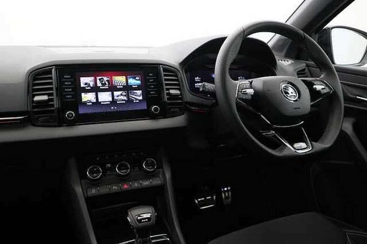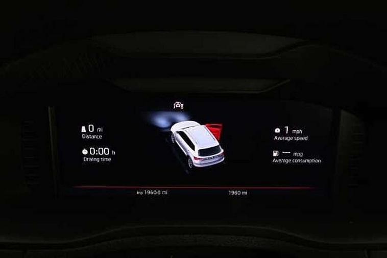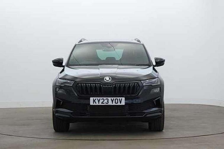 8" Digital display, Care connect, Driver fatigue sensor, Emergency services call system, Outside temperature gauge, Service interval indicator, SmartLink wireless for Apple and wired for Android, Start/stop system with regenerative braking, USB C Port x 2 in front centre console, Virtual cockpit, Virtual pedal with electrically operated boot door, 8 Speakers, DAB radio with Bluetooth, USB connection, Acoustic glass, Aero front windscreen wipers with intermittent function, Auto dimming rear view mirror with light and rain sensors, Black door mirrors, Black electric window control buttons, Black radiator grille, Black roof rails, Body colour door handles, Dynamic headlight range control with cornering light function, Electric front and rear windows with child proof lock, Front door steps with SportLine logo, Heated rear windscreen, LED daytime running lights, LED rear lights with high functionality welcome effect and dynamic indicators, Light assistant (coming/leaving home/tunnel light), Panoramic sliding sunroof, Plastic scuff plates, Privacy glass, Protective door side sills in body colour, Rear diffuser, Rear side wing doors, Rear spoiler, Rear window wiper with washer system and intermittent control, Safety reflectors on front doors, Skoda lettering on tailgate in black, Sportline badge on front fender, Sportline decorative inserts with badging, Sports front and rear bumpers, 1.5 litre bottle holders in driver and front passenger door panels, 12V socket in boot, 12v socket in front centre armrest with storage compartment and rear air vents, 2 Folding hooks and nets in boot, 3 rear height adjustable headrests, 3 seat bench in 2nd row, 3 spoke leather sports multifunction steering wheel and silver stitching with gear shift paddles, 4 foldable roof handles with rear coat hooks, Black floor carpet, Black roof headlining, Chrome inner door handles, Double sided boot floor, Foldable hooks in the boot, Front head restraints, Height adjustable front three point seats belts with tensioners, Height/reach adjust steering wheel, Ice scraper, Illuminated glovebox, Illuminated luggage compartment, Interior noise suppression, Isofix child seat preparation outer rear, Manual lumbar support for front seats, Pen holder, Pollen filter, Rear boot cover, Rear reading lights, Rear seats fixed folding and divided 60:40, Rubbish bin door, Safety vest holder, Single front passenger seat, Storage box in upper central dashboard closed, Sunvisors with illuminated vanity mirrors, Textile floor mats, Ticket holder, Titan black interior ceiling, Welcome animation with sportline logo, Light Pack - Karoq, Parking pack - Karoq, Automatic door unlocking in case of crash, Automatic fuel cut off in case of crash, Child locks on rear doors, Driver airbag, Electronic parking brake with auto hold function, Emergency rear braking signal, ESC including ABS, MSR, ASR, EDS, HBA, DSR, RBS, MKB and traction control, Front side airbags, Hill hold control, Knee airbags, Passenger airbag with switch-off function, Pedestrian monitor, Seatbelt reminder signalisation and pretensioner for all seats, Three point seatbelts rear, Two tone horn, Tyre pressure display, Tyre pressure monitor, Alarm with interior monitoring, back up horn and tilt sensor with safe function, Electronic engine immobiliser, Keyless entry and start/stop, Remote central locking with 2 remote folding keys, Black air vent surround, Black centre console, Satin black dashboard, Satin black door trim, 19" Vega black polished alloy wheels, Anti-theft wheel bolts protection, Matt black aero hub caps, Storage on wheel cover, Tool kit,