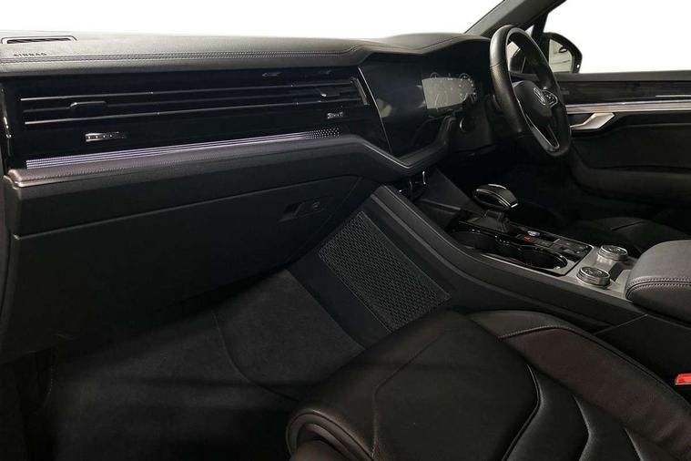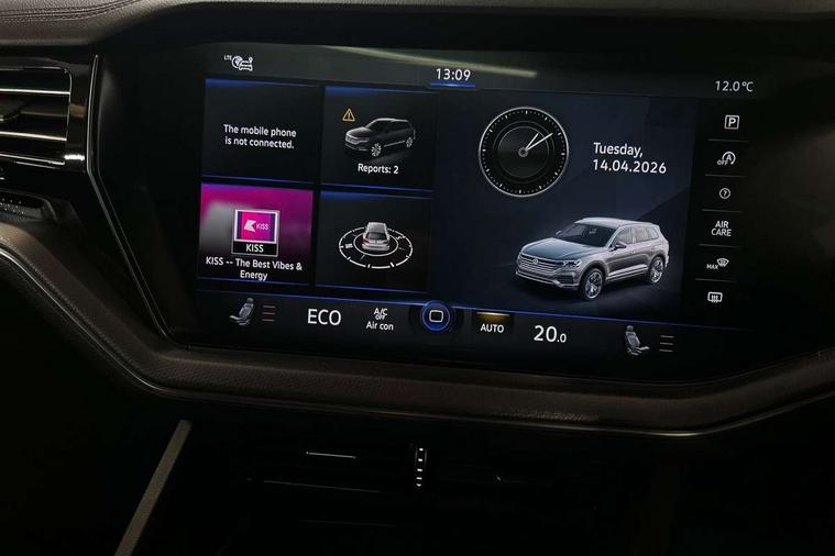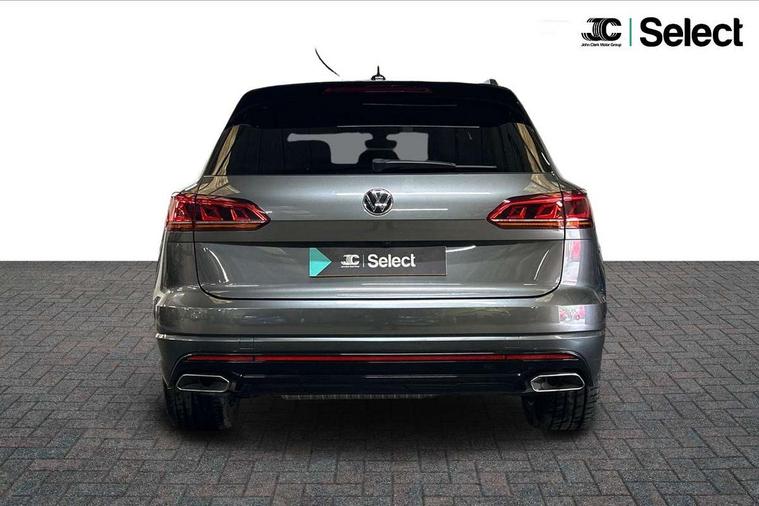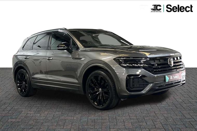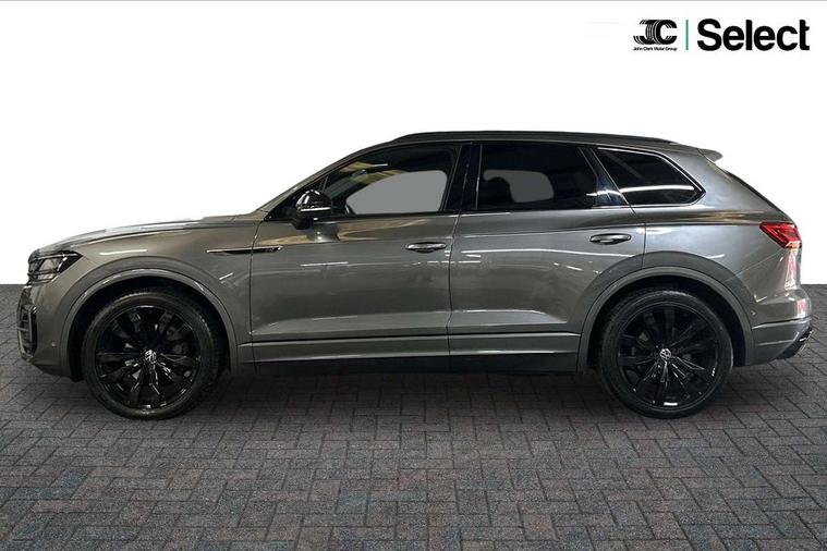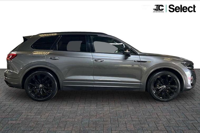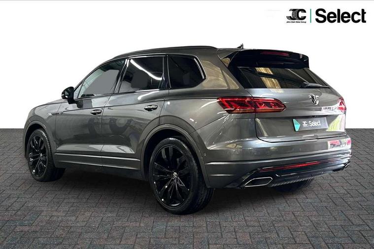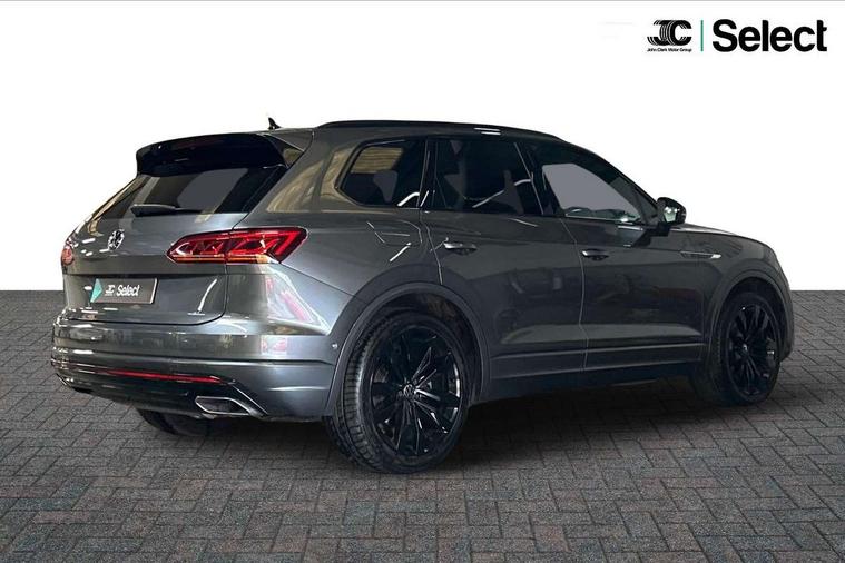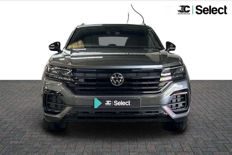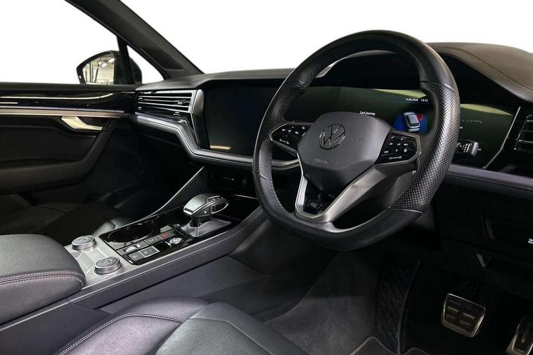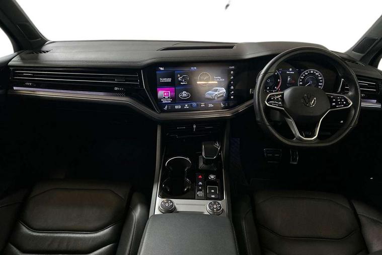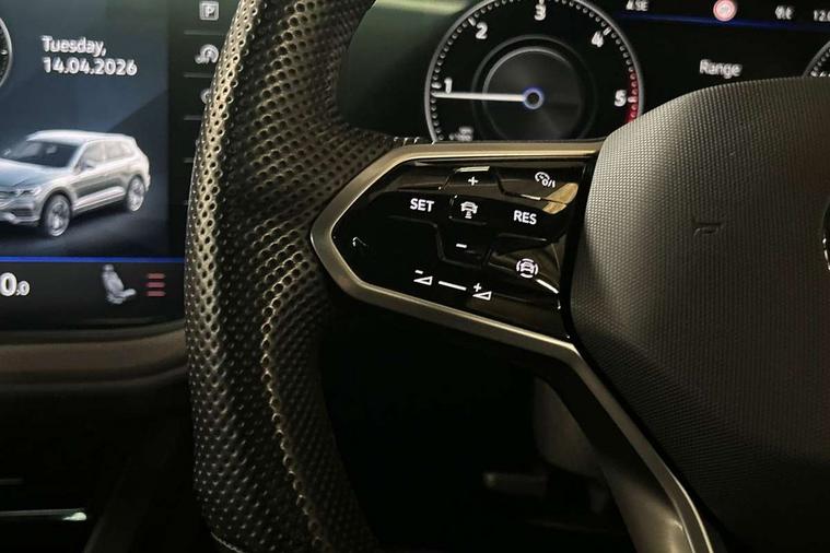 2D/3D map view, ACC - Adaptive cruise control with front assist, forward collision warning, distance monitoring, city emergency brake and speed limiter, Apple car play/Android Auto, Audible and visual fatigue detection system, Bluetooth hands free telephone connection, Car information display, Drive select with Damper control, Driver alert system, Driver profile selection, Dynamic road sign display camera controlled system with visual warning for traffic and road signs, eCall emergency system, Fully electric tailgate + keyless entry and start, Instrument cluster, MirrorLink, Multifunction camera with lane assist, Multifunction computer premium with 7" colour display, One touch indicators with repeat function, Service interval indicator, Speed sensitive power steering, Start/stop system with regenerative braking, Tailgate power latch, Think blue trainer driver tips and journey analysis, Traffic sign recognition, Voice control system, Wireless Smartphone charger, 24 litre AdBlue tank, Torsen limited slip differential, DAB Digital radio, Dynamic navigation based on TMC+, Gesture control for infotainment system, Multi device interface (MDI) with illuminated USB-C connection, Music playback - MP3, WMA and AAC files, SD card slot, Simultaneous pairing of 2 compatible mobile devices, SMS functionality - read, compose and send SMS messages using touch-screen display, Title and cover art display, Volkswagen media control, Adaptive low beam for urban and motorway use, Auto dimming rear view mirror, Automatic coming/leaving home lighting function, Automatic headlights, Black anodised roof rails, Black door mirrors, Black rear diffuser, Black side window surrounds, Black upper and lower grille louvres extending into headlights and radiator grille, Body colour door handles, Body coloured wheel arches, C signature gloss black front air intake, Chromed tailpipe on the left and right integrated in the bumper with trapezoid design, Dusk sensor, Dynamic headlight range control, Electric front tilt/slide panoramic sunroof and fixed rear sunroof, Electrically power adjustable, heated, folding, auto dimming, front passenger exterior door mirror lowering function, Front and rear electric windows, Galvanised body, Gloss black finish B pillar, Gloss black rear diffuser, Headlight washers, Heat insulating darkened glass in side and rear windows, Heated windscreen washer jets, IQ.Light-LED matrix headlight, daytime running light with dynamic cornering light and indicator, LED rear fog light, LED rear number plate lights, Plastic scuff plates in door apertures, Poor weather light, Puddle lights, Rain sensor, Rear side wing doors, Rear wiper, 12V socket in front and rear centre console and boot, 2 Coat hooks on B pillar, 3 rear head restraints, 3 spoke sport heated leather multi-function sports steering wheel with gear shift paddles - generation 2, 4 way adjustable front head restraints, 4 way electric lumbar support for driver and front passenger, 4 zone climate control, 40:20:40 split folding slide/recline rear seat, B pillar vents, Black lower edge of door extending sills, Branded points of interest, Double sun visor for drivier and passenger with LED illuminated vanity mirrors, Electric luggage compartment cover, Folding rear centre armrest with 2 cupholders, Front + rear carpet mats, Front centre armrest with storage box, Gear shift indicator, Height/reach adjust steering wheel, Illuminated air conditioned glovebox, Isofix preparation for 2 rear child seats, Jack and tool kit, Leather trimmed gear knob with gloss black inlay/aluminum trim, Leatherette door trim, LED luggage compartment lighting, Load through provision, Luggage compartment with load lashing rings, Plastic loading edge protection, Rear seat remote release levers, Soul black headlining, Stainless steel pedals, Innovision cockpit pack - Touareg, 3 point front seatbelts with pre-tensioners, ABS, Active bonnet, Automatic post collision braking system, Curtain airbags, Driver/Front Passenger airbags, EBD + Brake Assist, EDL, Electronic parking brake with auto hold, ESC with ASR, Front seat side impact airbags, Hill descent control, Hill start assist, Passenger airbag deactivate switch, Seatbelt warning lamp and buzzer, Three 3 point rear seatbelts, Two tone horn, Volkswagen roadside assistance, Warning triangle and first aid kit, Alarm with interior monitoring in cab, backup horn and towing protection, Child security locks for front and rear doors, Electronic engine immobiliser, Remote central locking, Black decorative trims on the side windows, High gloss black centre console,