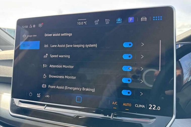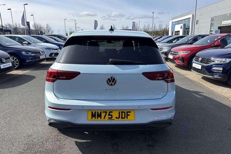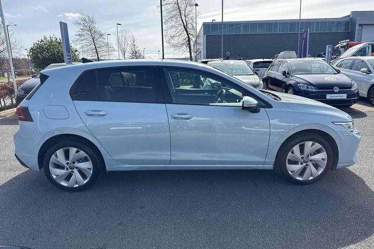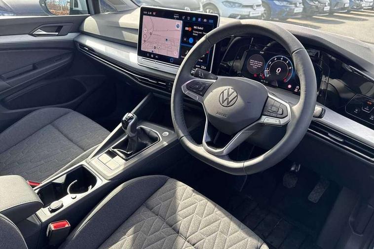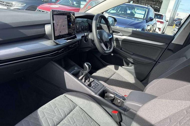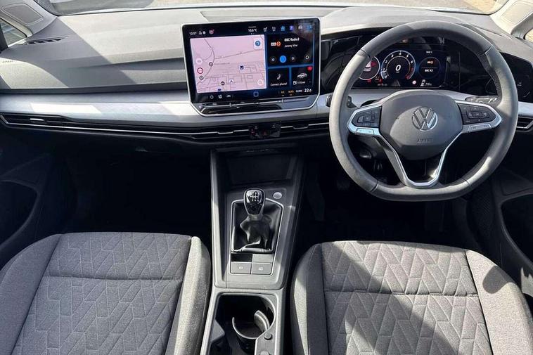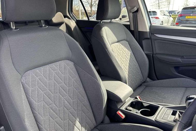 Activated carbon canister, Adaptive cruise control (ACC), Advanced driver attention and drowsiness monitor, Dynamic road sign display, E-Sim card for online connectivity, eCall emergency call system, Multi-color Digital cockpit pro, selection of different info profile possible, Multifunction front facing camera for distance control, Navigation system, Oncoming vehicle braking when turning including swerve support, Speed limiter, Speedo, rev counter, electronic odometer, trip, service interval display, exterior temperature and fuel gauge, Voice enhancer and voice control, Warning signal and warning light for front and rear seatbelts not fastened, We connect plus preparation, We connect preparation, Wireless app connect, Petrol Particulate Filter, Start-stop system with battery regeneration (recuperation - energy recovery during braking), XDS electronic differential lock for improved traction and handling, 2 USB C ports in front, 2 USB charging sockets on the centre console in the rear charging capacity upto 45W, Digital radio reception (DAB), Diversity antenna for FM reception, Gaming platform via car app, Infotainment system with 12.9" display, Mobile phone interface with inductive charging feature, 3rd brake light, Automatic headlamp activation with Coming home and Leaving home feature, Body colour door handles, Body colour door mirrors, Exterior mirrors convex on the left and aspherical on the right, Front and rear electric windows, Heat insulating windshield made of laminated glass, LED separate daytime running light, Rear exhaust tailpipe, Rear fog light on one side and reversing lights on both sides, Rear side wing doors, Rear tinted glass 65% light absorbing from B pillar backwards, Rear windscreen washer and wiper with interval delay, Remote electrically foldable door mirrors, puddle lights and reverse activated passenger's door mirror, Standard bumpers, Welcome light with surround lighting, 12V socket in front centre console, 12V socket in luggage compartment, 3 rear head restraints, 3 seat bench in 2nd row, Chrome plated radiator grille inserts, air vent surrounds and light switch surrounds, Front centre armrest, Front head restraints, ISOFIX anchors for child seats on outer rear bench seats and on front passanger seat compatible for i-Size, Leather gearshift handle, Luggage compartment lighting, Manual height adjustable front passenger seat, Rear cupholder and loadthough, Single front passenger seat, Soul black instrument panel, Split folding backrest with centre armrest and unsplit rear seat bench, Standard pedal cluster, Storm grey roof lining, Sun visors with illuminated vanity mirrors, Parking and comfort pack - Golf Estate/Hatchback, 3 point height adj front seatbelts + pretensioners, 3 rear three point seatbelts, ABS, Autonomous emergency braking front assist with pedestrian and cyclist monitoring, Child locks on rear doors, Driver and front passenger airbag with front passenger airbag deactivation, Electronic parking brake with auto hold, ESC (Electronic Stability Control), Extended pedestrian protection measures, Rear disc brakes, Two tone horn, Tyre pressure loss indicator, Volkswagen roadside assistance, Anti theft wheel bolts, Preparation for alcohol interlock, Nature cross brushed decorative inserts for dashboard and front door panels,