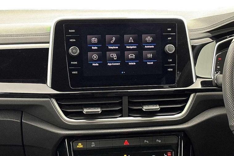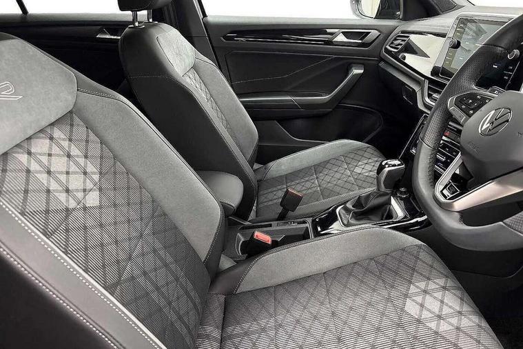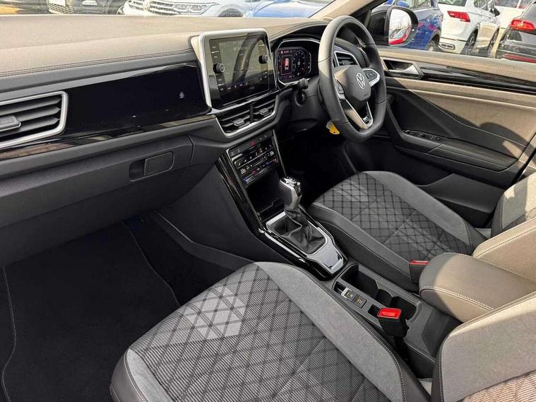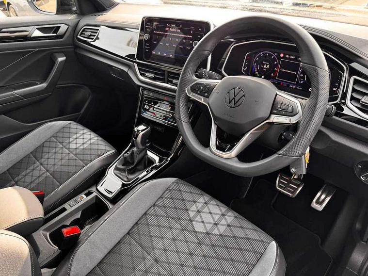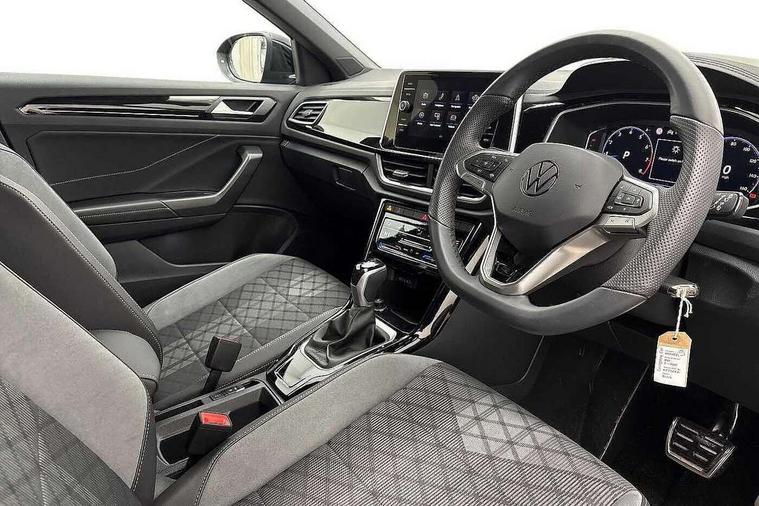 10.25" Digital cockpit pro, Advanced driver attention and drowsiness monitor, Emergency call service, Lane keeping system Lane Assist, Mobile phone interface, Modified key software - reduce switch off time for key status change to Long no motion, Online services, Park assist including front and rear parking sensors, Service interval indicator, Tailgate/trunk lid release from outside, Think blue trainer driver tips and journey analysis, Warning sound and light for front seatbelts unfastened, Wireless app connect, Battery regeneration during braking, Start/stop function with battery regeneration, DAB Digital radio, Diversity antenna for FM reception, Front and rear 6 speakers, Music playback - MP3, WMA and AAC files, Premium USB cable in choice of either Apple or Android smartphone compatibility, SD card slot, Simultaneous pairing of 2 compatible mobile devices, Title and cover art display, We Connect and We Connect Plus functionality, Auto dimming interior rear view mirror, Automatic hazard lights activation under emergency braking, Automatic headlight control with LED separate daytime running lights with coming/leaving home function, Body coloured exterior mirror housings and door handles, Electrically adjustable and heated door mirrors, Extended roof spoiler, Exterior mirrors aspherical on driver side, convex on front passenger side, External USB type C socket and charging sockets, Front windscreen wiper with intermittent wipe and 4 position delay, Heated rear window, LED 3rd brake light, LED rear combination lamps, LED rear number plate lights, Power windows with comfort operation and circuit breaker, Privacy glass for rear side windows and rear window, R-Line design body coloured bumpers, Rain sensor, Rear exhaust tailpipe, Rear fog light on one side and reversing lights on both sides, Rear side wing doors, Rear wash/wipe with intermittent wipe setting, Remote electrically foldable door mirrors, puddle lights and reverse activated passenger's door mirror, 12V power socket in centre console, 3 rear head restraints, 3 seat bench in 2nd row, 4 load lashing points in luggage compartment, Air care climatronic air conditoning system with active combination filter and 2-zone temperature control, Black roof lining, Chrome plated decorative trims, Chrome plated radiator grille inserts, air vent surrounds and light switch surrounds, Door and side trim panel with leatherette insert, Front + rear carpet mats, Front centre armrest, Front cupholders x 2, Front footwell illumination, Front reading light, Front scuff plates with R Line logo, Front seat back storage pockets, Glove compartment door with light, Instrument lighting, white adjustable panel illumination, Interior ambient lighting and surround lighting, Interior light delay, Isofix child seat preparation, Leather gearshift handle, Load-through provision with cup holder when folded down ('Unsplit rear seat bench, split folding backrest, with centre armrest), Luggage compartment lighting, Single front passenger seat, Stainless steel pedals, Storage compartment in left and right luggage area, Storage compartment in rear doors, Storage compartments in driver and front passenger doors, Sunvisors with illuminated vanity mirrors, Variable boot floor, height adjustable and removable, Driver assistance pack without proactive passenger protection - T-Roc, 3 point height adj front seatbelts + pretensioners, 3 point seatbelts in outer rear with ECE label, ABS, Child locks on rear doors, City emergency braking and pedestrian monitoring, Driver and front passenger airbag with front passenger airbag deactivation, Driver and front passenger safety-optimised head restraints, Drivers seatbelt reminder, Electronic parking brake, Electronic Stability Control (ESC) inc EDL (Electronic Differential Lock) and ASR (Traction Control), Front and rear passengers curtain airbag system including front side airbags, Hill start assist, Predictive pedestrian protection, Rear disc brakes, Two tone horn, Tyre pressure loss indicator, Volkswagen roadside assistance, Piano black decorative inserts in dashboard and front door trim panels, Trims for alloy wheels,