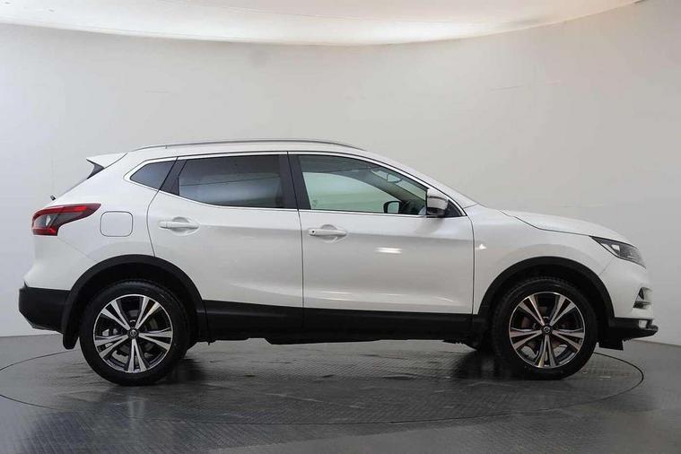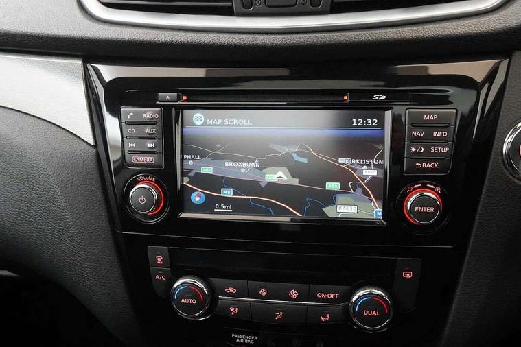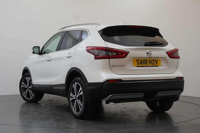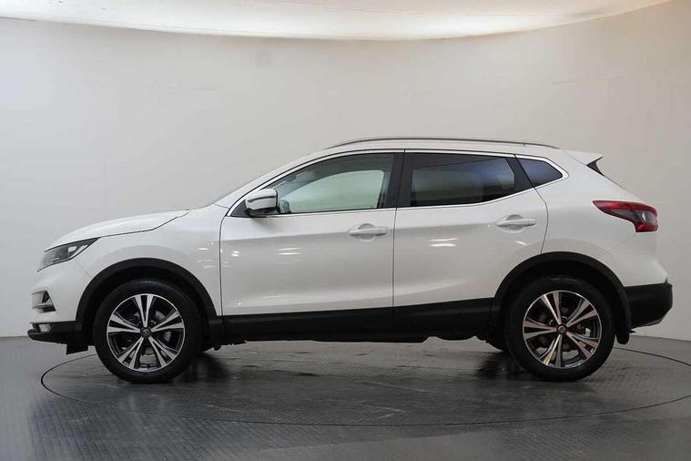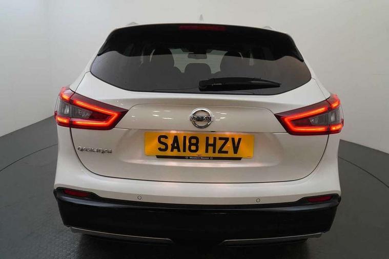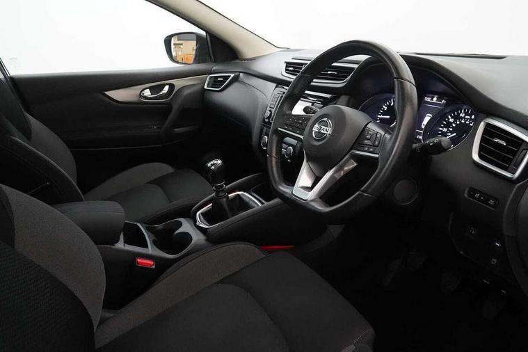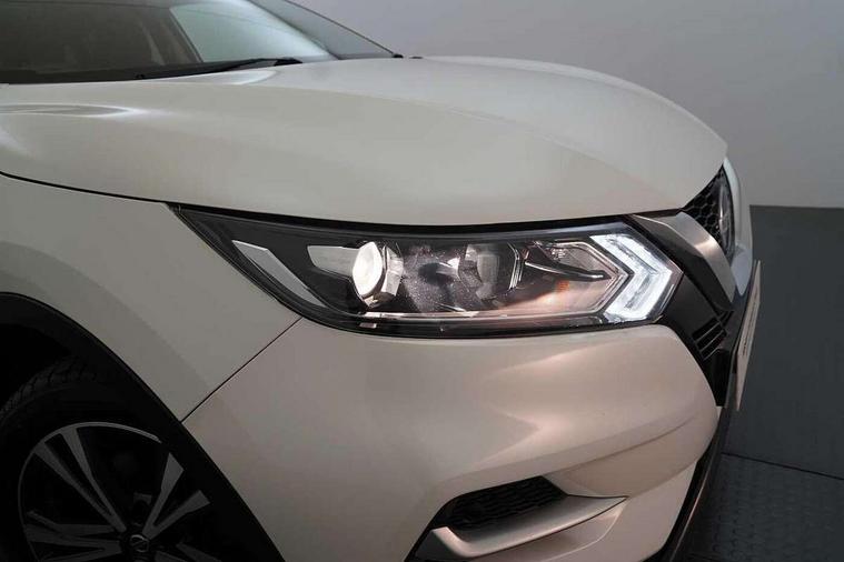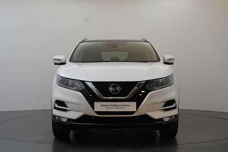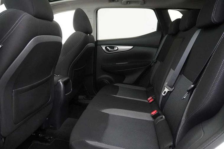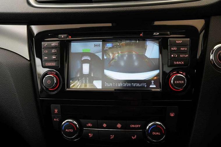 5" TFT driver information centre, Around View Monitor, Bluetooth phone integration system, Cruise control, Electric speed sensitive power steering, Front and rear parking sensors, Lane departure warning system, Nissan connect sat nav system, Outside temperature display, Push button starter, Rear view camera, Service interval indicator, Speed limiter, Traffic sign recognition, Trip computer, 'Shark fin' mobile antenna, 6 speakers, DAB Digital radio, Radio/CD, Smartphone apps, Steering wheel mounted audio controls, USB/aux input socket, Automatic headlamp activation, Body colour bumpers, Body colour door handles, Body colour door mirrors, Chrome window surround, Electric folding and heated door mirrors, Front fog lights, High beam assist, Interior mirror with auto anti dazzle, LED indicators in door mirrors, Matt silver roof rails, One touch electric front/rear windows, Privacy glass, Rain sensor windscreen wipers, Rear roof spoiler, Rear wiper, 2 X front 12v power sockets, 60/40 split folding rear seat, Ambient interior lighting, Centre console with armrest, Chrome interior door handles, Cloth upholstery, Configurable luggage board system, Driver + front passenger lumbar support, Dual zone climate control, Front and rear door pockets with bottle holders, Front headrests, Front seat belt pre-tensioners with load limiters, Height adjustable driver's seat, Height adjustable passenger seat, Illuminated electric window switch, Isofix child seat preparation, Leather gearknob, Leather interior door handles, Leather knee rest, Leather steering wheel, Luggage compartment lighting, Parcel shelf, Pollen filter, Rake/reach adjustable steering wheel, Rear armrest with 2 cupholders, Rear headrests, ABS, brake assist and EBD, Child locks on rear doors, Curtain airbags, Driver/front passenger airbag, Electronic parking brake, ESP + traction control, Forward emergency braking, Front passenger airbag deactivation, Height adjustable front seatbelts, Hill start assist, Seatbelt warning, Side airbags, Three 3 point rear seatbelts, Tyre pressure monitoring system, Alarm, Immobiliser, Intelligent Key, Remote central locking, Piano black interior trim, 18" Bi-colour alloy wheels, Tyre puncture repair kit,