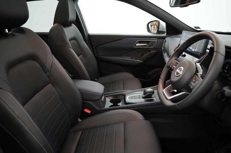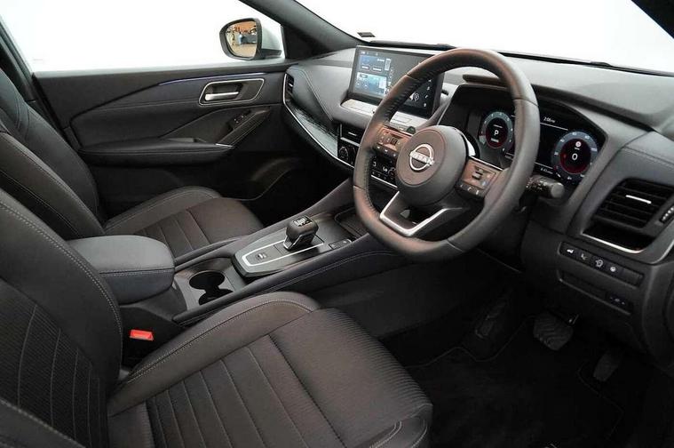 Advanced windscreen head up display, Android auto/Apple CarPlay (Wired), Blind spot warning, Drive modes (sport, normal, eco), Electric speed sensitive power steering, Emergency and breakdown call, Front and rear parking sensors, Full Digital 12.3" TFT Digital Combimeter, Google maps services - search, weather, 3D maps and Google street view, Hands free power tailgate, Idle stop/start system, Intelligent around view monitor, Intelligent Cruise control (ICC), Intelligent driver alert system, Intelligent forward collision warning, Intelligent lane intervention, Lane departure prevention, Lane departure warning system, Lane keep assist, Moving object detection, Nissan connect 12.3 inch touchscreen infotainment system, Nissan connect navigation, ProPilot, Push button starter, Rear cross traffic alert, Rear view camera, Remote control services - door locks, lights, horn and car locator, Telematics - notifications and connectivity services, TomTom live traffic services, Traffic jam pilot, Traffic sign recognition with legal speed adjustment, Trip computer, Virtual personal assistant and firmware over the air capability, Wireless apple carplay, Wireless charging pad, 6 speakers, AM/FM audio system with DAB, Bluetooth audio streaming, Front USB connections (Type-A and Type-C), Rear USB charging only ports (Type-A and Type-C), Auto dimming rear view mirror, Auto rear wiper when reversing, Automatic hazard signal with emergency stop signal, Body colour mirror caps, Body coloured door handles, Bodyside mouldings, Chrome side window finisher, Door handle with button, Electric auto folding door mirrors, Electrically adjustable and heated door mirrors with LED turn indicator, Follow me home headlights, Front and rear LED turning signals, Headlights auto levelling system, Intelligent auto headlights, LED daytime running lights, LED headlights with adaptive driving beam, LED rear lights, One touch front and rear electric windows with remote opening and closing, Partially body coloured bumpers, Privacy glass, Rear bumper with graphite insert, Rear reversing light (bulb lighting), Rear roof spoiler, Rear side wing doors, Rear styling plate, Shark fin antenna, Splash free rain sensing wipers, Super UV and infrared cut glass, Thermaclear heated windscreen, Three blink turn signal, 12v power socket in dashboard and luggage, 2x Rear coat hooks, 3 bench rear seats in 2nd row, 3 rear headrests, 4 folding assist grip, 6 Luggage hooks - 4 on floor, 2 on side, 60/40 split folding rear seat bench, Ambient lighting around centre console, Ambient lighting in front doors, Centre console storage tray, Chrome interior door handles, Cloth/syntech leather monoform upholstery, Dark black/blueish PVC wrapping, Dark headlining, Driver and front passenger sunvisors with illuminated vanity mirrors, Driver seat back pocket, Dual zone automatic climate control with pollen filter, Electrically adjustable driver seat, Electrically adjustable lumbar support for driver, Front and rear door storage, Front centre console and armrest, Front cupholders x 2, Front door with bottle holders, Glovebox with light, Hard trunk cover, Heated front seats, Heated steering wheel, Height adjustable driver's seat, Height adjustable front headrests, Height adjustable passenger seat, Leather steering wheel, Luggage board system, Luggage space lighting, Manual lumbar support on passenger seat, Manually adjustable passenger (slide recline + lifter), Multifunction steering wheel, Passenger seat back pocket, Rear armrest with 2 cupholders, Rear door bottle holders, Single front passenger seat, Soft PVC kneepad, Steering wheel gearshift paddles, Steering wheel switches, Tilt/telescopic adjustable steering wheel, Two rear isofix child seat anchorage points with top tether, Welcome light and doors with console tray ambient lighting, Glass roof pack with roof rails - Qashqai, 3x3 point rear seatbelt pretensioners + load limiters, ABS with EBD and brake assist, Active brake limited slip, Auto hold function, Child locks on rear doors, Curtain and front side, far side airbags, Driver and passenger airbags, Driver, passenger and 2nd row rear seat belt reminder, Electronic parking brake, Front seatbelt pretensioners + load limiters, Height adjustable front seatbelts, Hill start assist, Intelligent blind spot intervention, Intelligent front emergency braking with pedestrian, cyclist recognition and junction assist, Intelligent rear automatic braking, Tyre pressure monitoring system, Vehicle dynamic control, Capless fuel filler, Engine immobiliser, Intelligent Key, Remote central door locking with deadlocking, Thatcham Cat.1 alarm, Interior instrumental panel C finisher, 19" Alloy wheels, Tyre puncture repair kit,